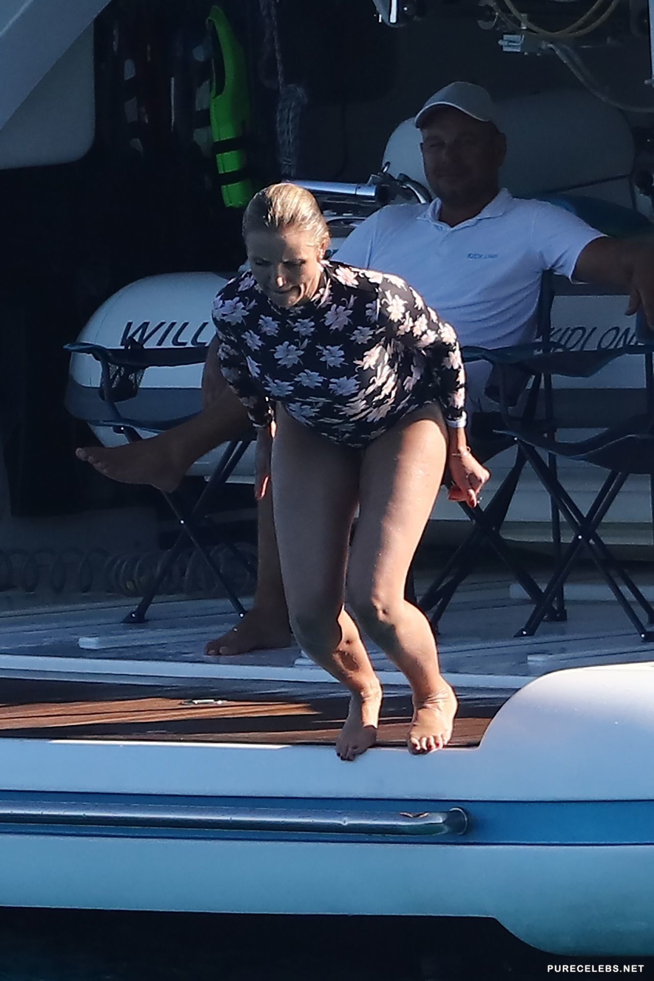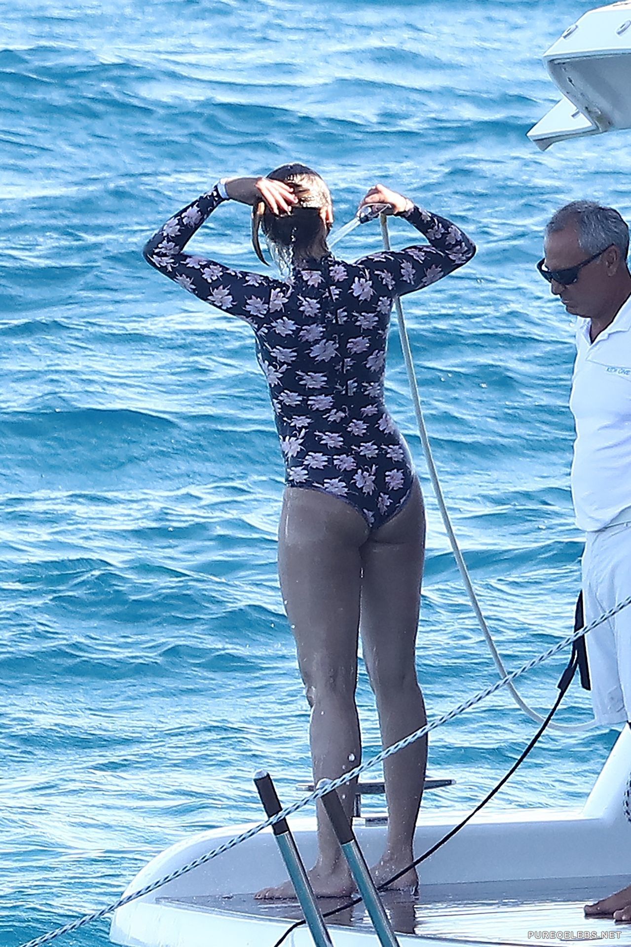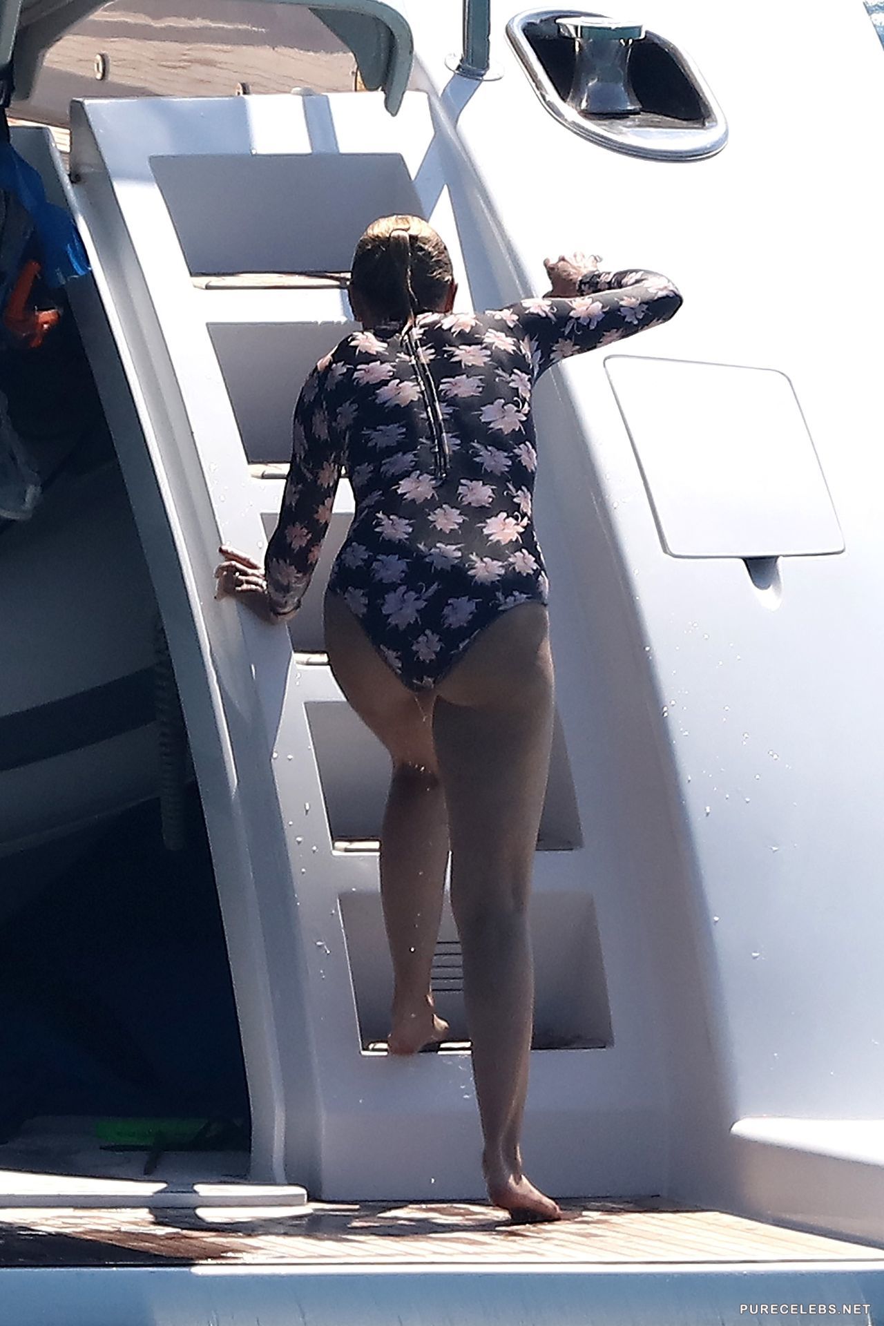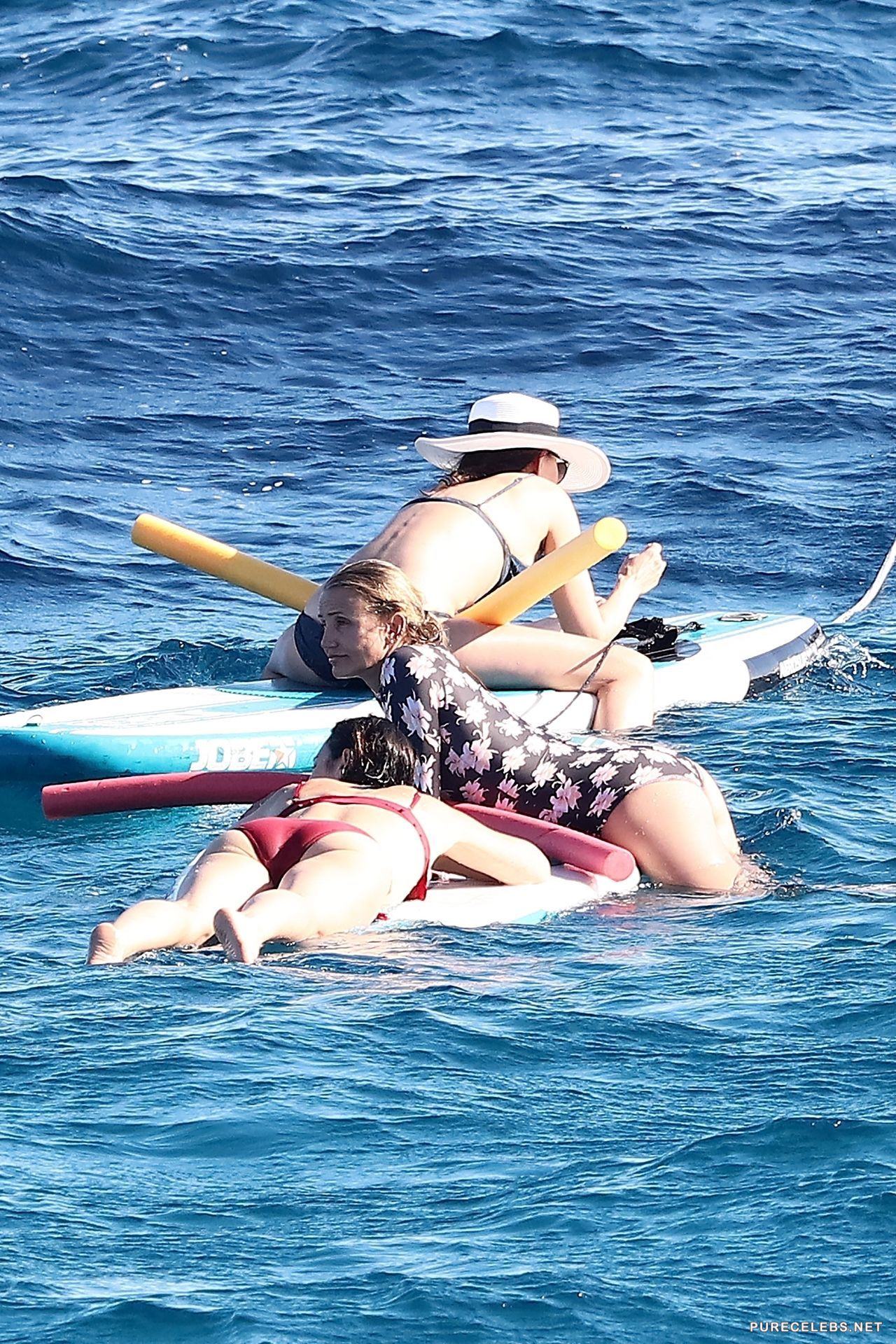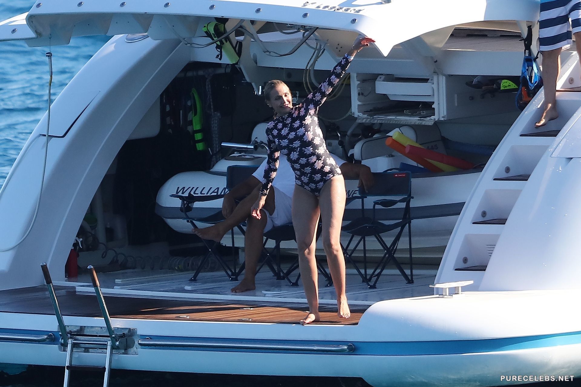 American actress Cameron Diaz, like many celebrities, prefers outdoor activities. For example, this star loves to sail. Recently, the paparazzi caught her when she swam on the board in the sea, flaunting her charming buttocks. The hot blonde was dressed in a black floral swimsuit, and her booty looked very sexy in it, especially when she came out of the water and drops flowed down her chic body.