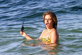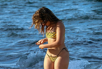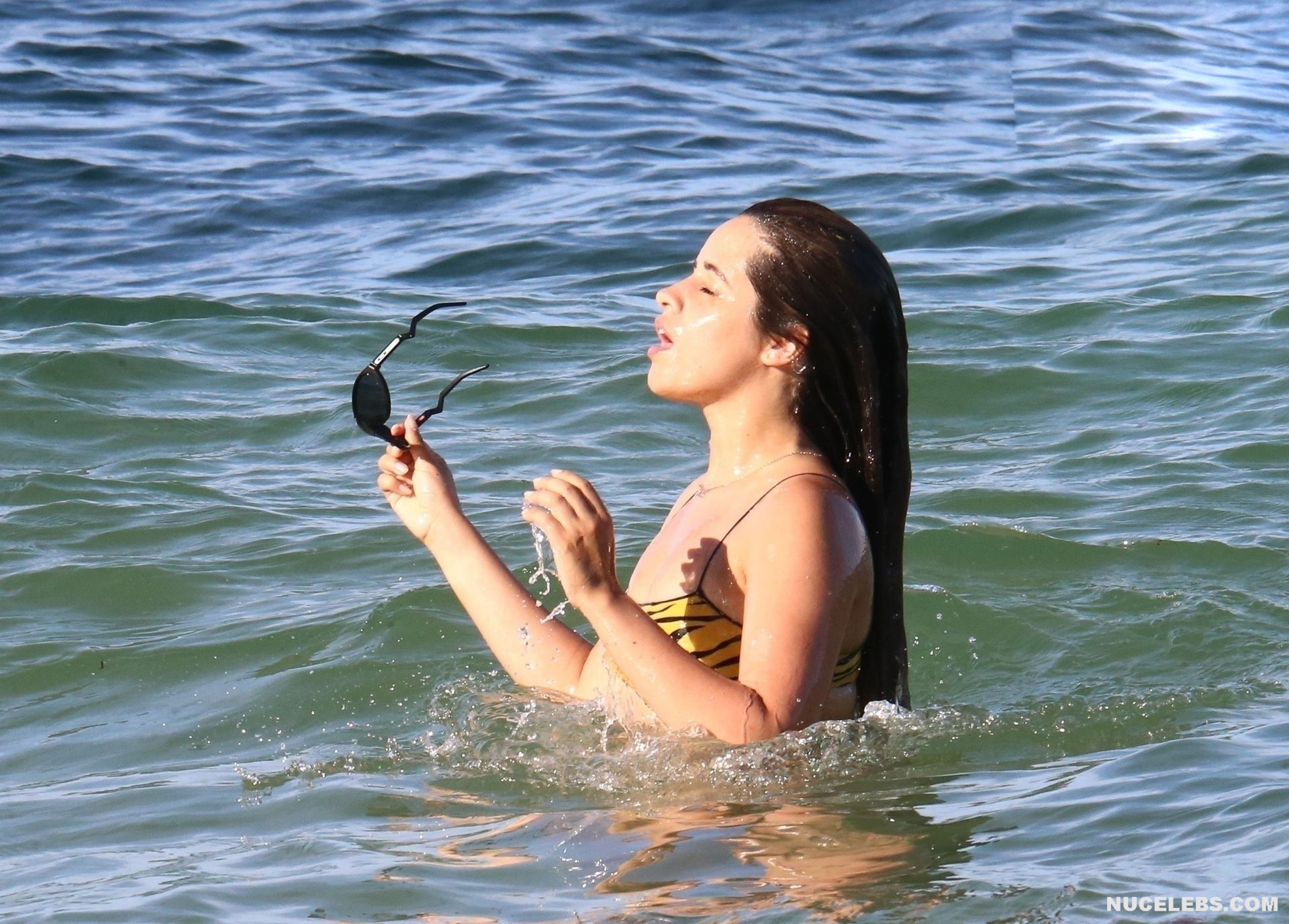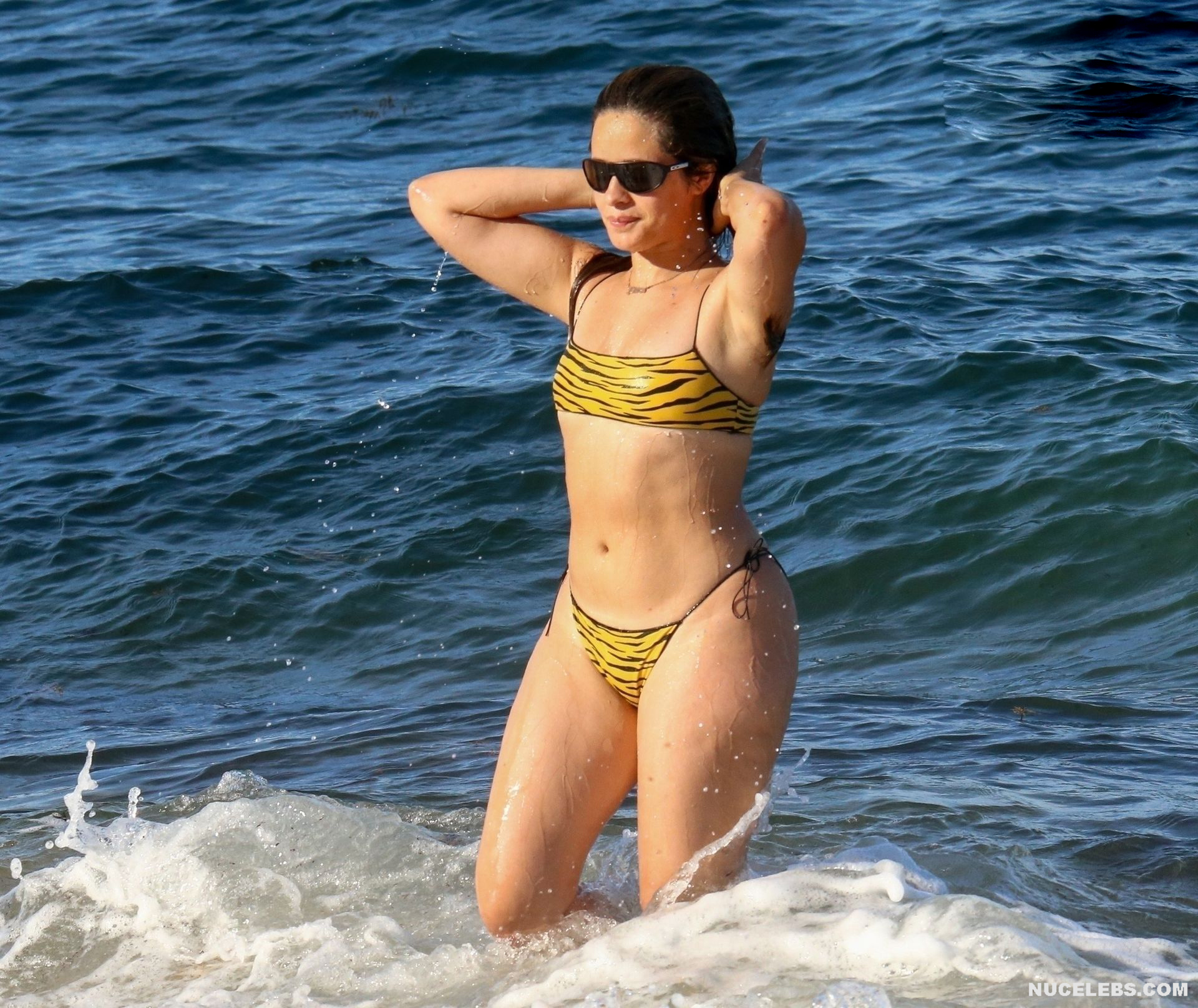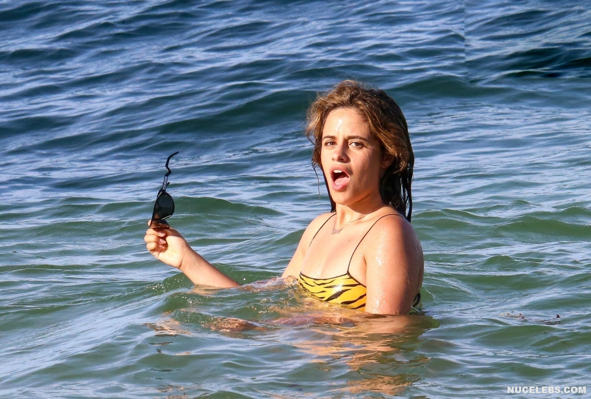 Camila Cabello will tease you with her almost nude booty in a tiny bikini. So, the paparazzi photographed this hot singer in an orange bikini. First, bottom of Camila Cabello’s nude tit slipped out of her bra. And a little later, when this celeb was adjusting the thong on her lush butt, she accidentally exposed her! Well, Camila Cabello’s nude bum is admirable, isn’t it?
