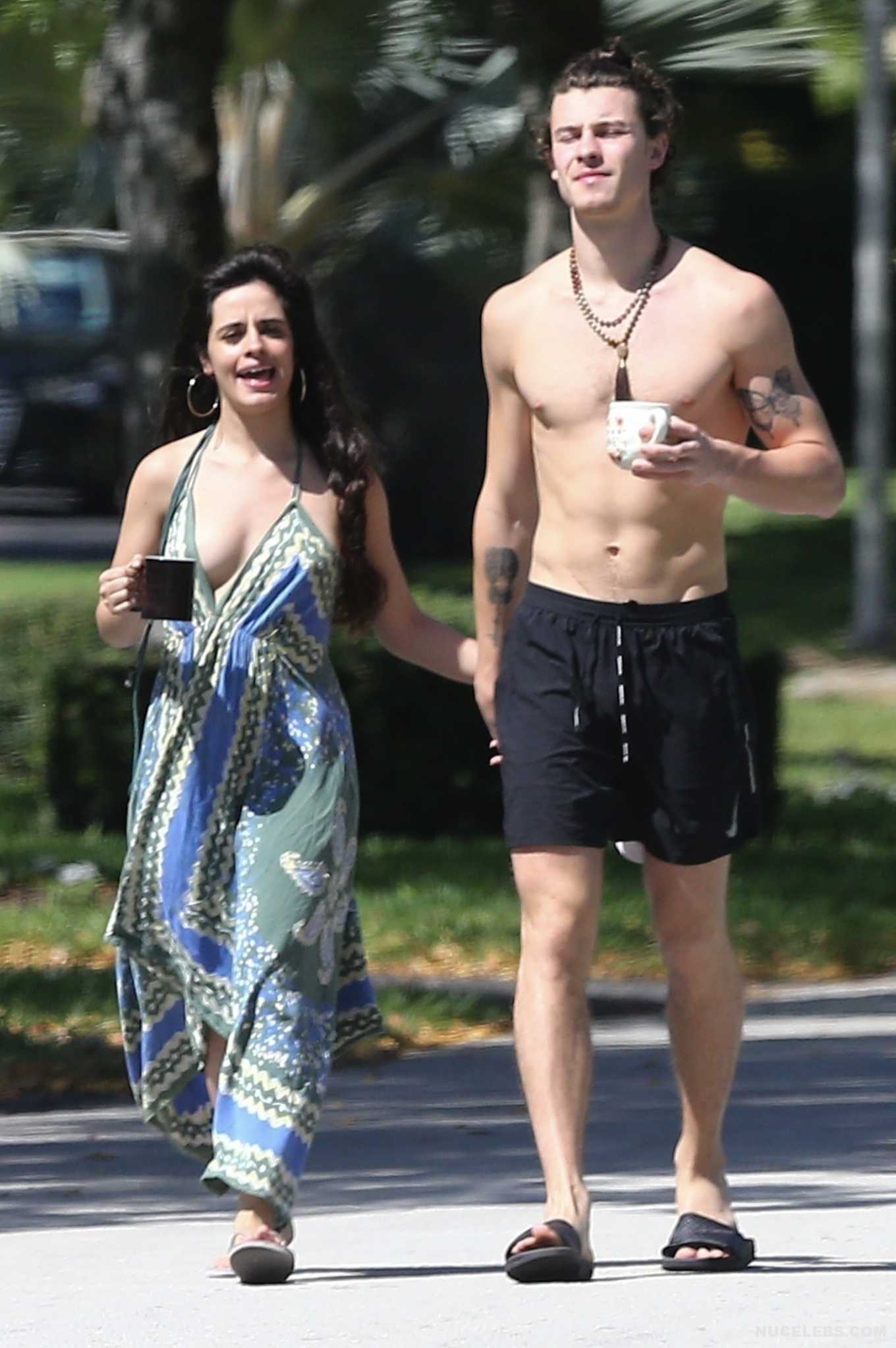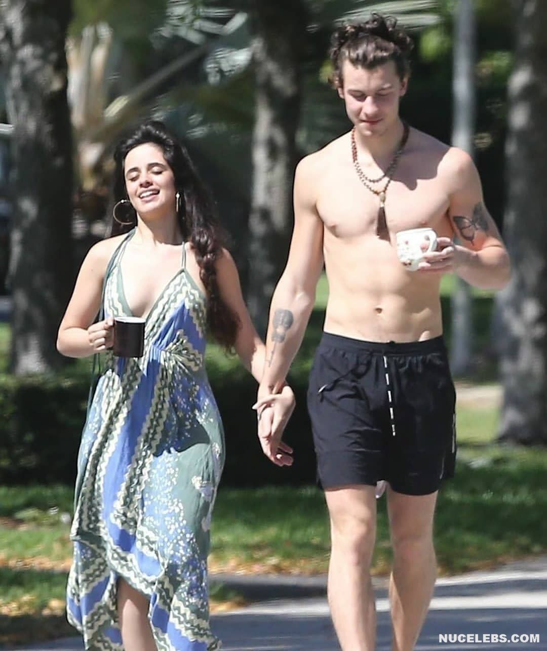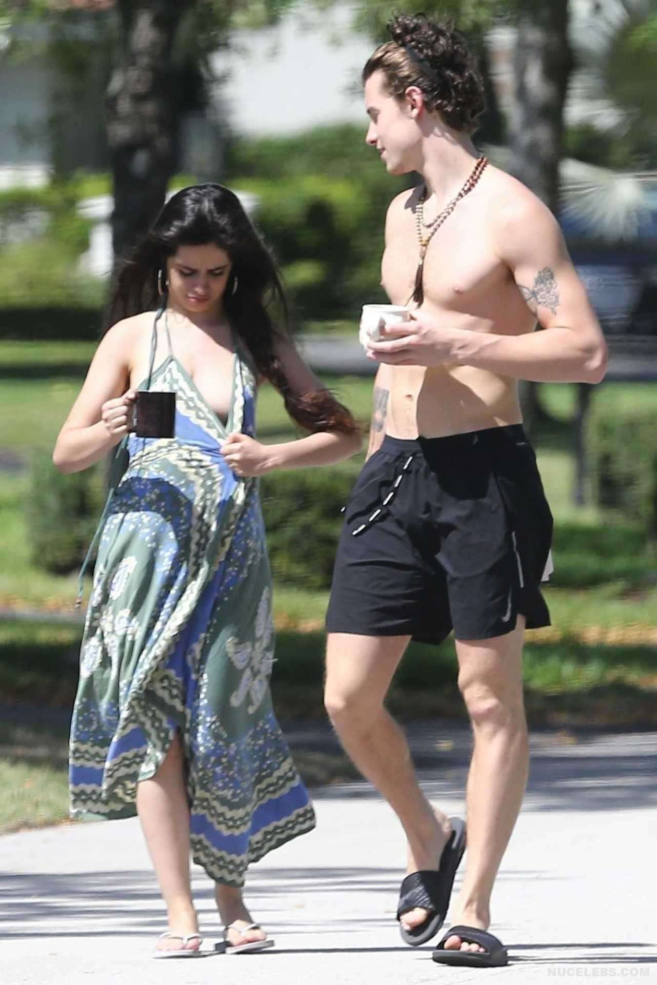 The paparazzi continue to spy on Camila Cabello. They recently caught her walking with her boyfriend Shawn Mendes. The celebrity was dressed in a long sundress with a low cut. And Camila Cabello showed her nude titties in one moment! Looks like Camila Cabello’s nude boobs were too tight in her outfit to jump out of it!