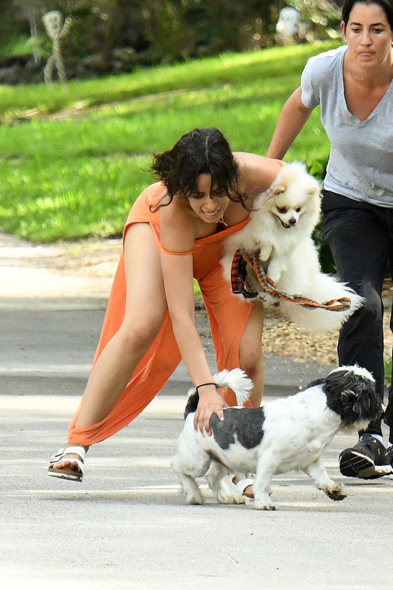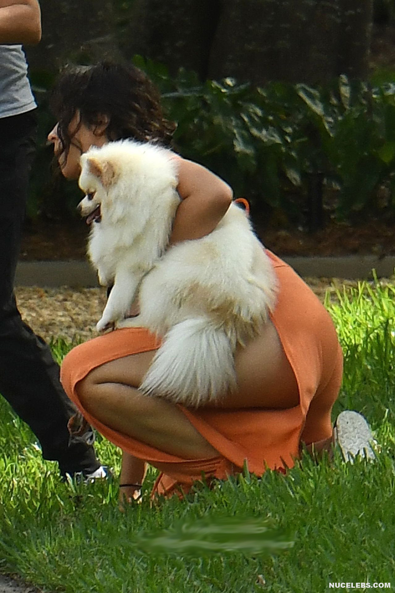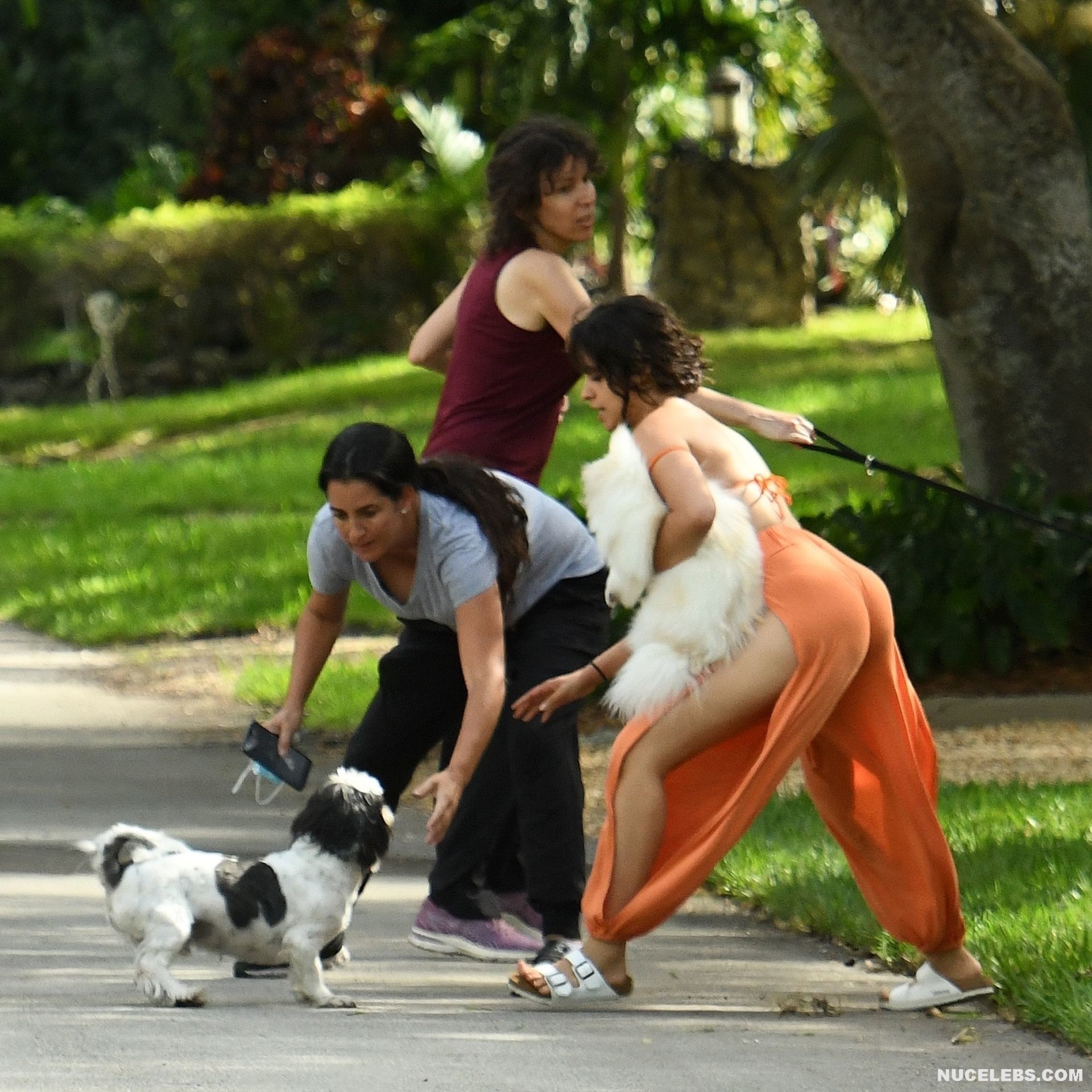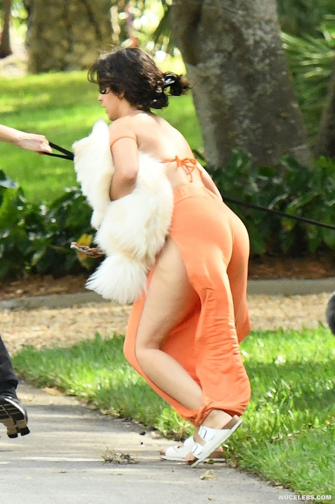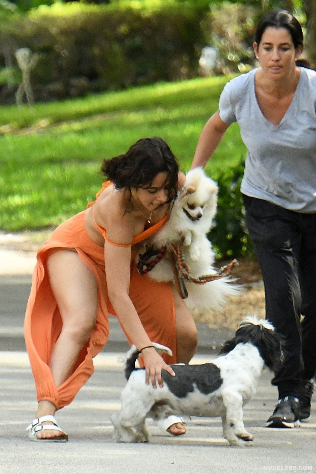 Recently, the media actively discussed the Camila Cabello dog walk in Halloween. One of the dogs escaped and the girl had to work hard to catch it. By the way, it’s worth noting that Camila Cabello wore orange trousers with slits showing her nude legs. In addition, the fabric was quite thin, so you could admire the singer’s awesome ass when she walked down the street, and especially when she bent over. By the way, when Camila Cabello sat down to catch the dog, almost all of her nude ass could be seen from the cut of the trousers! Well, it may not be the most comfortable outfit for walking the dogs, but it’s incredibly sexy!