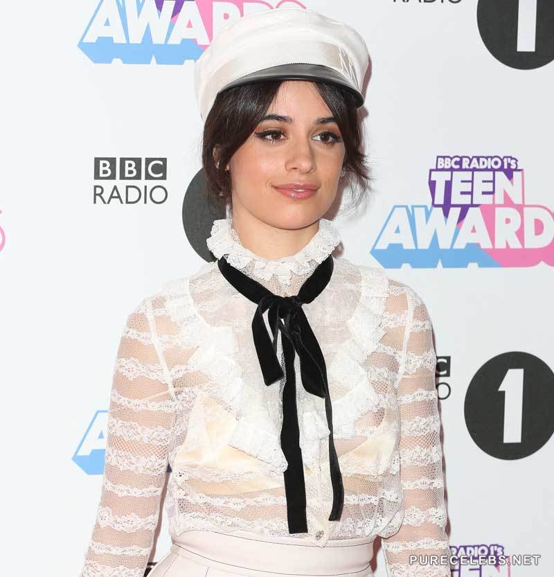 If you are a fan of nipslips be sure not to miss the opportunity to see these photos of the amazing Camilla Cabello on the red carpet. The hot brunette babe wore a sheer lacy white shirt to the event and her nipples managed to slide out of her tiny golden bra and meet the flashing cameras of eager reporters. The young Cuban singer playfully smiled for the camera while posing for photos.