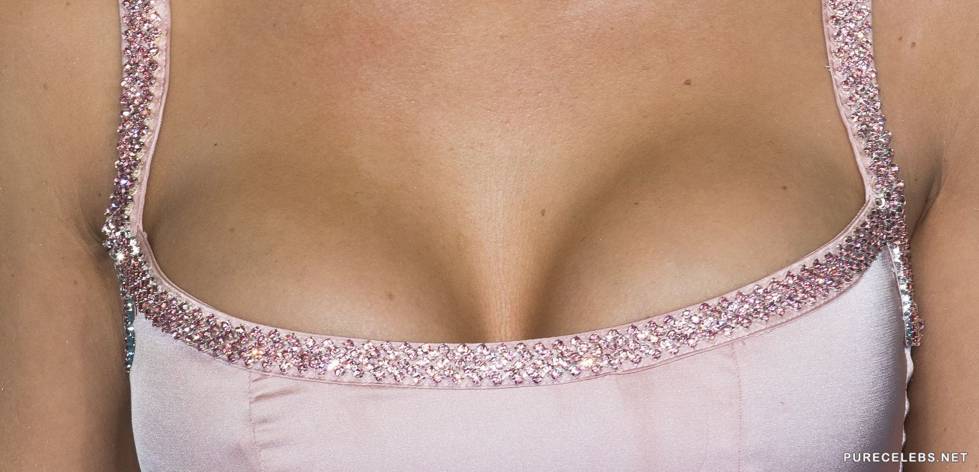 Paparazzi did it again and they did it very good. As Camilla Thurlow showed up in a satin, powder pink dress that is gently hugging her curves and with shiny, embroidered straps, someone made sure to get nice close- up photos of those bubbly tits squeezed nicely and looking mouthwatering in every sense. Her smile is beautiful and she looks very classy, but we all look at that cleavage, right?