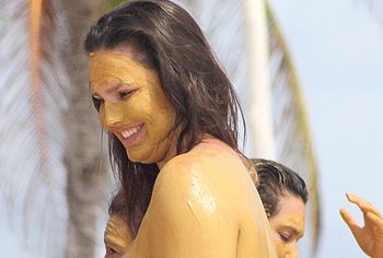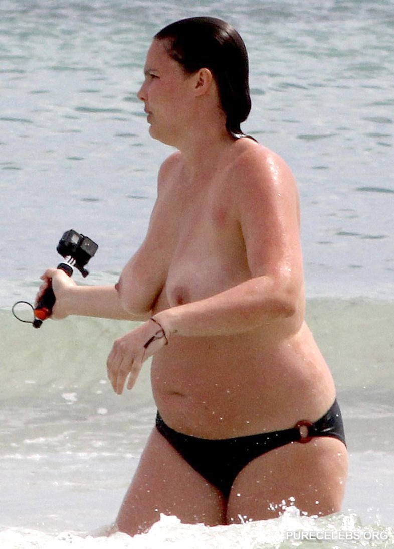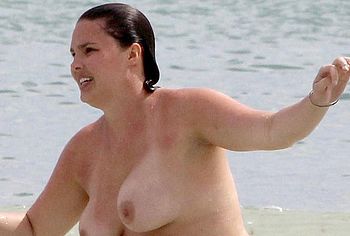 Plus size Candice Huffine is constantly under the scrutiny of the paparazzi. For example, they managed to photograph Candice Huffine’s nude tits when she was relaxing topless on the beach. This celebrity was wearing only black little panties that barely covered her sweet ass. Undoubtedly, Candice Huffine’s nude boobs attracted the attention of everyone around! Her huge breasts combined with brown nipples can drive everyone crazy!