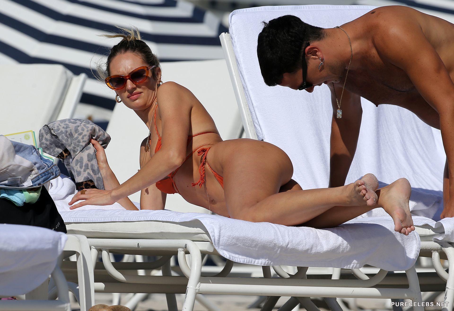 When Candice Swanepoel bends over in such a tiny bikini, showing us her hot, firm ass, we can not skip wondering if she is doing it on purpose, or it is just something natural for her, driving people crazy on the beach and making paparazzi drool while just trying to do their job, taking hot photos of sexy celebrities in various places. Ah, that butt makes the day look brighter!