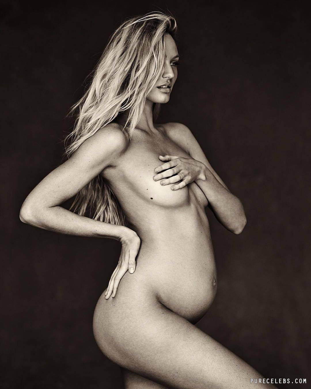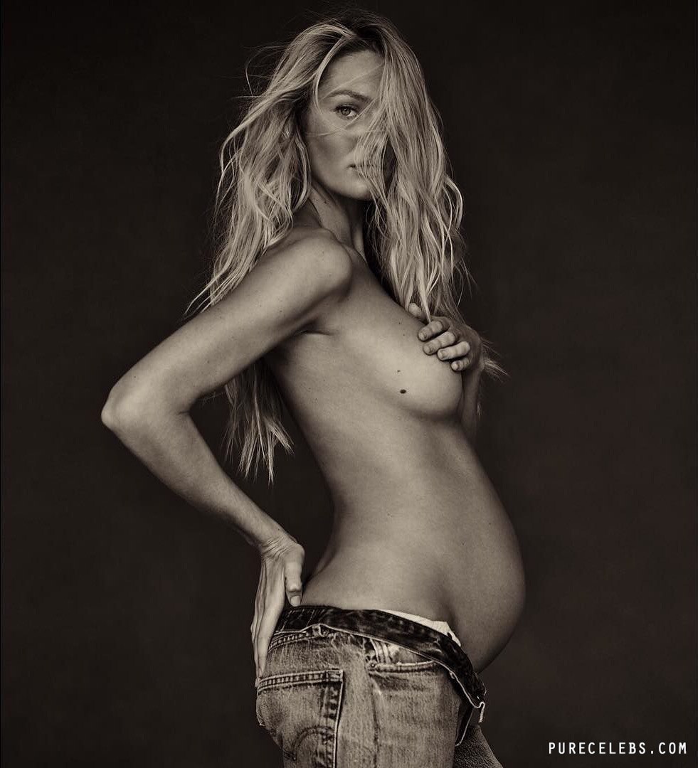 South African supermodel Candice Swanepoel is showing off her pregnant belly on the photo shoot in sexy white panties that barely cover up her private parts. But she also did some sexy photos prior her pregnancy and look at those pictures where she exposes her big round booty and as she covers up her sexy round breasts with her hands. Pregnant or not, she is one fuckable babe.