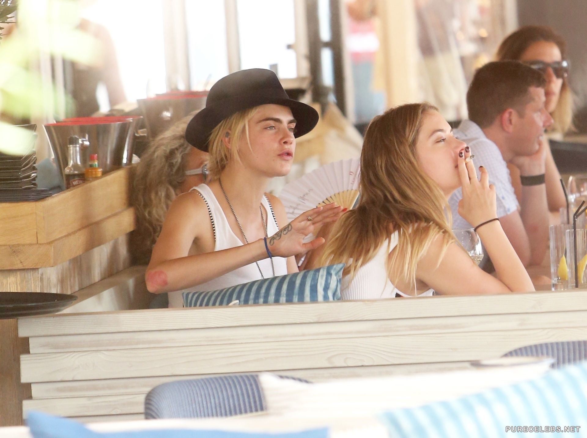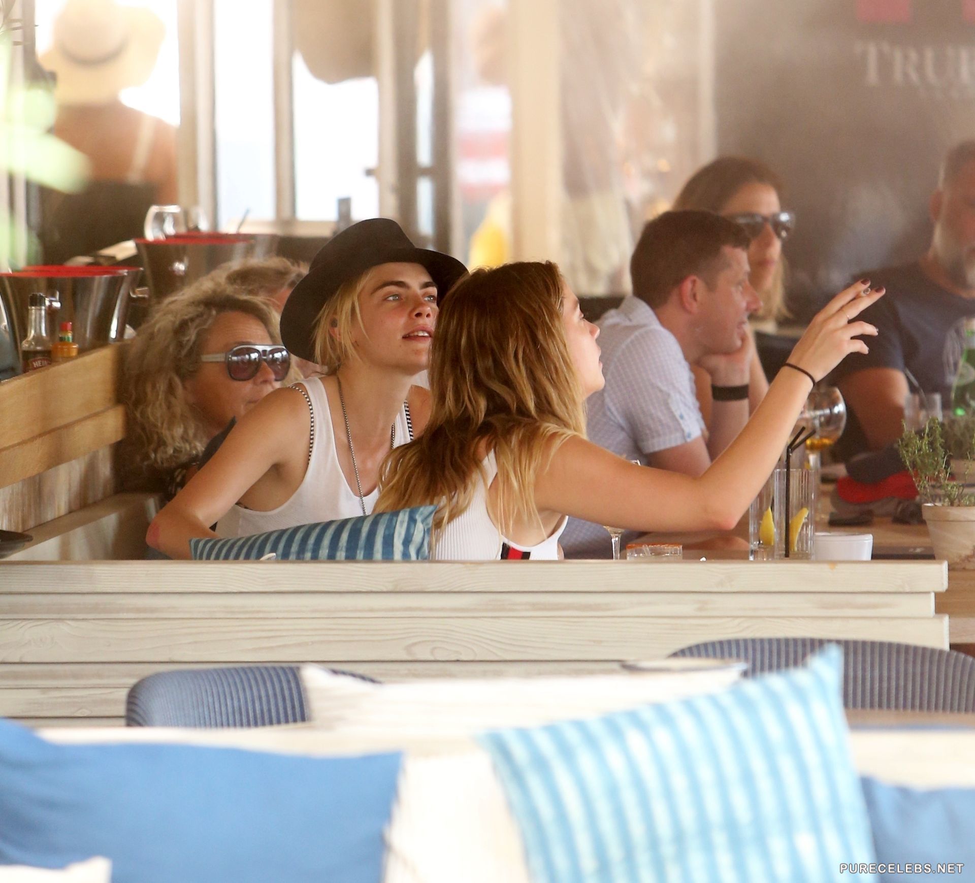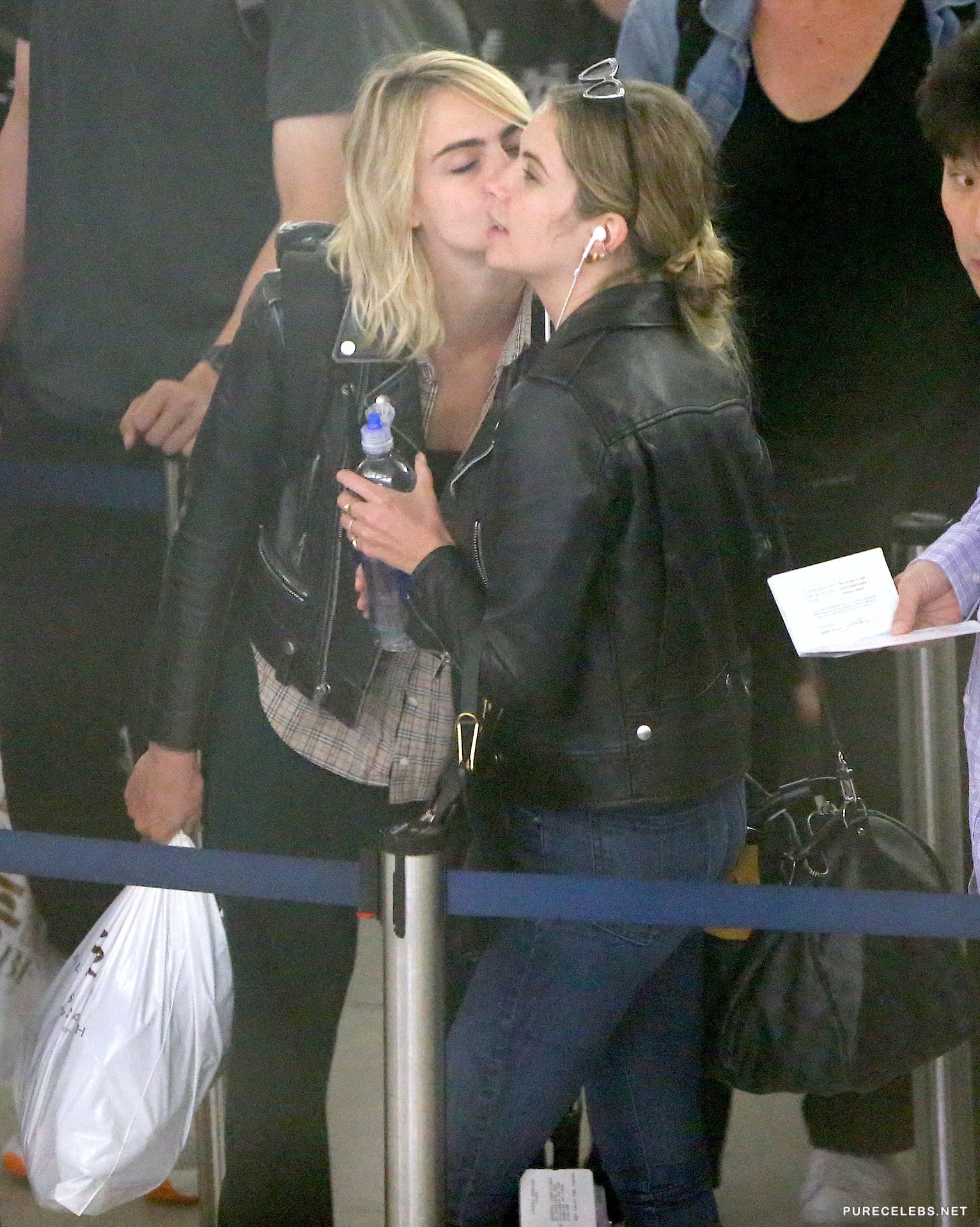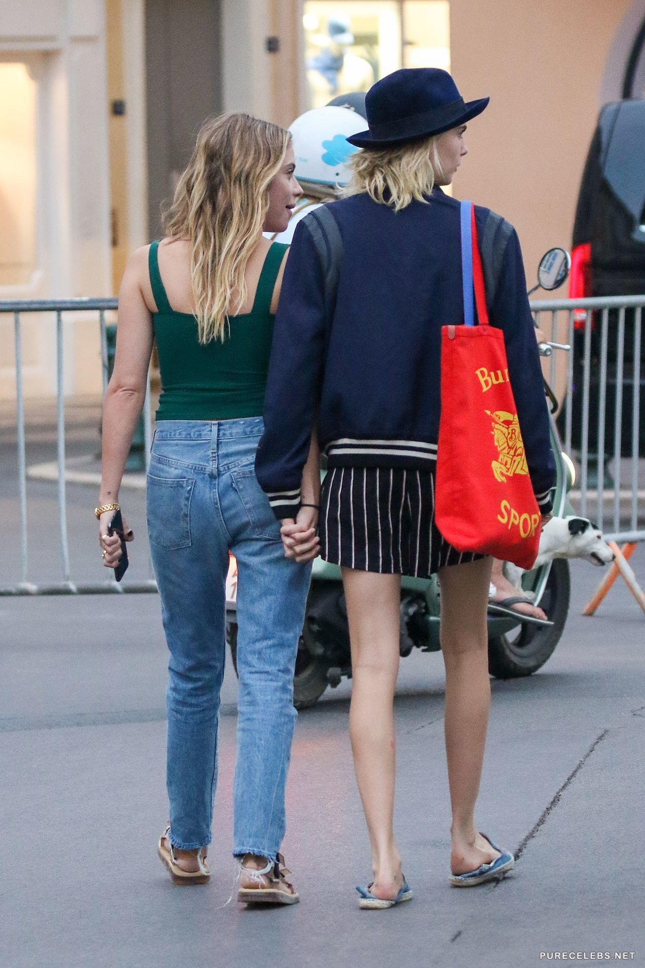 Paparazzi have long been watching the sweet lesbian couple Cara Delevingne and Ashley Benson, and these girls certainly have something to please us. Recently, their hot lesbian kiss was photographed and caused an extraordinary stir in the network. In addition, beauties just love to appear in public in overt sexual outfits, through which their awesome tits shine through.