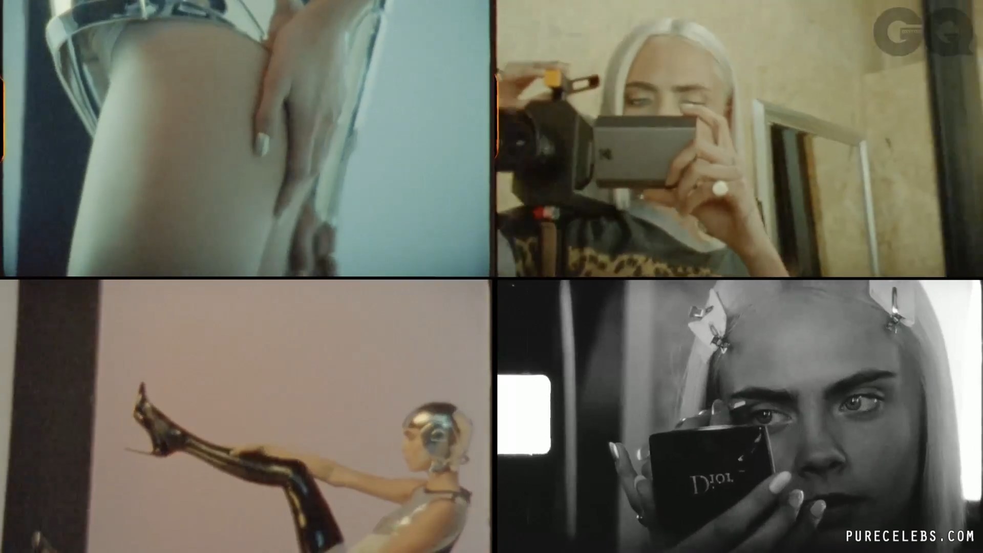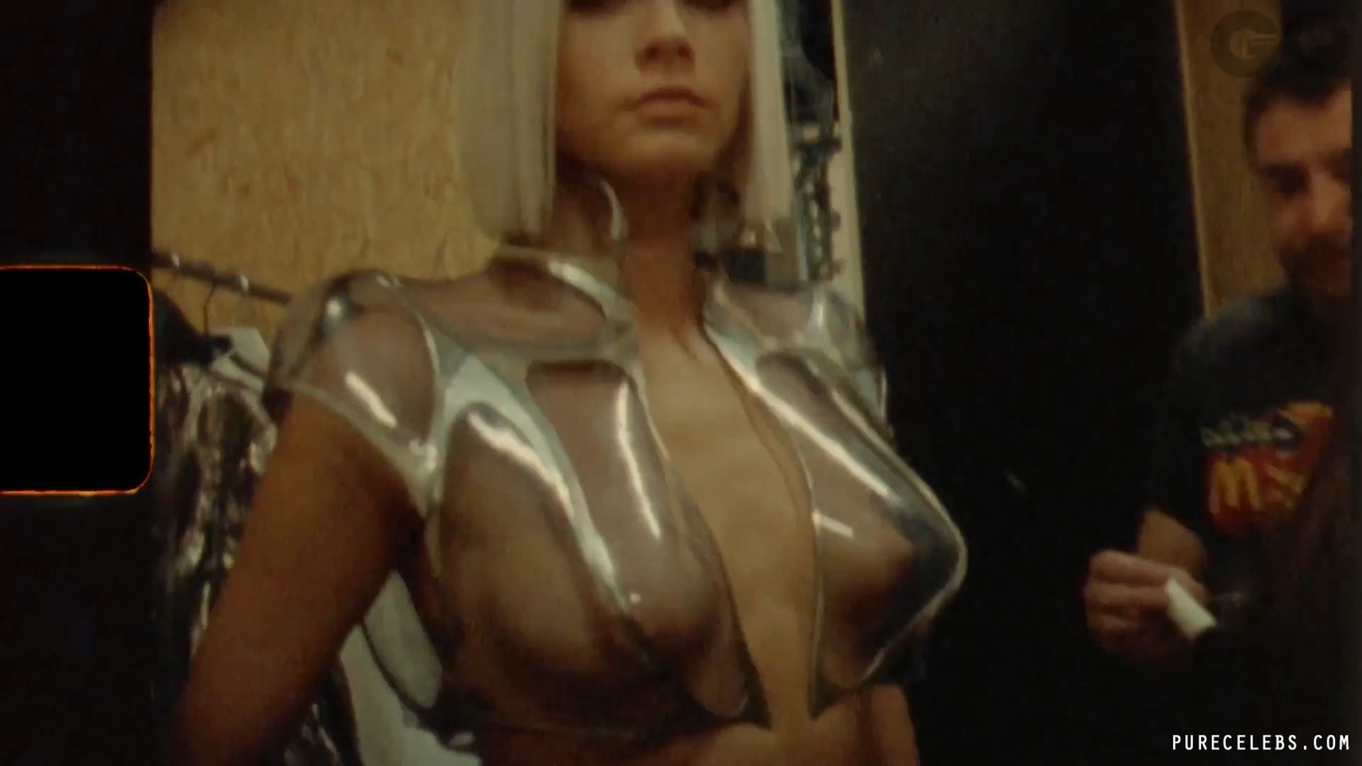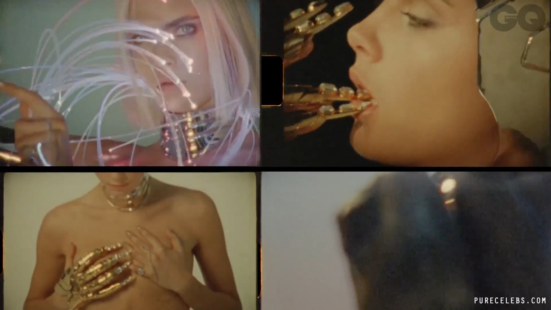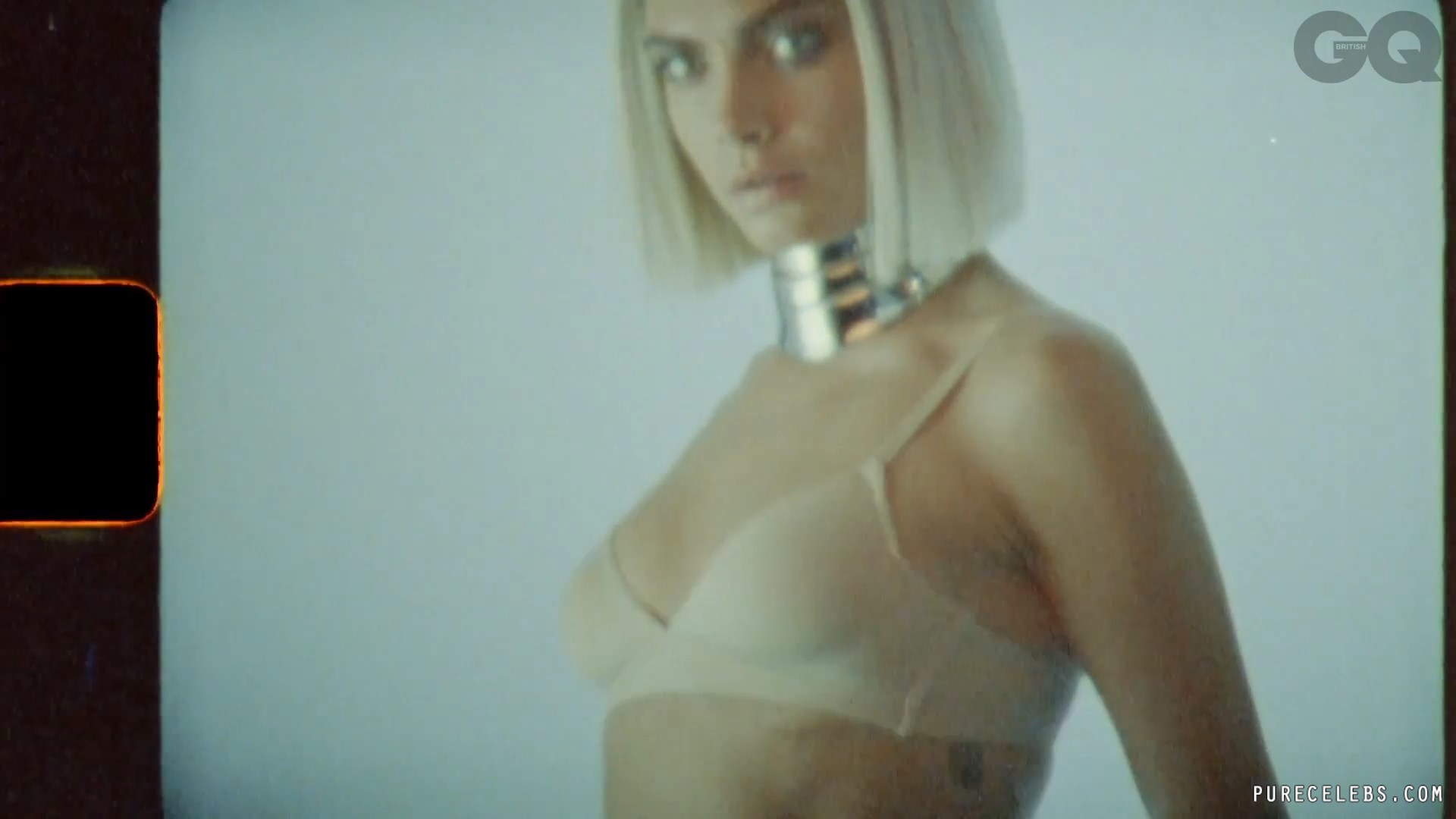 English actress Cara Delevingne boasted her nude boobs in a photo shoot for British GQ. The celebrity was dressed in an unusual outfit, the top of which was transparent, and the bottom was silver. It is worth noting that her ass looked amazing in tight panties! It was also impossible to look away from Cara Delevingne’s wonderful nude boobs with brown nipples that were visible through a transparent top.