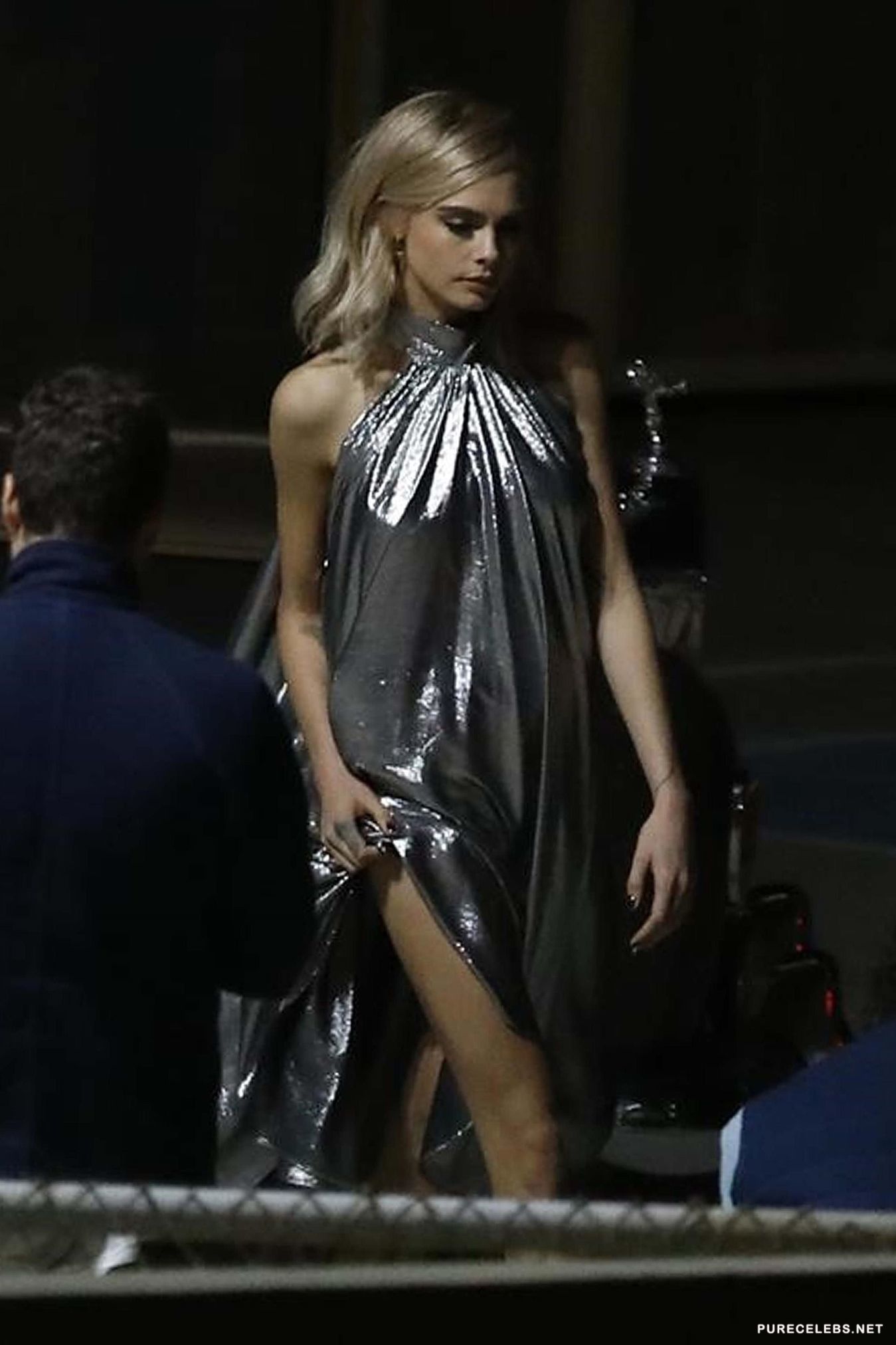 If you have seen Valerian and the City of a Thousand Planets, then you probably remember the stunning young actress Cara Delevingne. Paparazzi recently managed to snag some candid photos of the star’s cleavage while she was attending a public event. Her provocative outfit was the main cause of this delightful nip slip. But this bushy-browed petite blond is also guilty of posting some hot topless selfies baring her tiny titties for viewers pleasure.