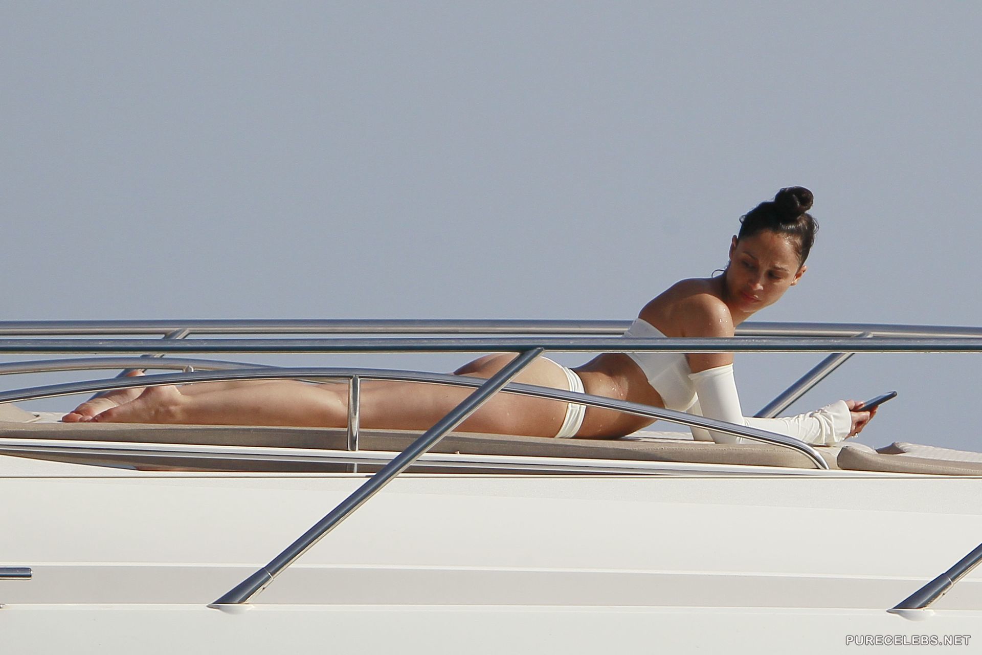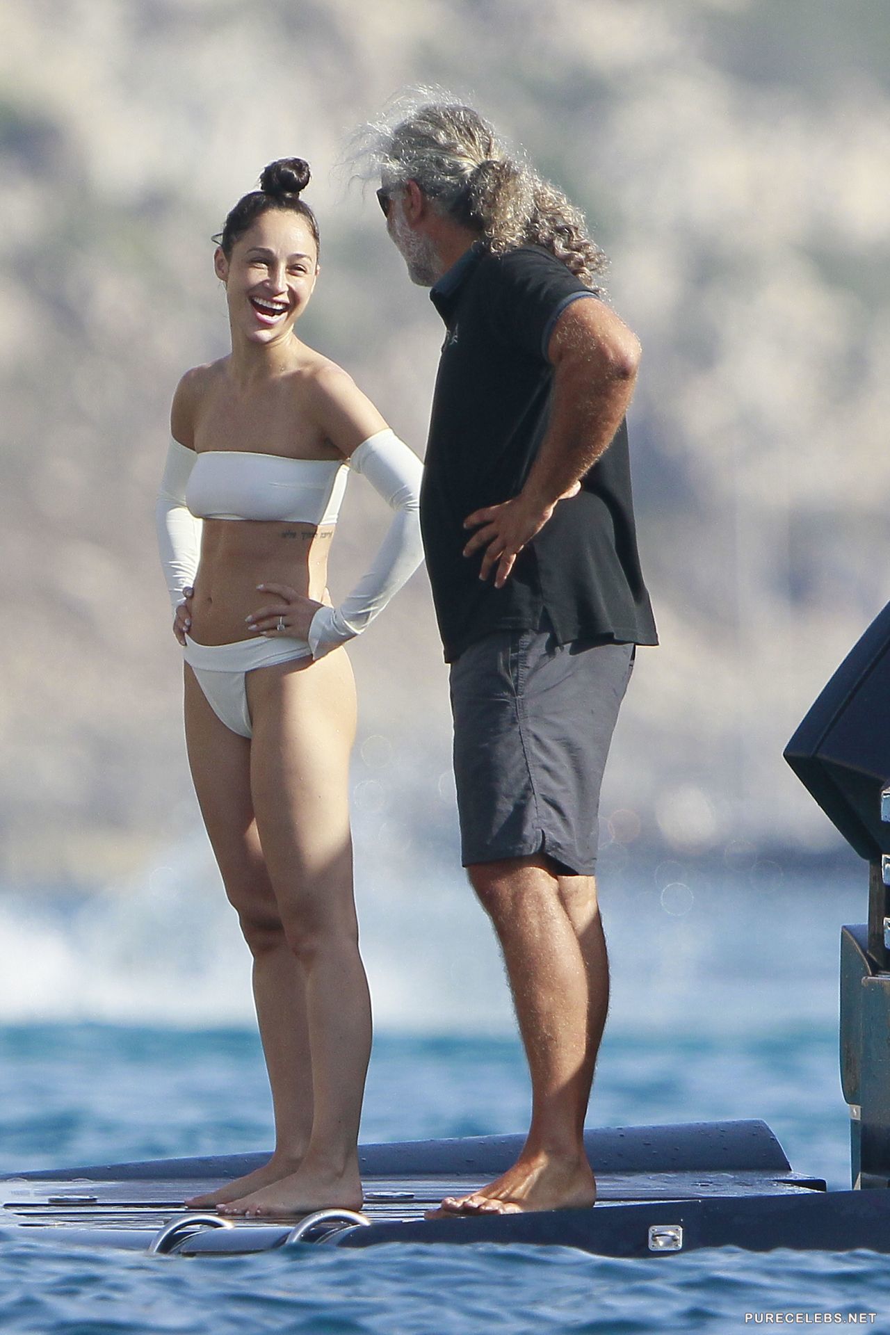 American actress Cara Santana was recently caught by paparazzi during her beach holiday. It is worth noting that this girl looked very seductive in a small brown bikini with white polka dots when she took off her denim shorts. Her ass looked incredible in small thongs, and it was impossible to look away from her. And her charming boobs seemed even bigger in a small bra. It is simply impossible to resist this celebrity!