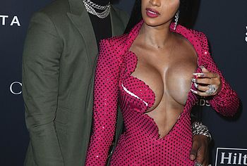 Have you seen Cardi B’s nude boobs that she demonstrated at one of the events? It’s no secret that this hot brunette loves to shock the audience. So she arrived at the party in a pink dress with black polka dots. The main feature of the dress was that its neckline was so low that it ended at the level of her belly. And this star did not wear a bra. So it is not surprising that her huge tit with a brown nipple at one point still slipped out of the dress.