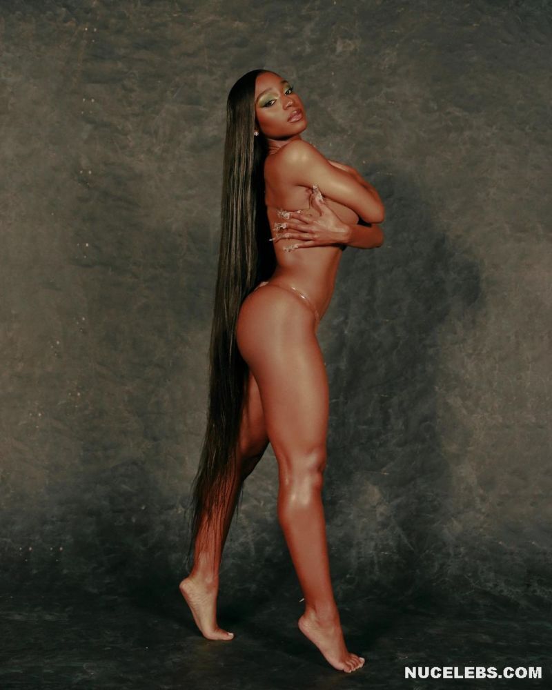 Cardi B attracts its fans not only with its excellent rap performance. This celebrity also loves to flaunt her plump body. Cardi B is often photographed nude or in petite lingerie, and sometimes provocatively hugs other half-naked girls in the photo. For example, in one of the photos you can see this star in petite beige lingerie, which did not hide her big chubby butt or her huge tits. And Cardi B was photographed completely nude, covering her nipples with her palm and hair.