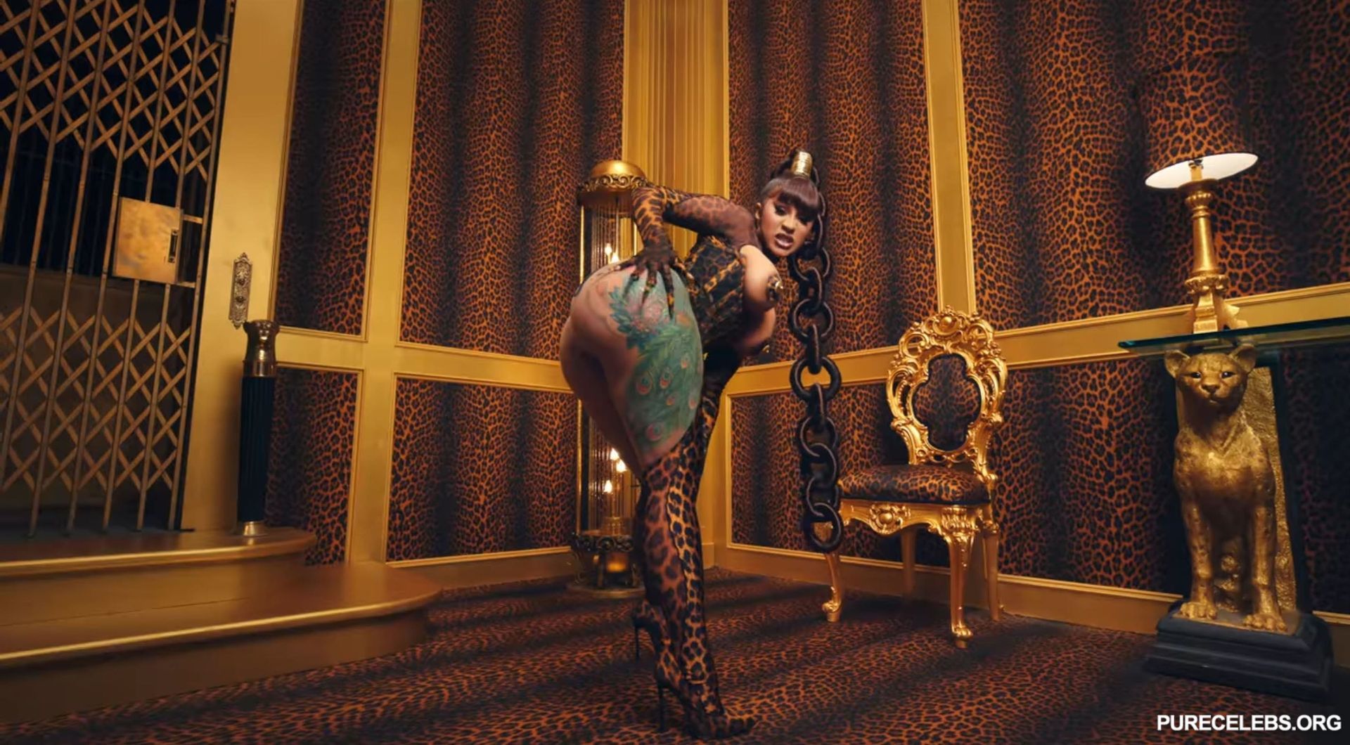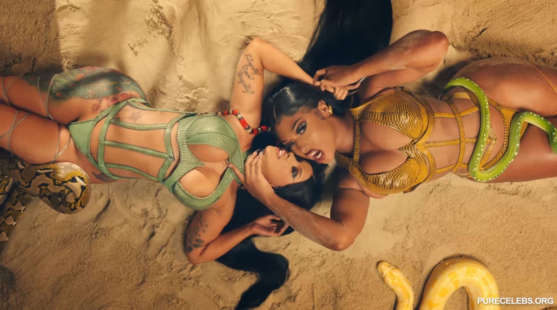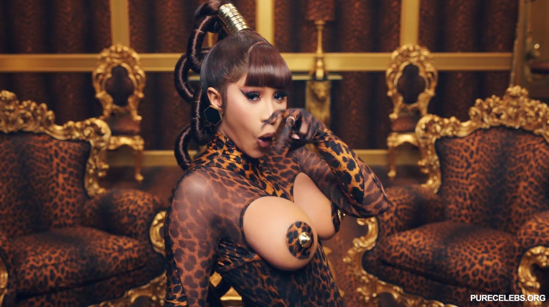 Two hot babes Cardi B and Megan Thee Stallion showed off their almost nude bodies in the WAP music video. So, Cardi B appeared in a tight leopard outfit that did not cover her naked ass at all. The girl gladly showed her tattooed ass in close-up. In addition, it was impossible to look away from Cardi B’s nude boobs, the nipples of which were covered with sharp cones. Also Cardi B and Megan Thee Stallion appeared in various sexy outfits, from which their huge juicy melons almost jumped out.