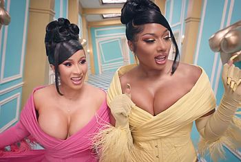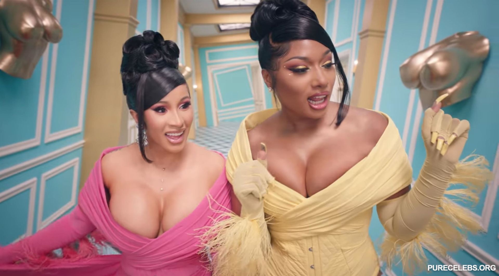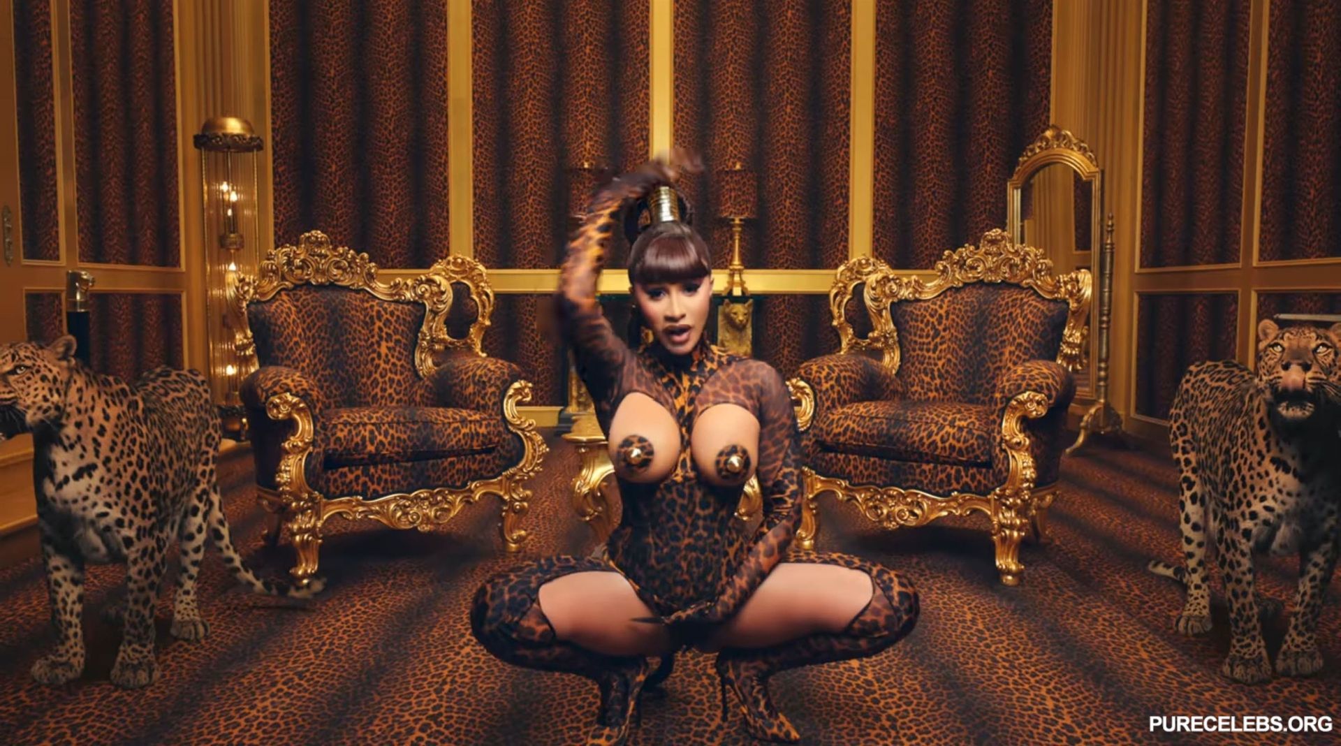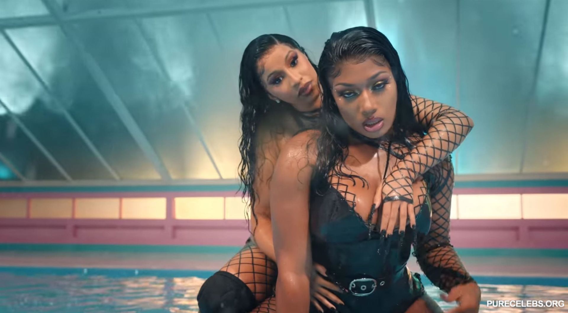Two hot babes Cardi B and Megan Thee Stallion showed off their almost nude bodies in the WAP music video. So, Cardi B appeared in a tight leopard outfit that did not cover her naked ass at all. The girl gladly showed her tattooed ass in close-up. In addition, it was impossible to look away from Cardi B’s nude boobs, the nipples of which were covered with sharp cones. Also Cardi B and Megan Thee Stallion appeared in various sexy outfits, from which their huge juicy melons almost jumped out.