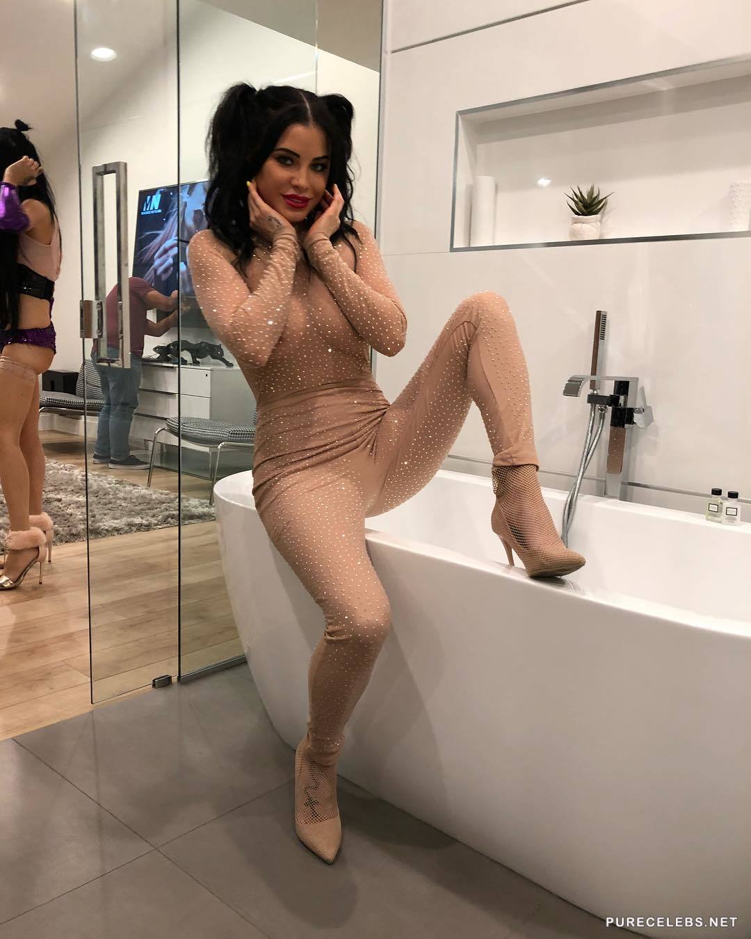 Sexy brunette Carla Howe is wearing a nude bodysuit, kinda see through, kinda not, playing shy yet showing it all because this naughty temptress knows exactly what we want. In this set of sexy photos, we present you ass and especially boobs of Sara, in a see through top, looking at us the way we look at them and making our day better and much harder in every sense.