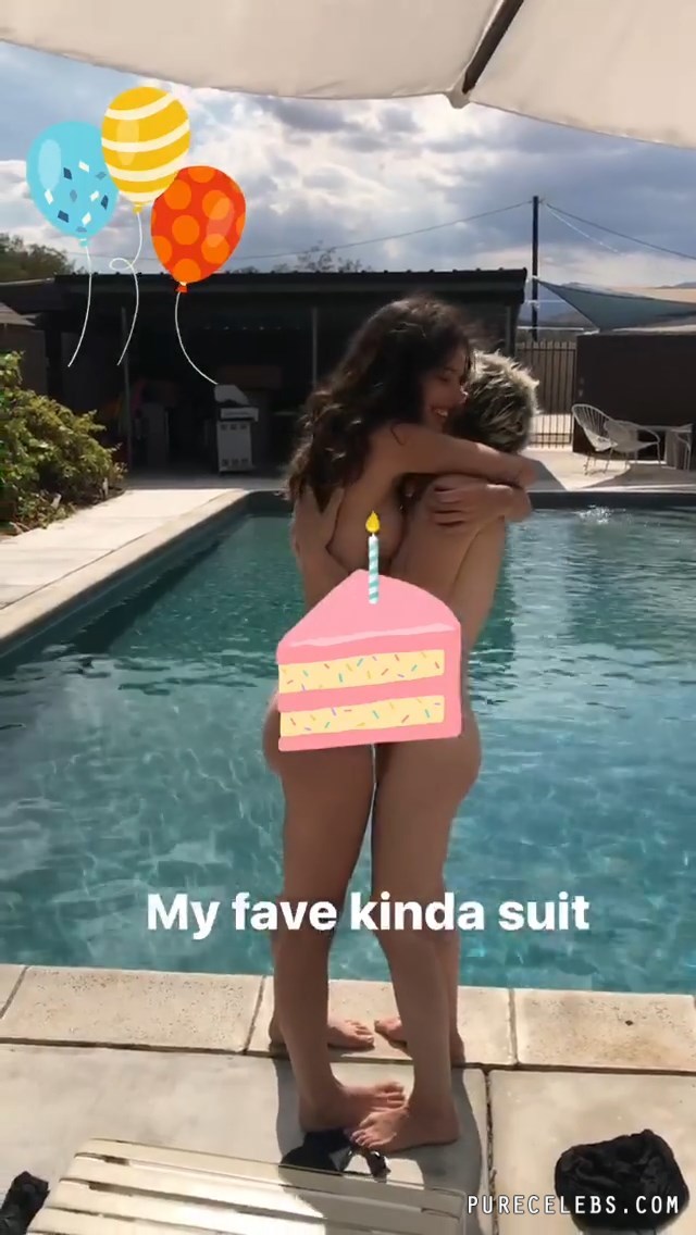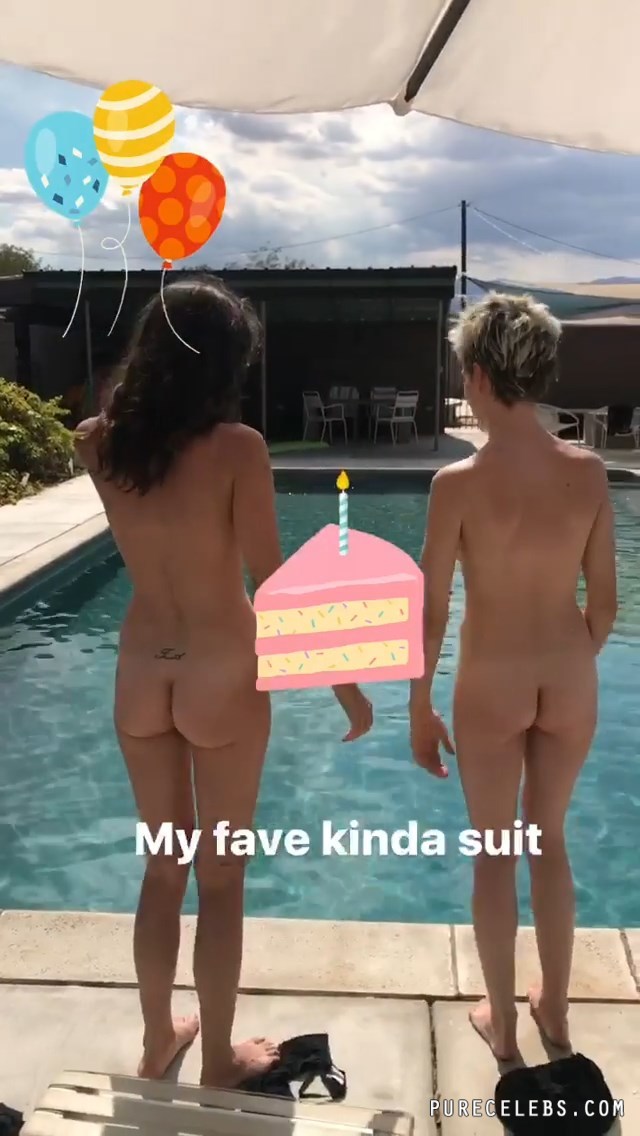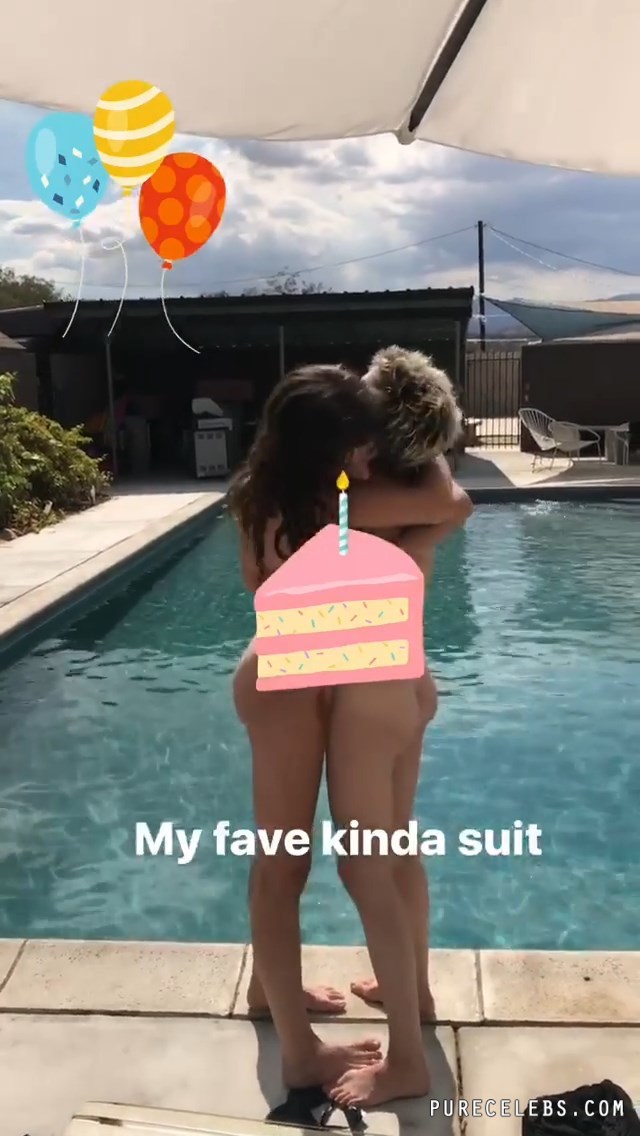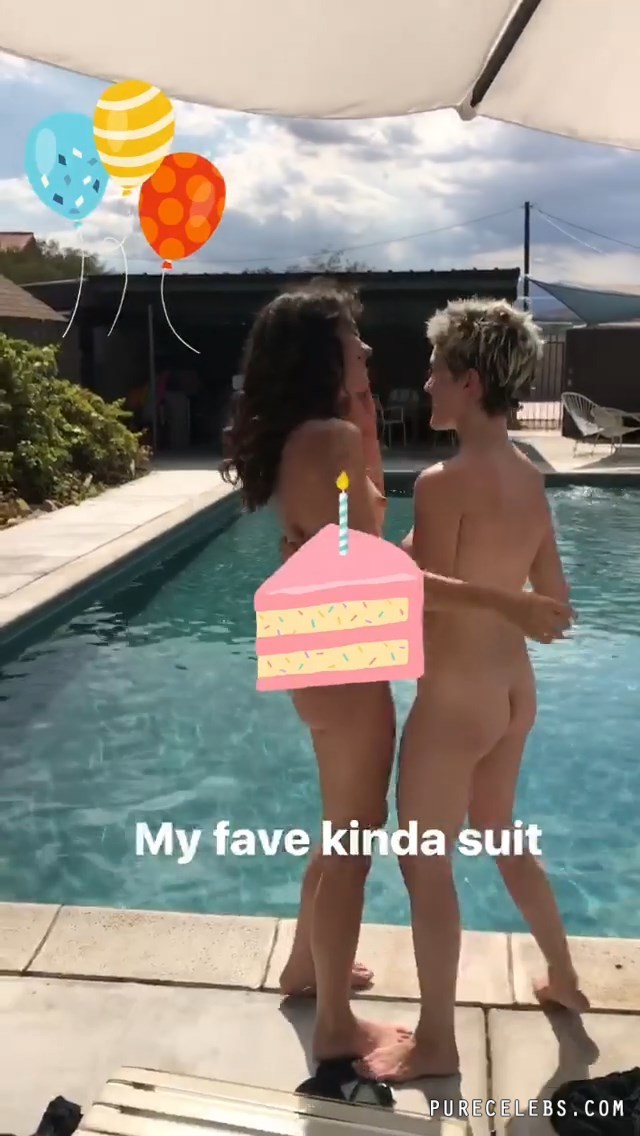 The T-Mobile Girl Carly Foulkes flaunted her absolutely nude body. The celebrity shared a very hot naked video with the caption “my fave kinda suit”. We can see how she and her girlfriend are hugging near the pool, while both are completely undressed. And then they turn their backs to the camera and jump into the pool. By the way, this is a great moment to admire the awesome nude ass Carly Foulkes, isn’t it?