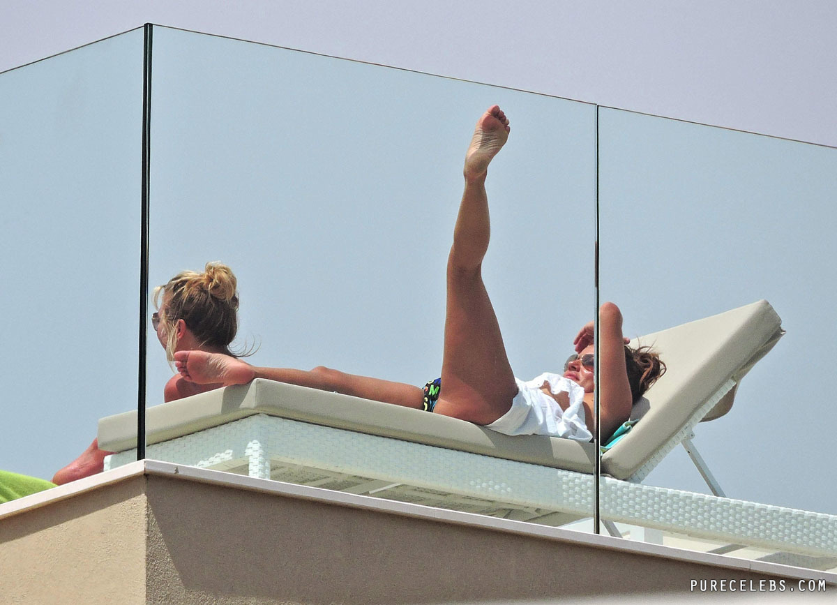English TV host Caroline Flack loves flaunting her nude tits. Paparazzi caught the celebrity topless during her vacation. The girl swam in the pool and sunbathed. At the same time, Caroline Flack was not at all embarrassed that her nude big boobs with hard nipples could be seen by everyone around. And it is worth noting that she really has something to show the world. I would love to grope her beautiful bare breasts!