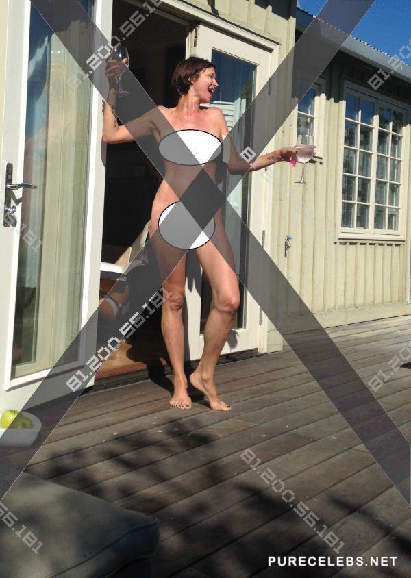 Catherine Bell manages to lose her clothes and then she gets some pictures taken of her nude body while she is in front of her house on the porch, holding a couple of wine glasses. The busty JAG star still looks as good as ever and we hope that we can soon see the uncensored versions of these pics that contain her tits and her pussy as well.