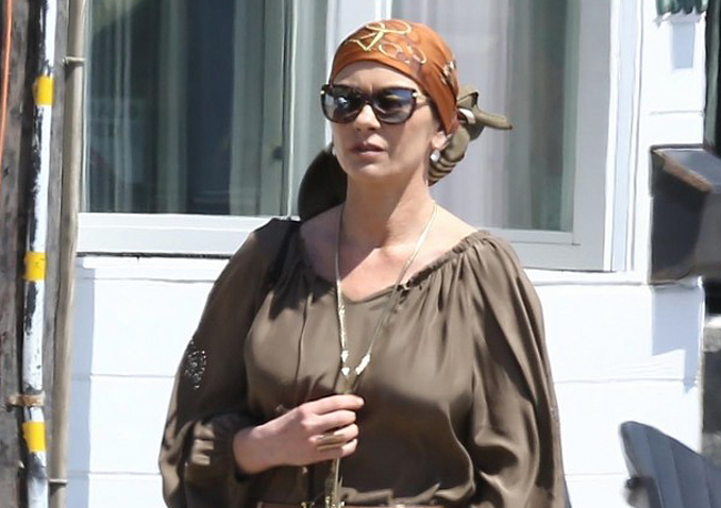 Catherine Zeta Jones was spotted by paparazzi as she and her husband Michael Douglas went out to for a lunch. She wore brown blouse, beige pants and a flip flops. But, her beloved husband wore something more casual as he wore polo t shirt, shorts and baseball hat! We have to say Michael is so lucky to have Catherine as wife, since she’s loyal, cute and most of all sexy!
