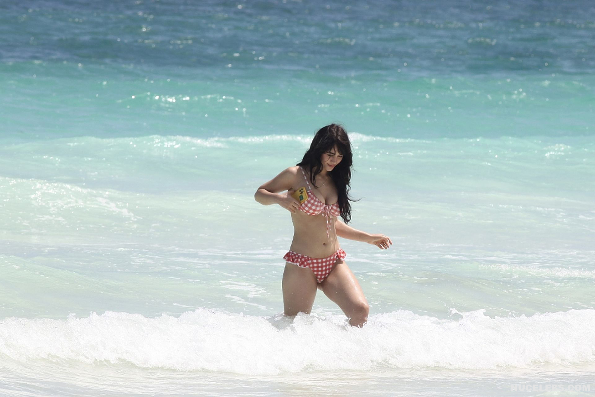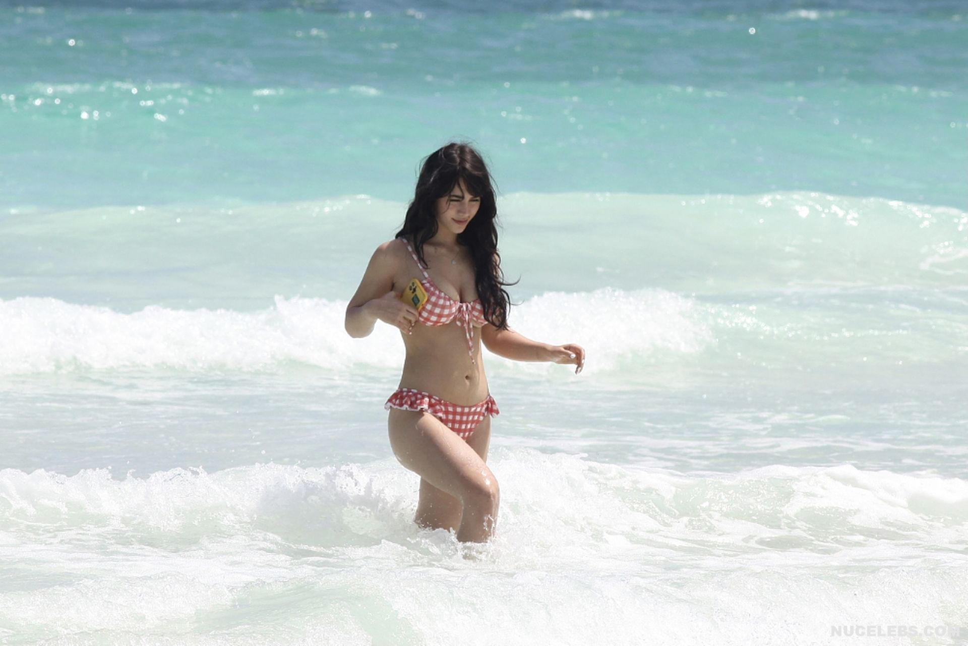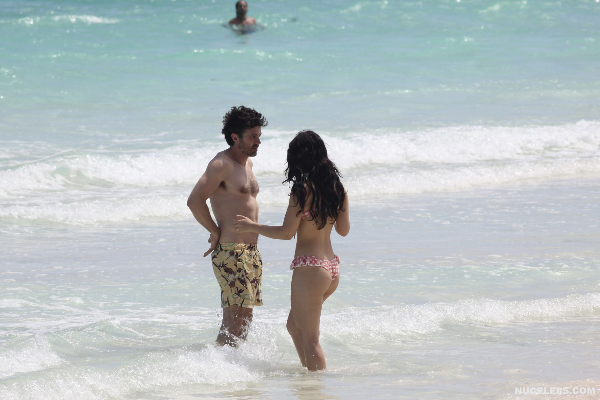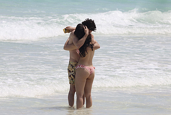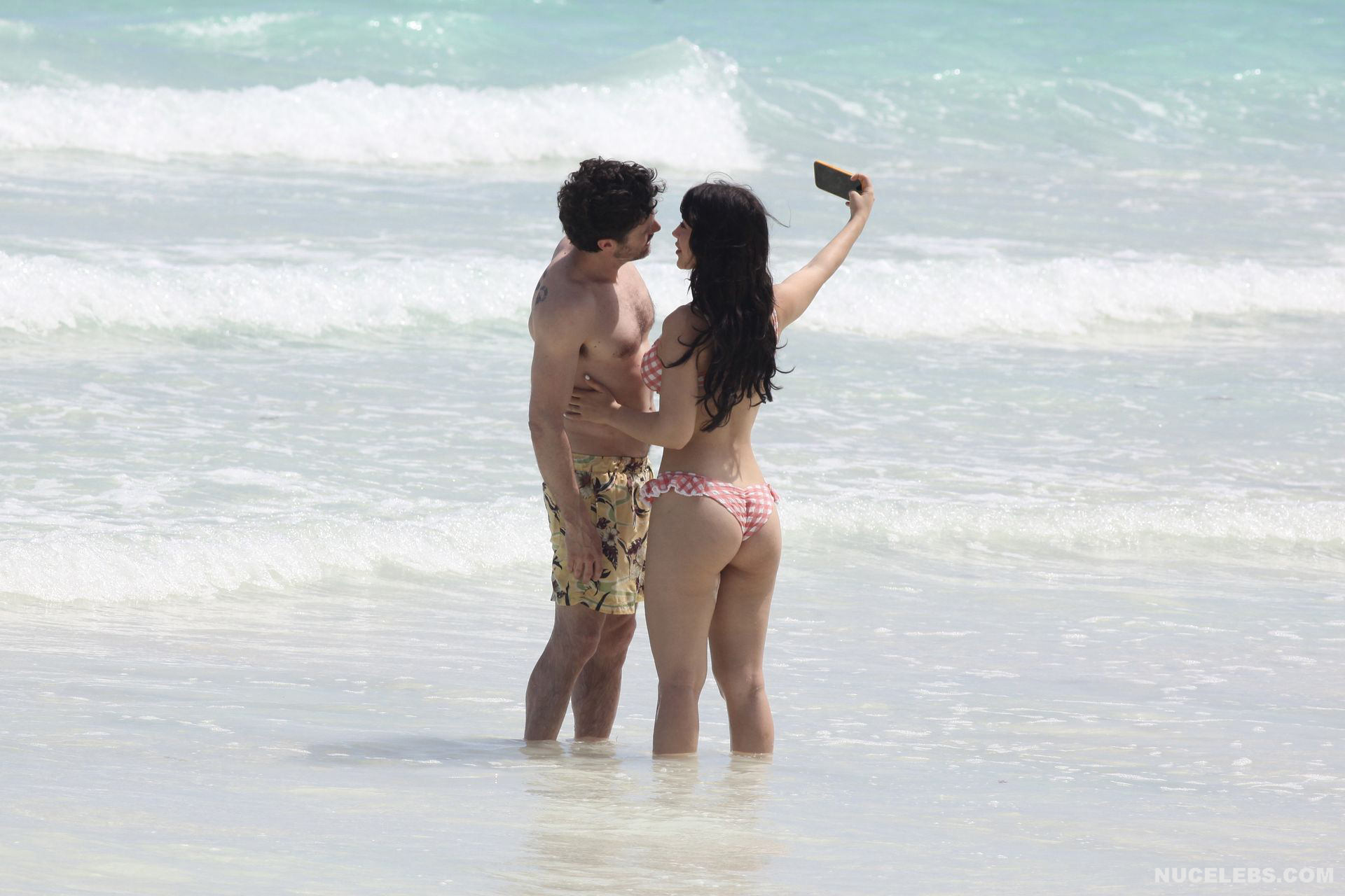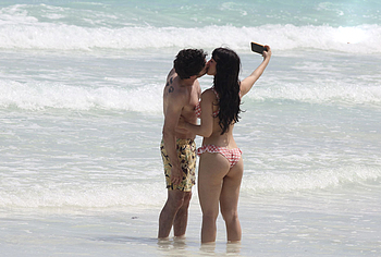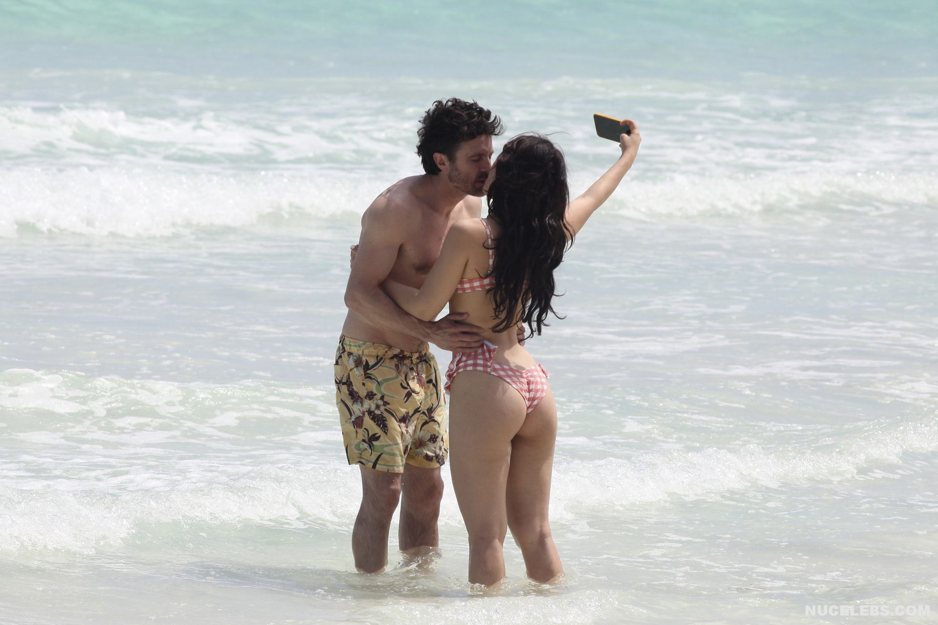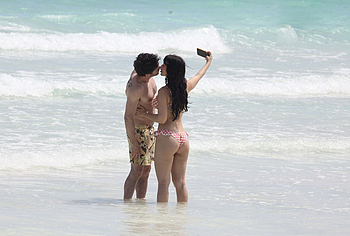 When Caylee Cowan hits the beach, her amazing figure is breathtaking. This 24-year-old celebrity was recently spotted on the beach with her boyfriend. Well, Caylee Cowan’s nude boobies almost popped out of her petite plaid bra as she ran out of the sea. In addition, this actress even decided to take a picture of her almost naked ass in tight thongs on her phone! No wonder her boyfriend hugged and kissed her almost all the time and tried not to move a single step!