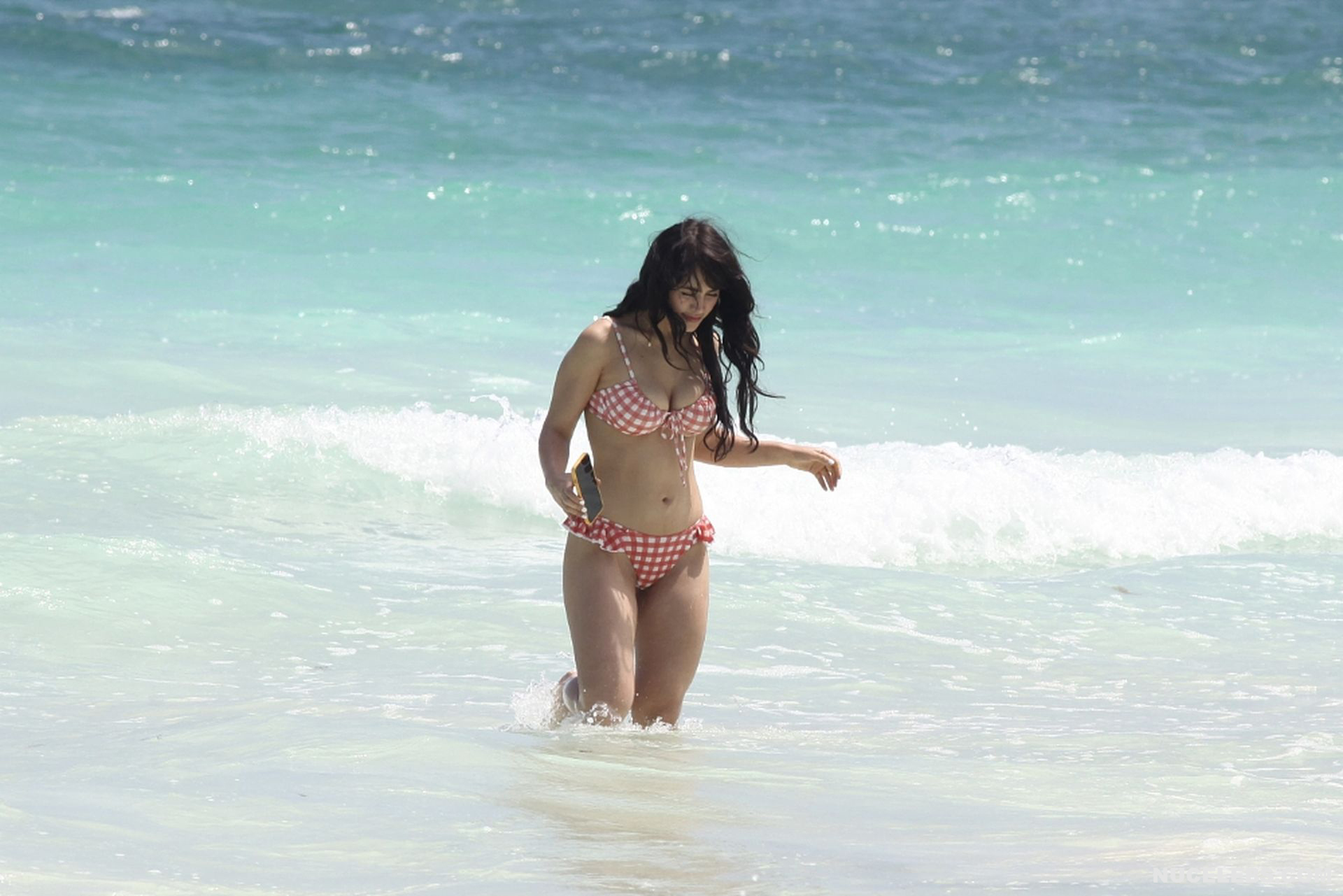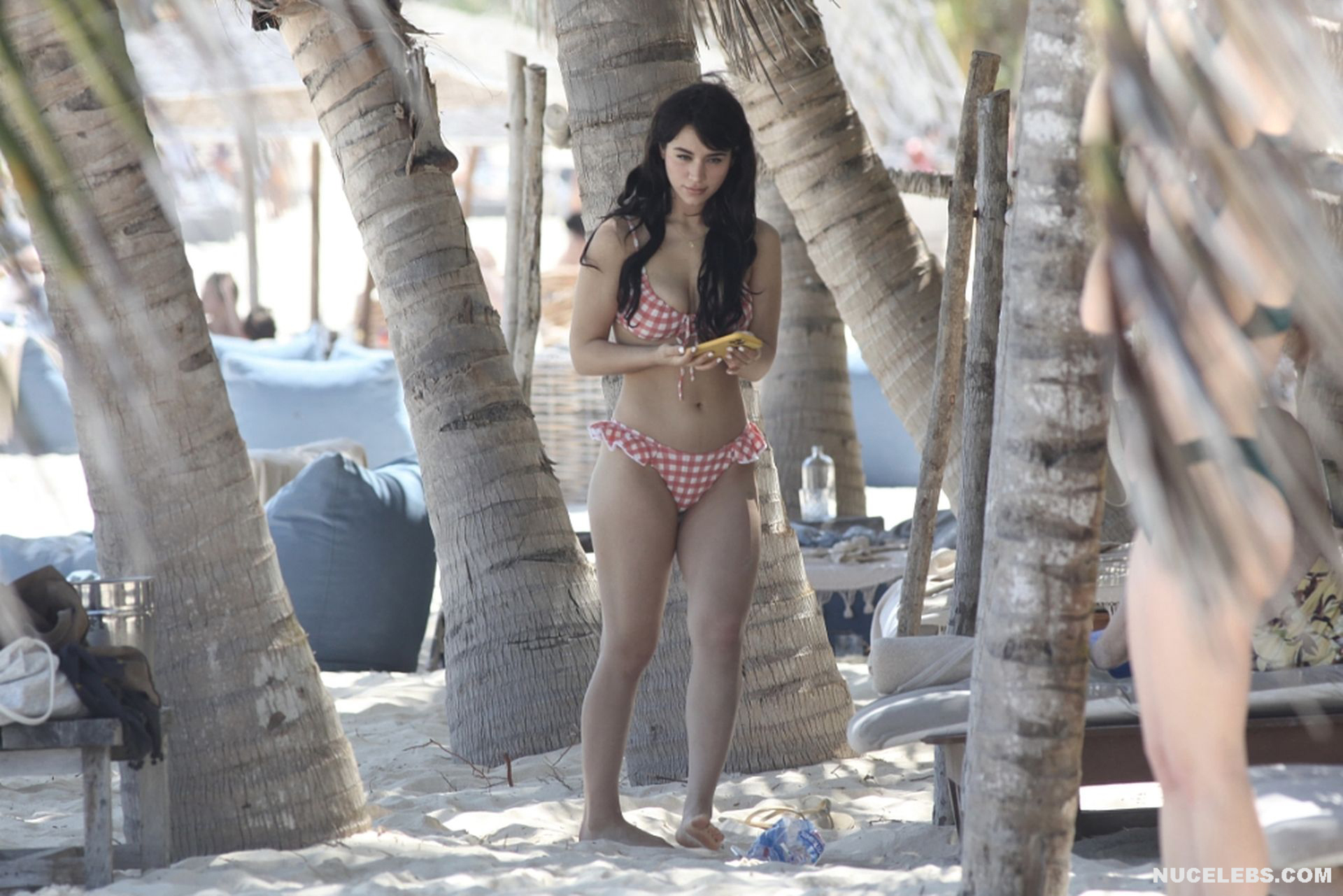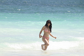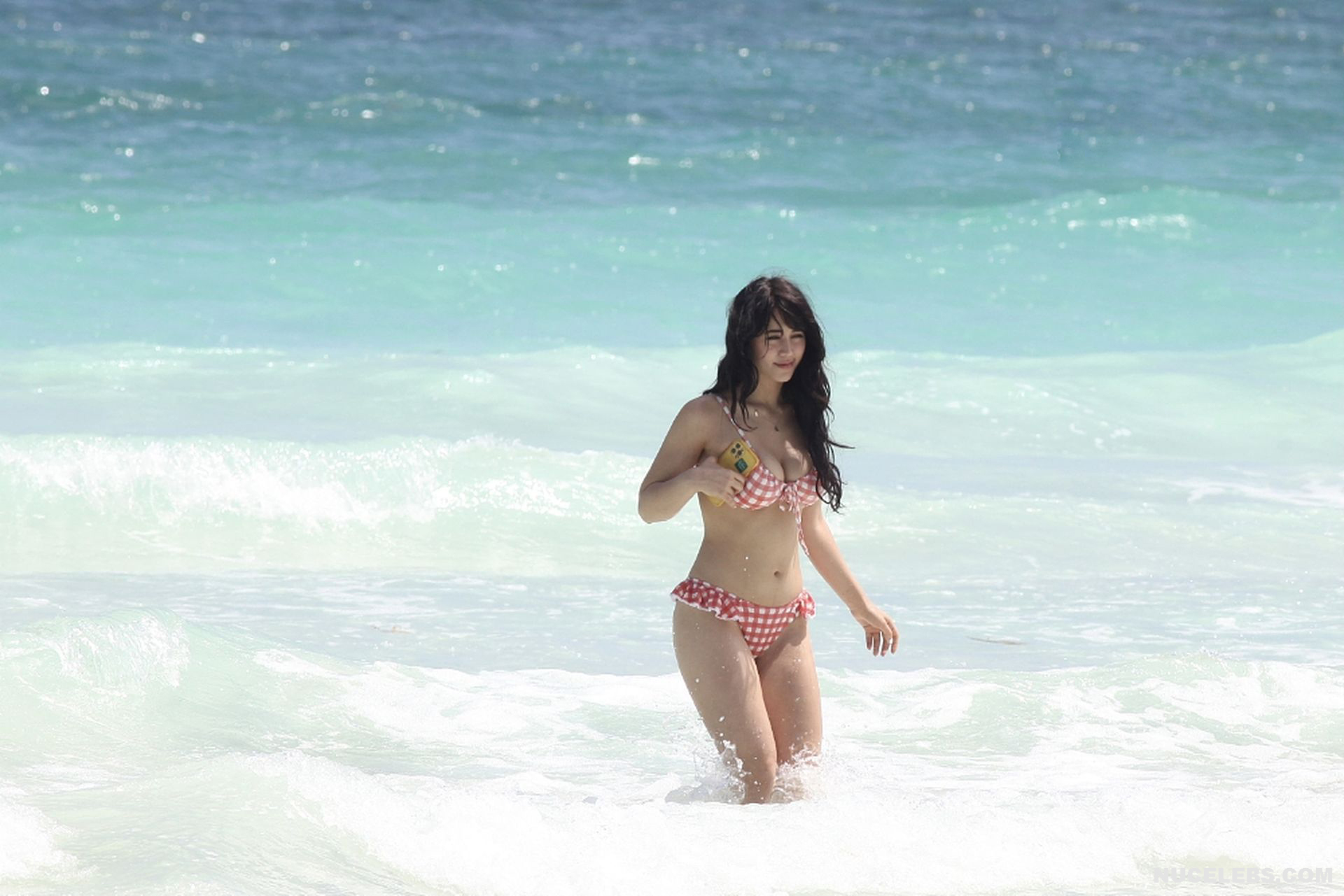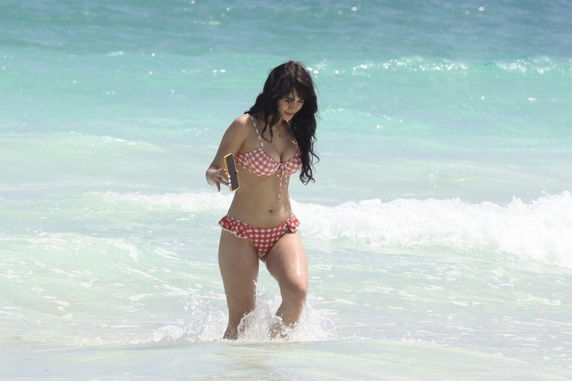 When Caylee Cowan hits the beach, her amazing figure is breathtaking. This 24-year-old celebrity was recently spotted on the beach with her boyfriend. Well, Caylee Cowan’s nude boobies almost popped out of her petite plaid bra as she ran out of the sea. In addition, this actress even decided to take a picture of her almost naked ass in tight thongs on her phone! No wonder her boyfriend hugged and kissed her almost all the time and tried not to move a single step!