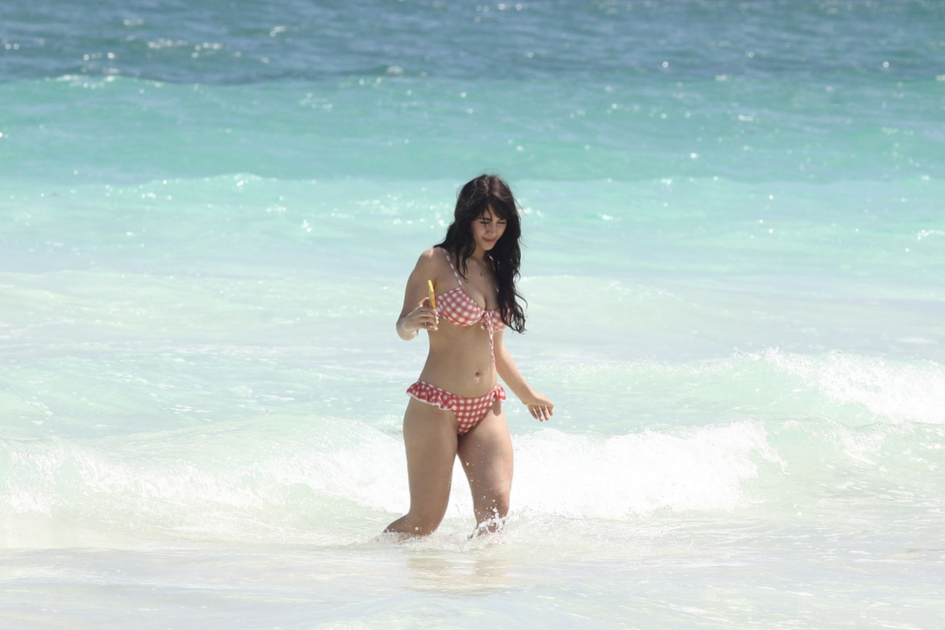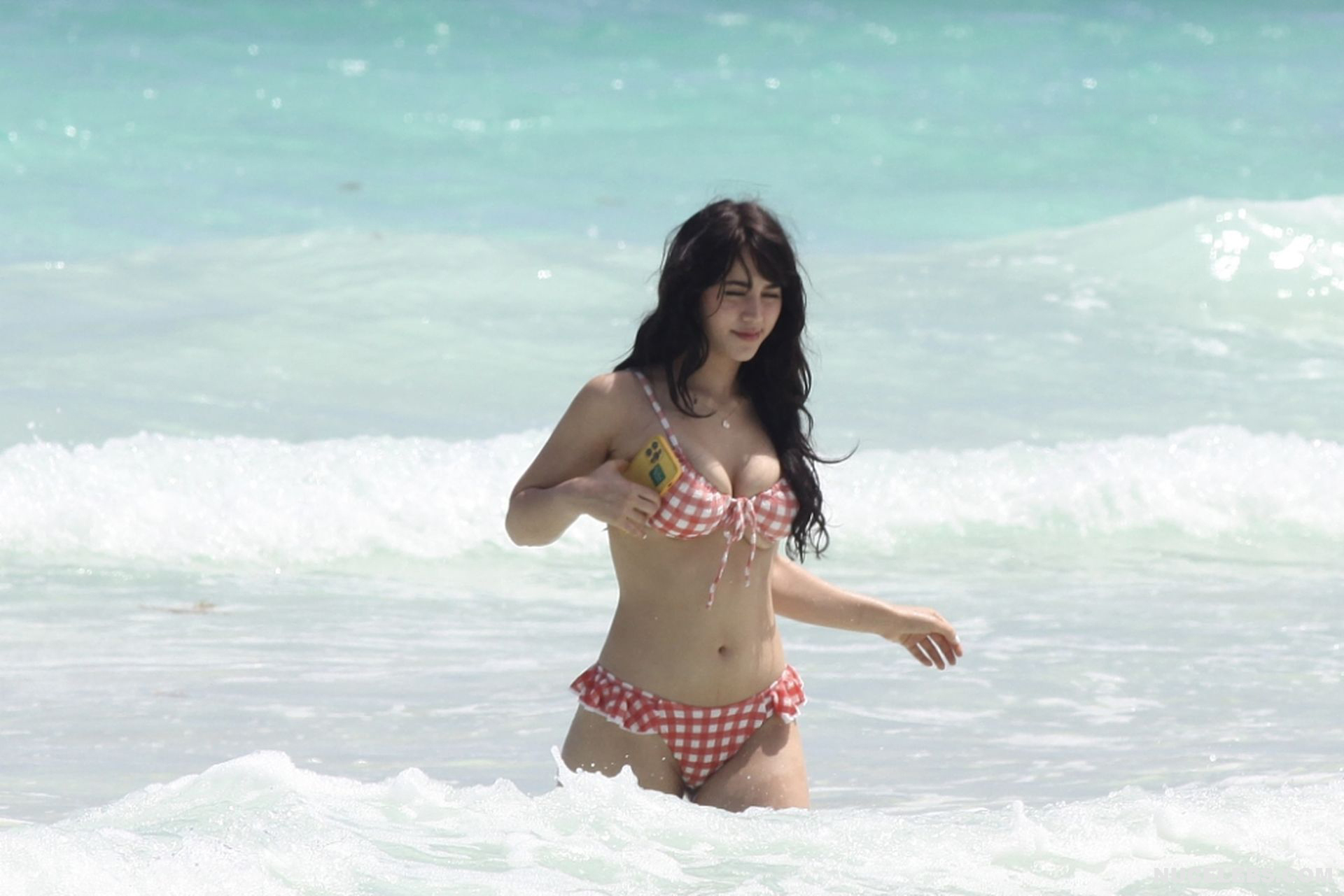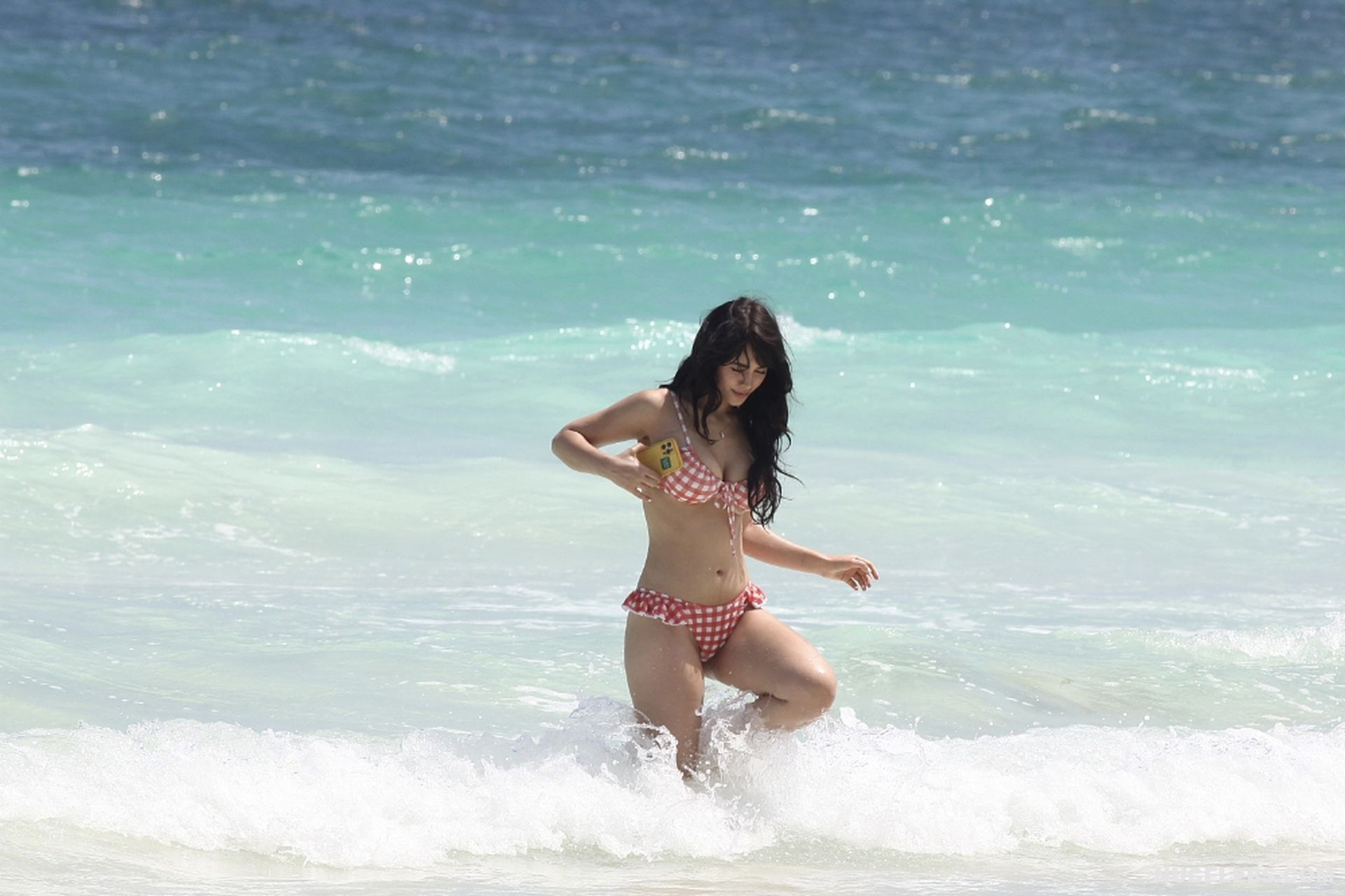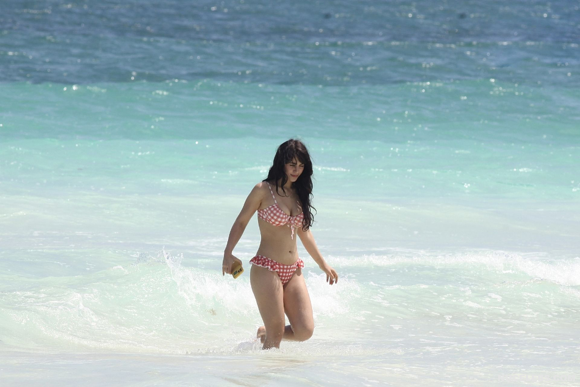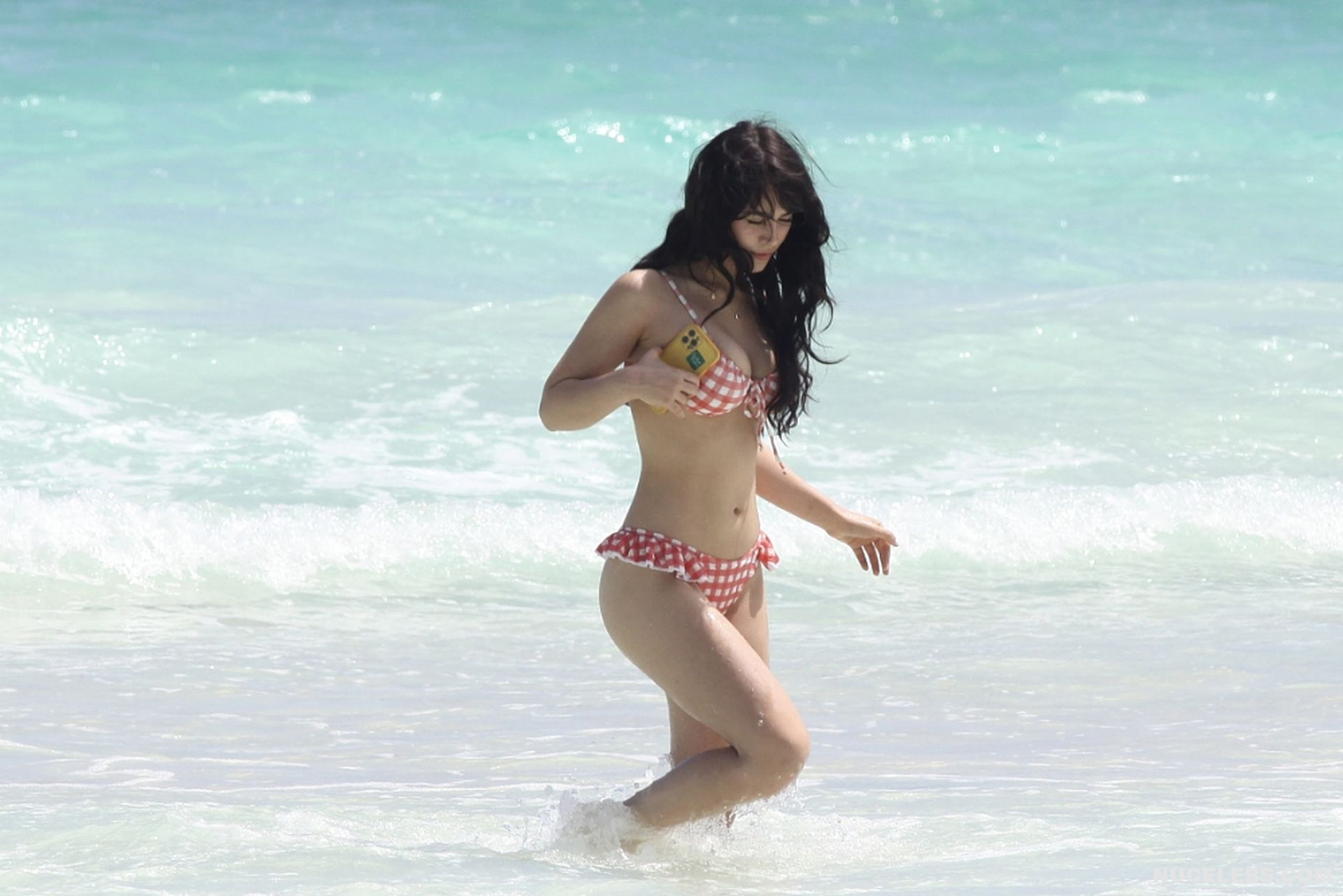 When Caylee Cowan hits the beach, her amazing figure is breathtaking. This 24-year-old celebrity was recently spotted on the beach with her boyfriend. Well, Caylee Cowan’s nude boobies almost popped out of her petite plaid bra as she ran out of the sea. In addition, this actress even decided to take a picture of her almost naked ass in tight thongs on her phone! No wonder her boyfriend hugged and kissed her almost all the time and tried not to move a single step!