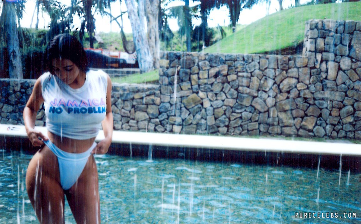 Kim Kardashian probably has the most popular ass on planet earth! Because when someone says bubble butt, the first thing that comes to your mind is Kim’s magnificent round booty! Well, once again we are here to provide you with some new pictures of the greatest ass on planet! She wears white thong which suit her darker tan perfectly, especially when she gets all wet, just like in these photos!
