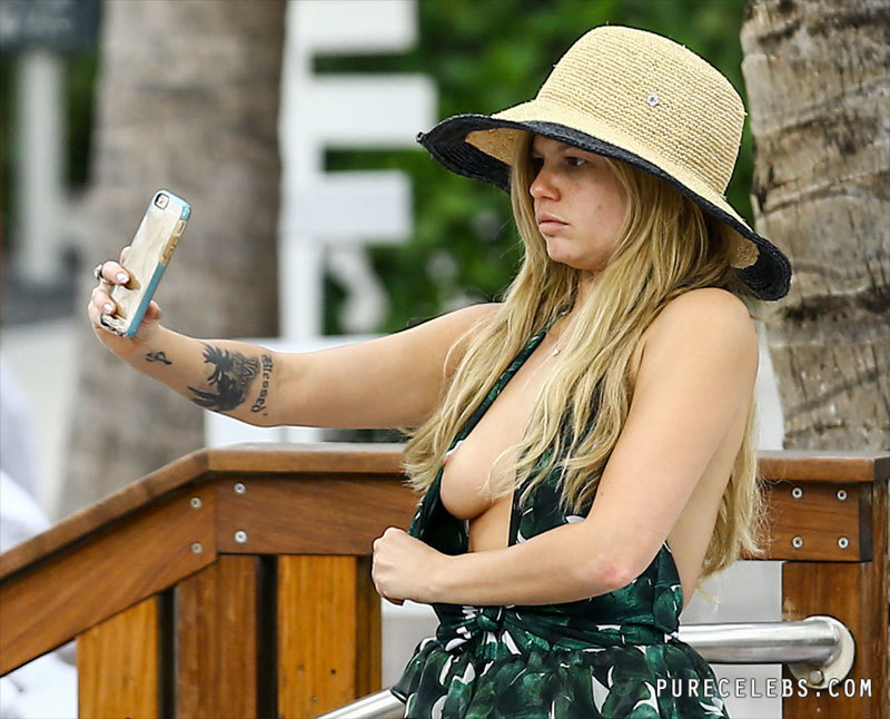 You probably never thought that hot ass blonde American rapper Chanel West Coast could be this much kinky! Paparazzi caught her taking selfie pictures of her morning face and lovely tits! That’s right; she was outdoors trying to take perfect picture of her natural titties! She exposed them for herself, but luckily paparazzi were there to catch that hot moment! Feel free to check these awesome paparazzi photos of Chanel out!