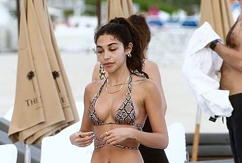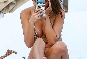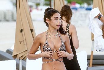 It looks like a real sex bomb has appeared on the beach! This is exactly what I want to say about Chantel Jeffries sunbathing there in a leopard bikini. American DJ knows how to get public attention and going public in a skimpy bikini is one of her specialties. It looks like this girl is very interested in her figure, because her butt in tight panties looked just perfect! You can also see that the celebrity often held her bra with her hands. Sounds like Chantel Jeffries was worried about her sweet nude tits jumping out of it?