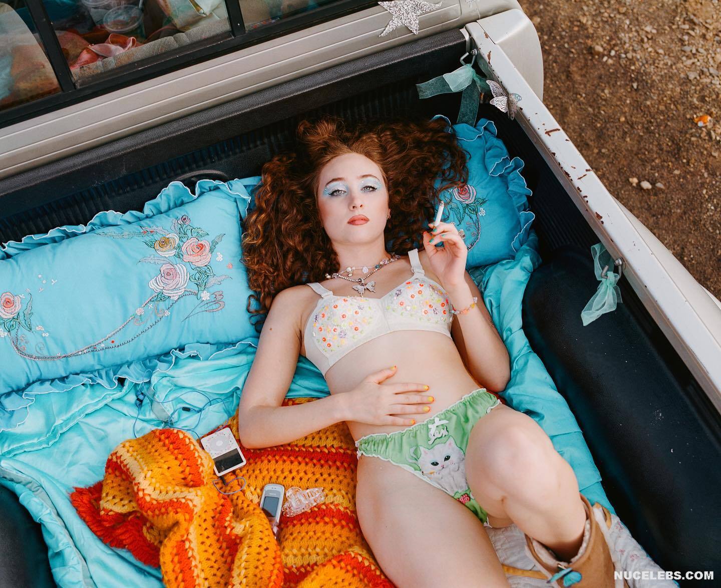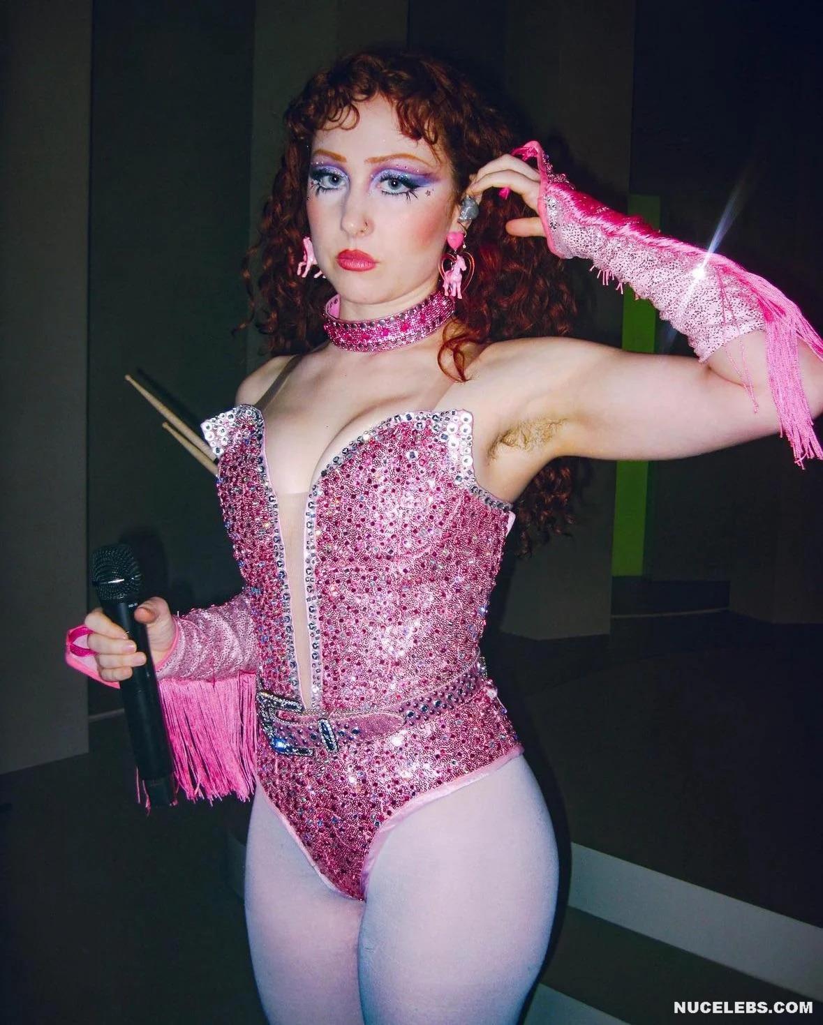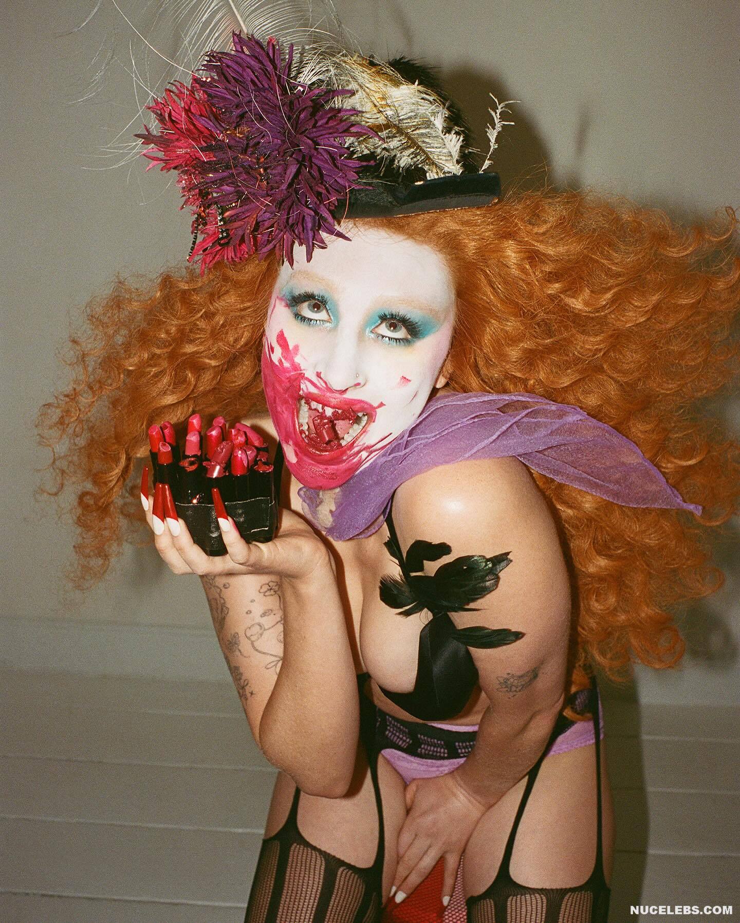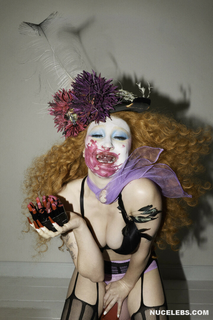 Chappell Roan loves bright makeup and provocative outfits that barely cover her body. For example, this 26-year-old singer shows off her sweet booty in tight panties. And in some of Chappell Roan’s photos, her ass was completely nude! This hot babe also took a topless selfie in front of the mirror. And although her boobs were completely naked, we can’t see them completely, because this star covered them with her long red hair.