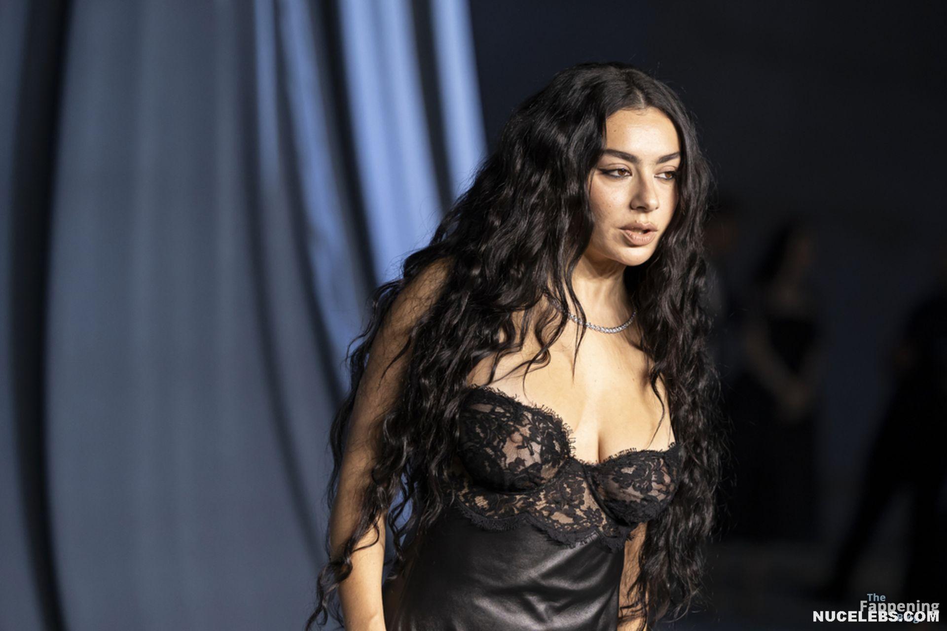 Just recently, we discussed Charli XCX hot photo shoot, and now she’s raising the temperature again with her outfit. At a recent event, this babe opted for a divine black dress with a semi-transparent top. The result is a stunning sight, namely Charli XCX naked boobs. These pink nipples really make us think horny things!