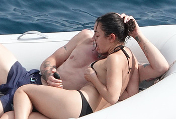 While Charli XCX was relaxing on a yacht with her boyfriend, the paparazzi did not stop taking pictures of this sweet couple. And it was a very right decision. After all, as a result, they even managed to photograph Charli XCX naked boobs! At the very beginning, this 29-year-old celebrity was in a black little bikini. But it looks like Charli XCX’s nude juicy boobs were too tight. So the girl decided to take off her bra and sunbathe topless!