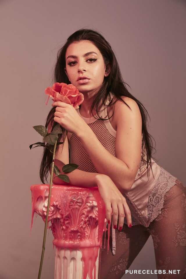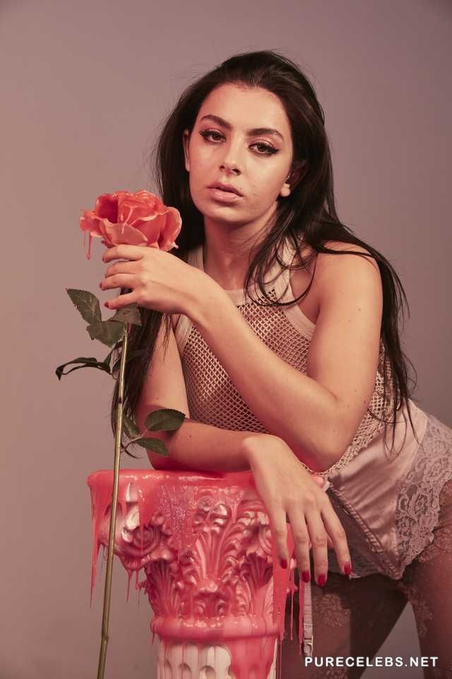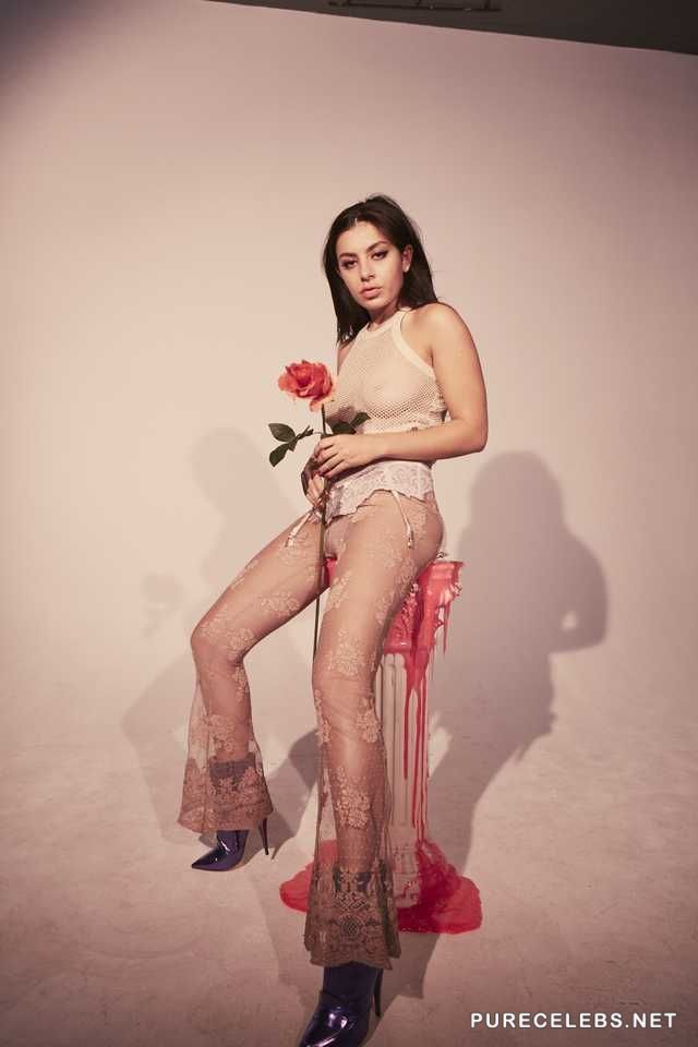 With the release of her new song Boys, Charli XCX has already made a name for herself as a thirsty little babe. The young brunette posed for a photo shoot wearing a mesh crop top with her large nipples poking through the shirt. Charli seductively looked into the camera lens with her lips puckered and waiting for a kiss. Her hot ass looked amazing in sheer lace pants.