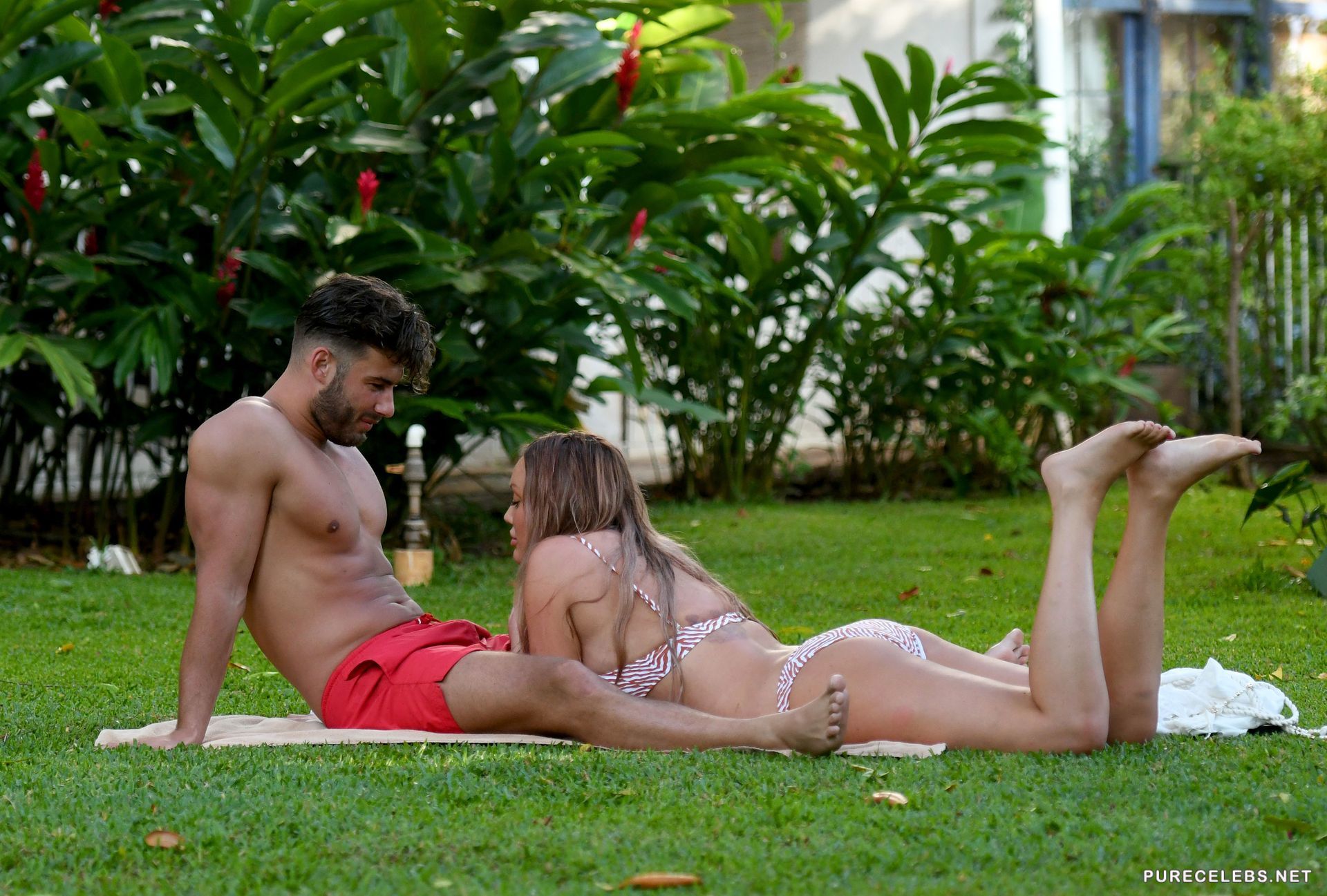 Charlotte Crosby, an English television personality, was photographed while she was resting with her boyfriend. The celebrity was wearing a striped bikini which emphasized her beautiful body. Her boobs seemed to jump out of a tight bra and her peach ass looked gorgeous in tight panties. Sweet couple embraced and kissed a lot, which is not surprising, because no one can resist such a hot beauty!