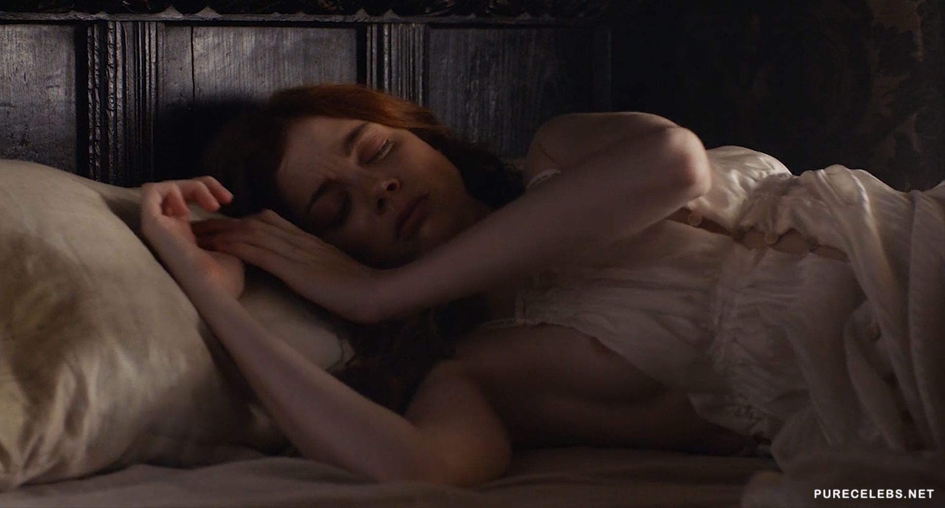 Charlotte Hope showed off an excellent acting game in The Spanish Princess. The famous actress starred absolutely naked in explicit erotic scenes. We can admire her wonderful naked boobs with brown nipples, and enjoy the scenes of her hot kisses and passionate sex. This beauty knows how to be very seductive and hot, isn’t she?