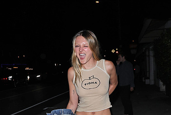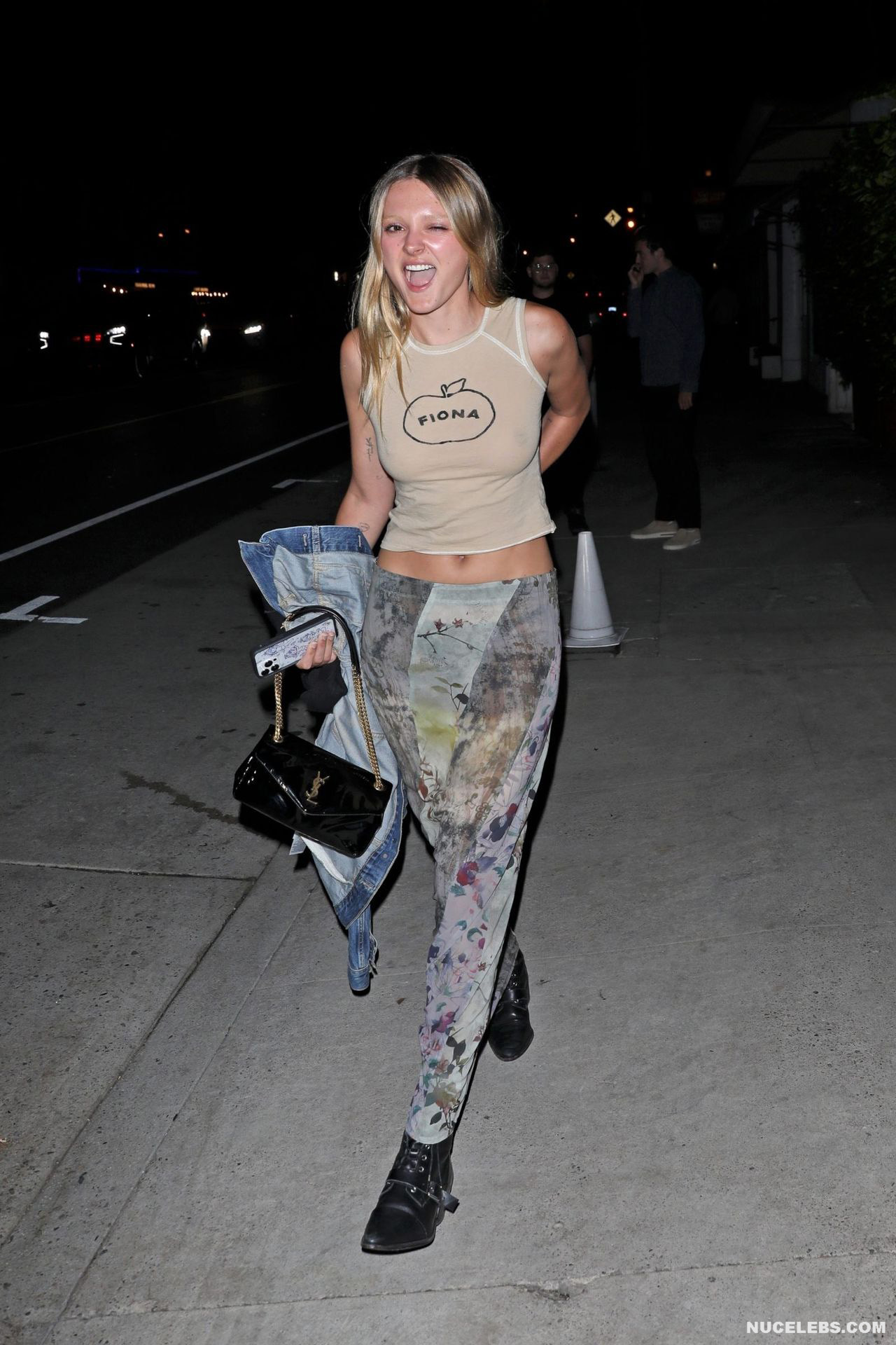 Charlotte Lawrence impresses not only with her incredible talent but also for her amazing titties. Her toned figure is a testament to her commitment to health and fitness. This 24-year-old singer loves to show off in transparent outfits. So, Charlotte Lawrence showed off her nude boobs in a tight red dress. By the way, her black panties were also seductively visible through her outfit.