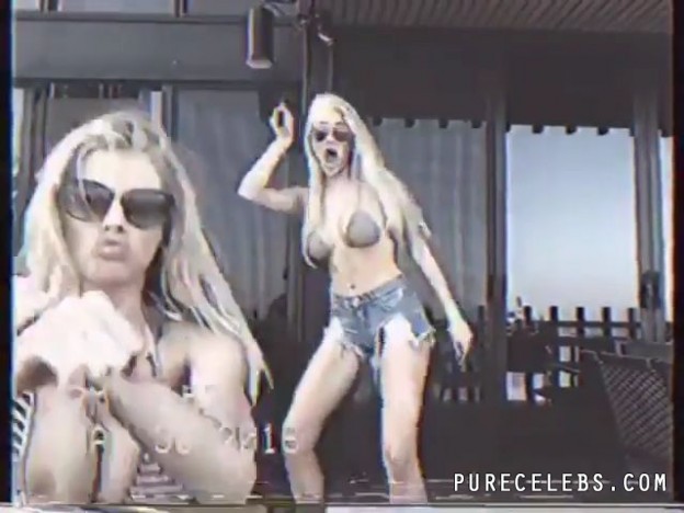 Blonde model Charlotte McKinney is known far and wide for her famous curves. This young and voluptuous beauty decided to have some fun one afternoon and film a little dance video while listening to her favorite music. Joined by a hot friend dressed just like her, in shorts and bikini top, she twerked her ass and jiggled her big boobs. But, she didn’t intend on a nipple slip.