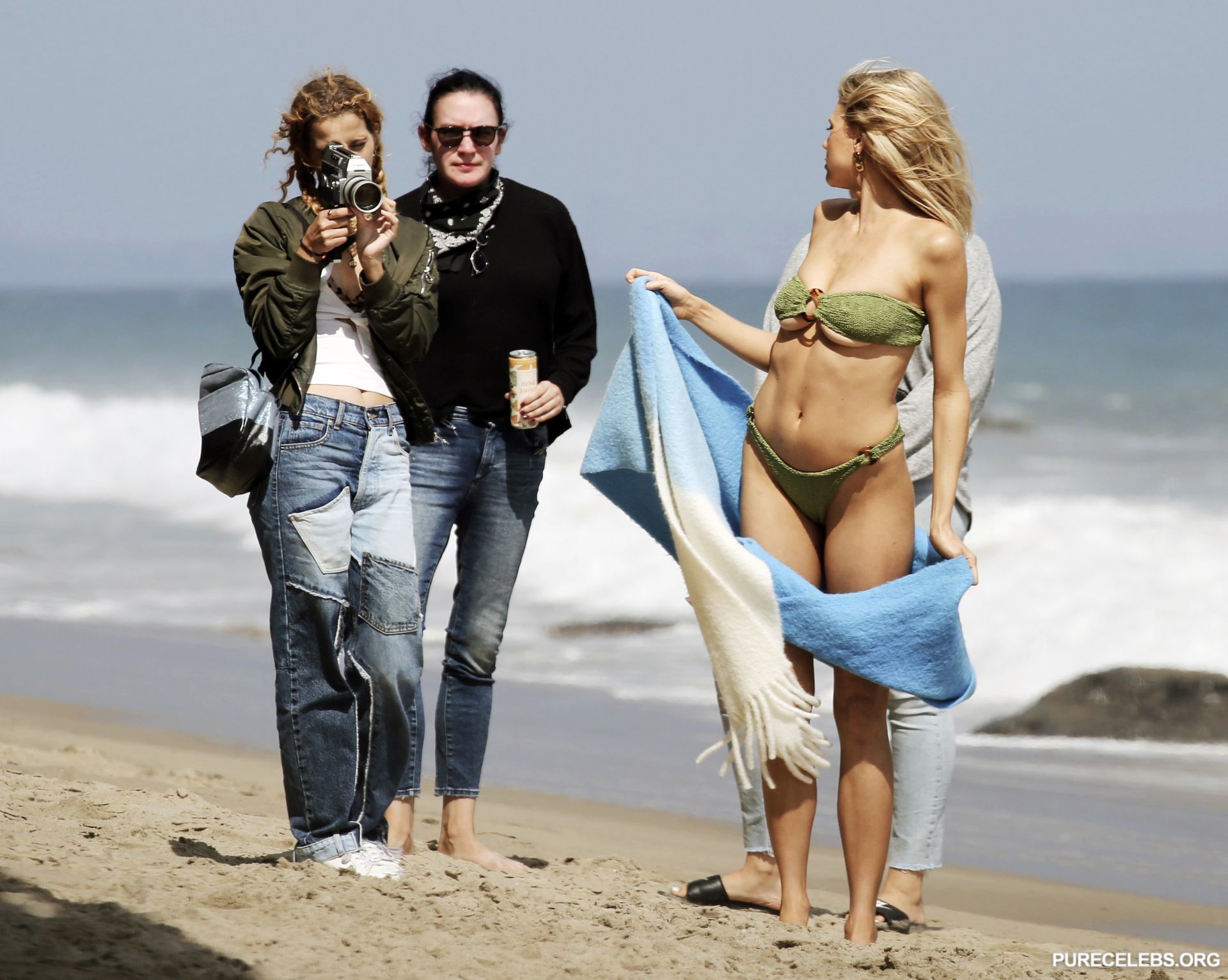Beach photos of Charlotte McKinney turned out to be very hot, although the model was not nude on them. The girl posed in a seductive green bikini on the seashore. The bra was so small that the bottom of Charlotte McKinney’s nude boobs slipped out of it. And her little panties perfectly emphasized her chic cameltoe. Oh, this hot blonde doesn’t even have to take off her clothes to drive everyone around crazy!