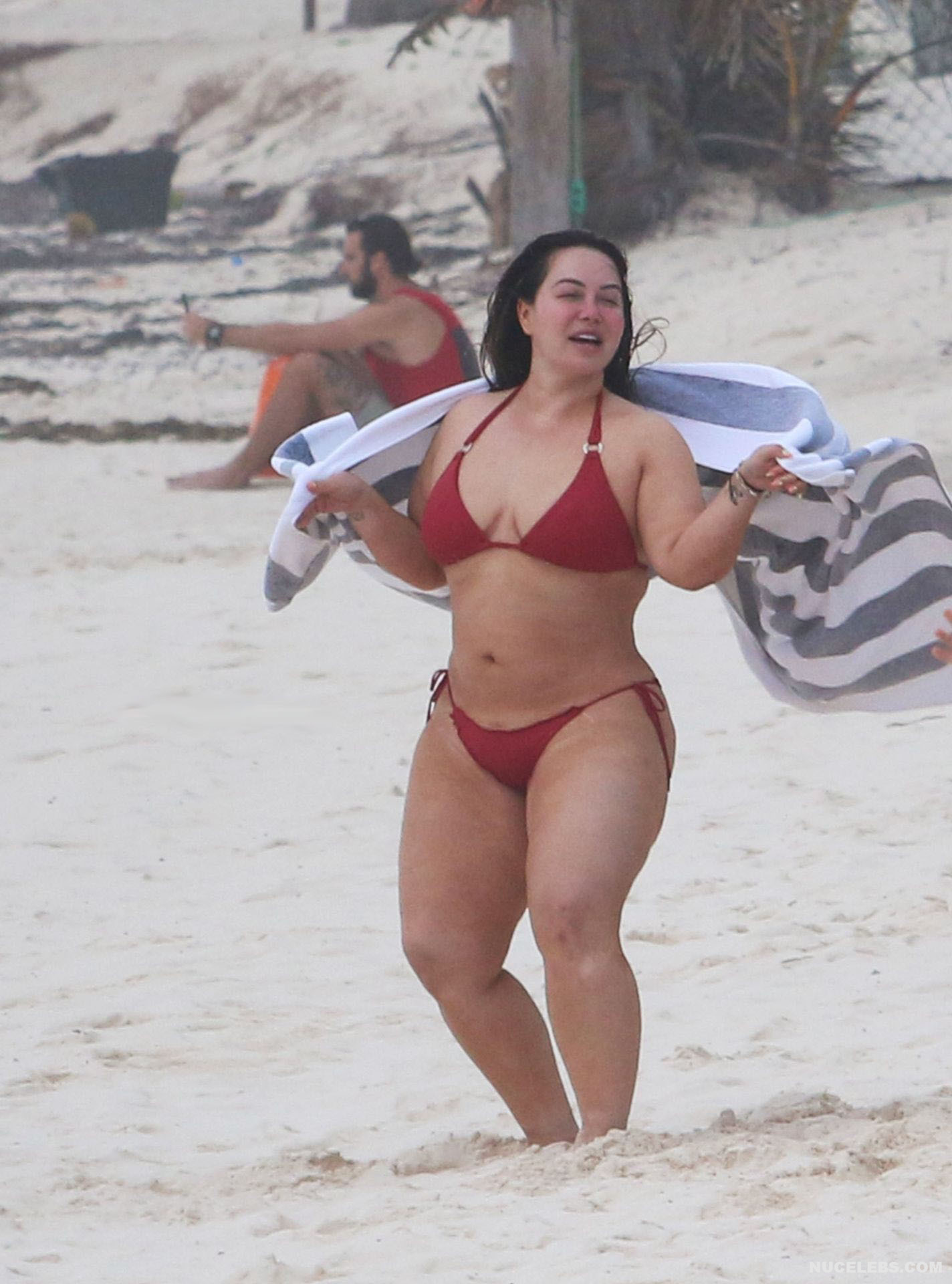 American singer Chiquis Riviera will be remembered by many not only for her songs, but also for her huge ass. This brunette has stunning curves, which she gladly flaunts. So, the paparazzi photographed this celebrity during her beach vacation. Chiquis Riviera looked pretty defiant and sexy in a red little bikini. Her panties were so small they just got lost in the big peachy posterior of this star. From afar it could even seem that Chiquis Riviera has absolutely naked ass!