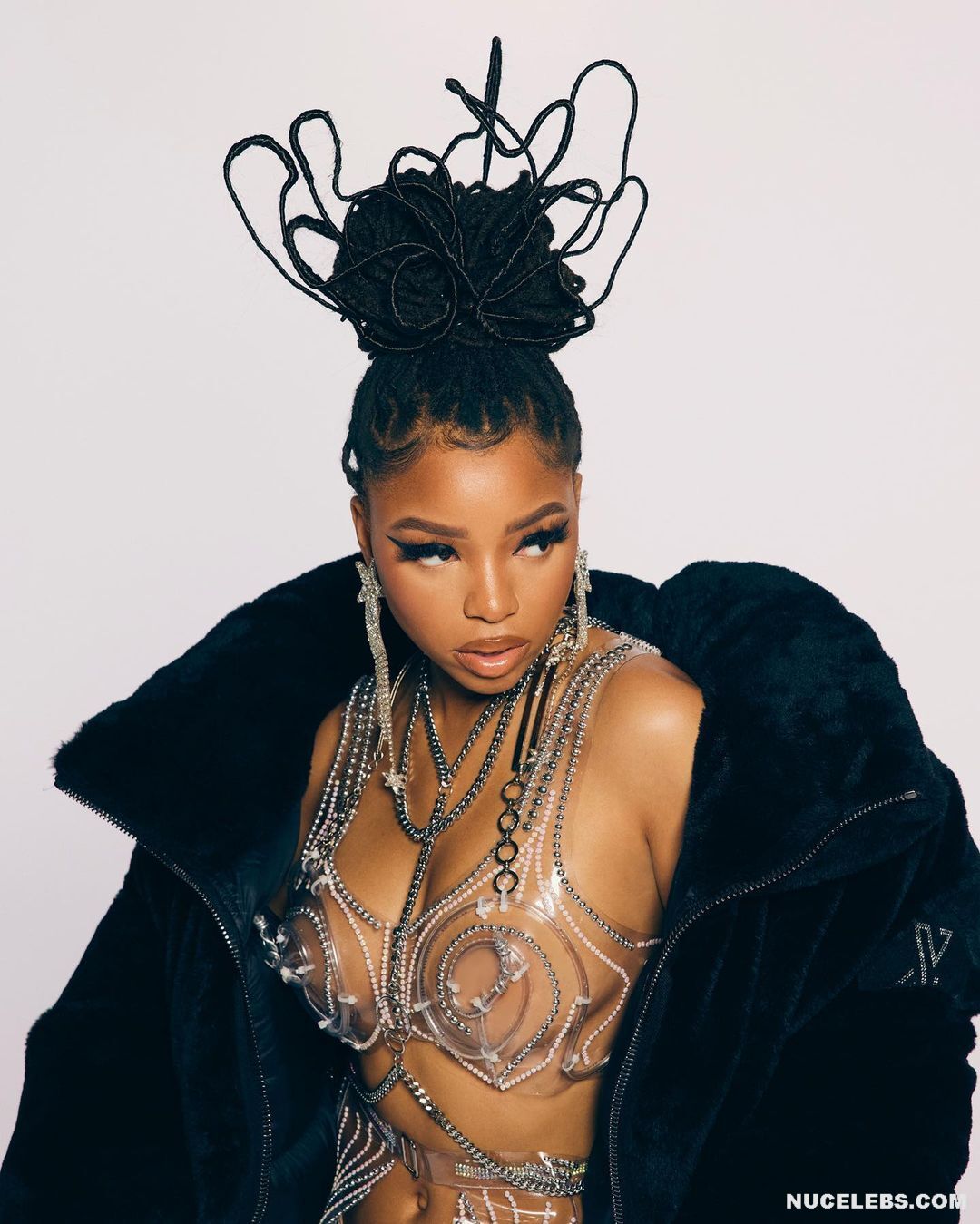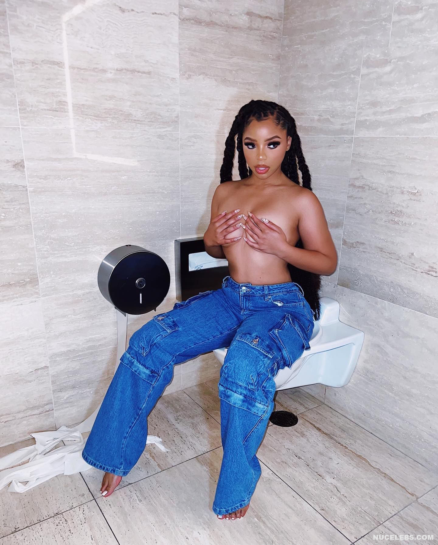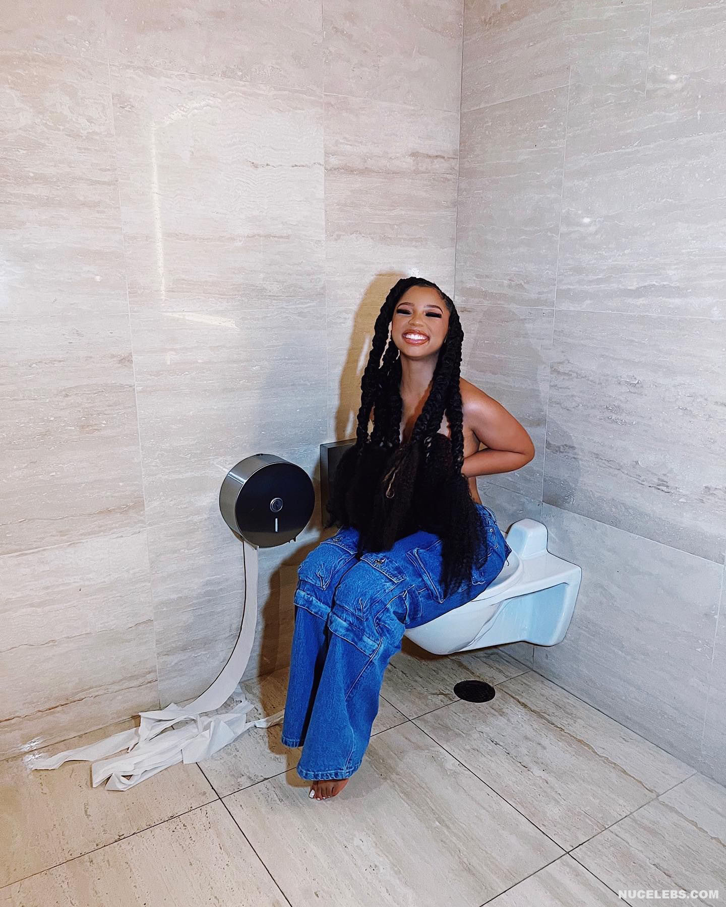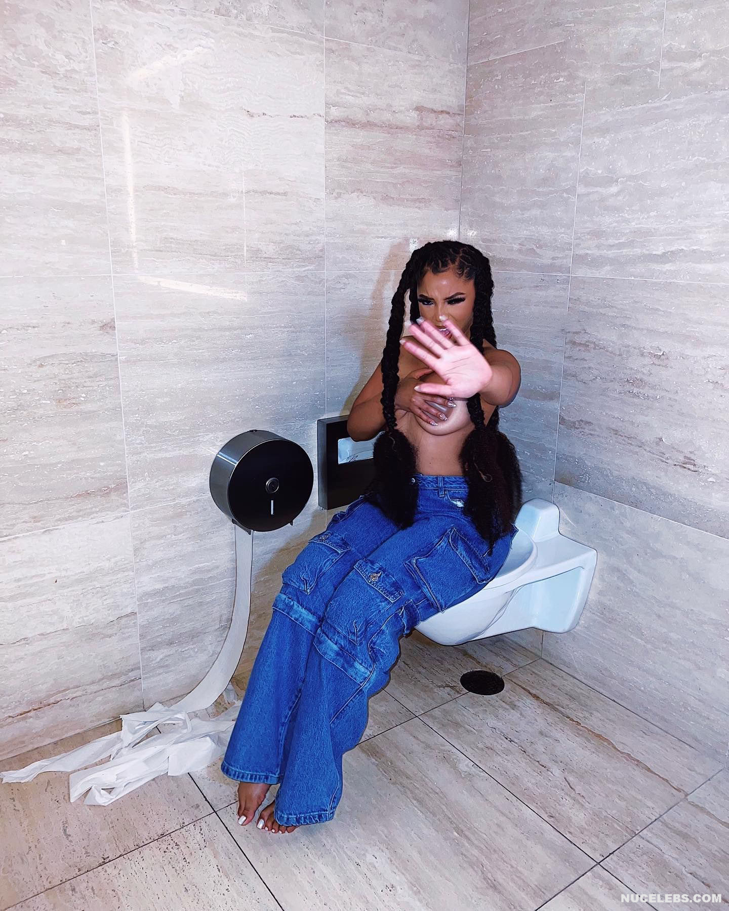 Chloe Bailey looked incredibly sexy during one of the last photoshoots. This 24-year-old singer allows herself to pose not only in underwear, but also topless. So, Chloe Bailey in blue wide jeans was sitting on a hanging toilet, covering her nude juicy boobies with her palms. Also, this beauty looked amazing when she posed in a petite swimsuit, flaunting her gorgeous buttocks.