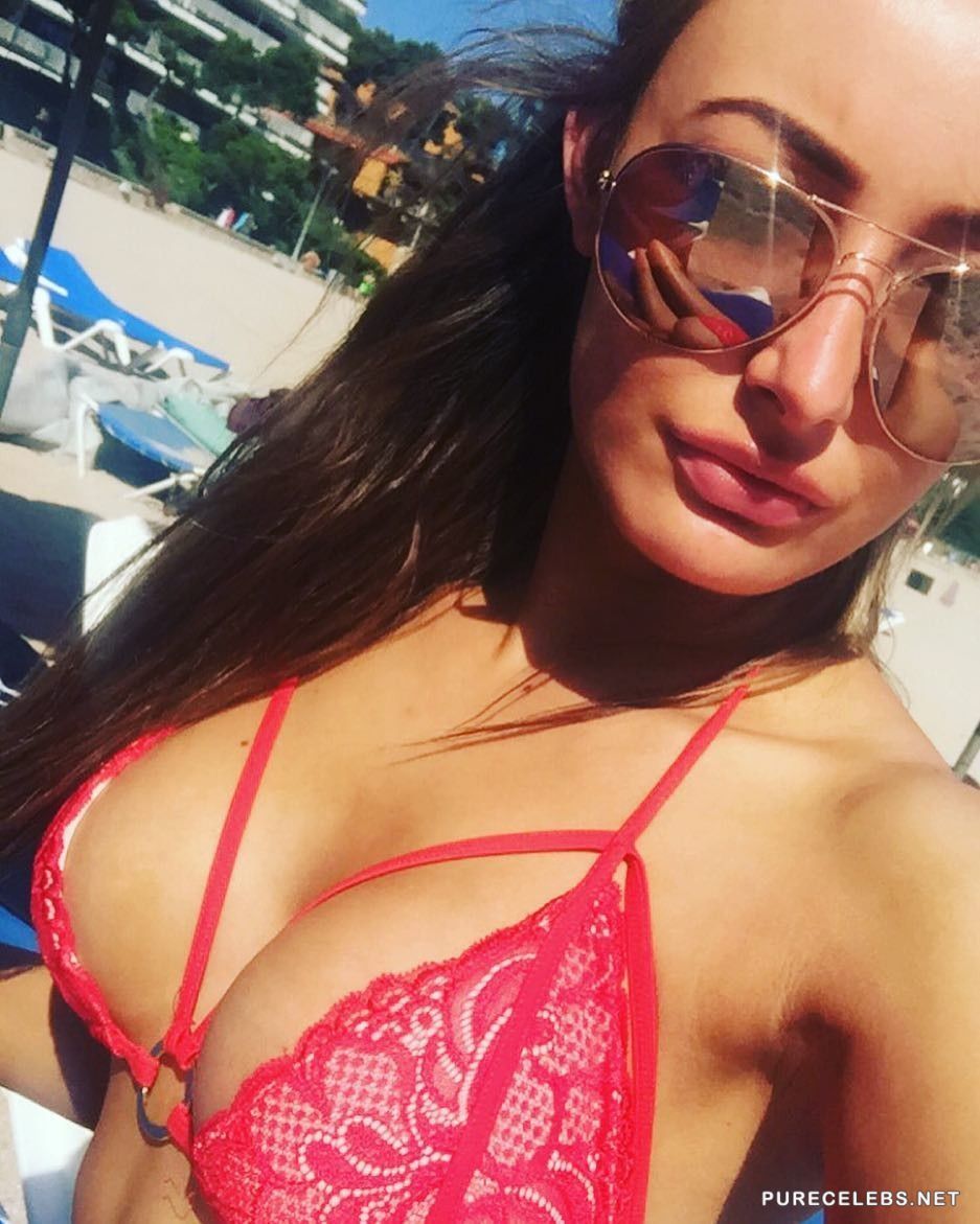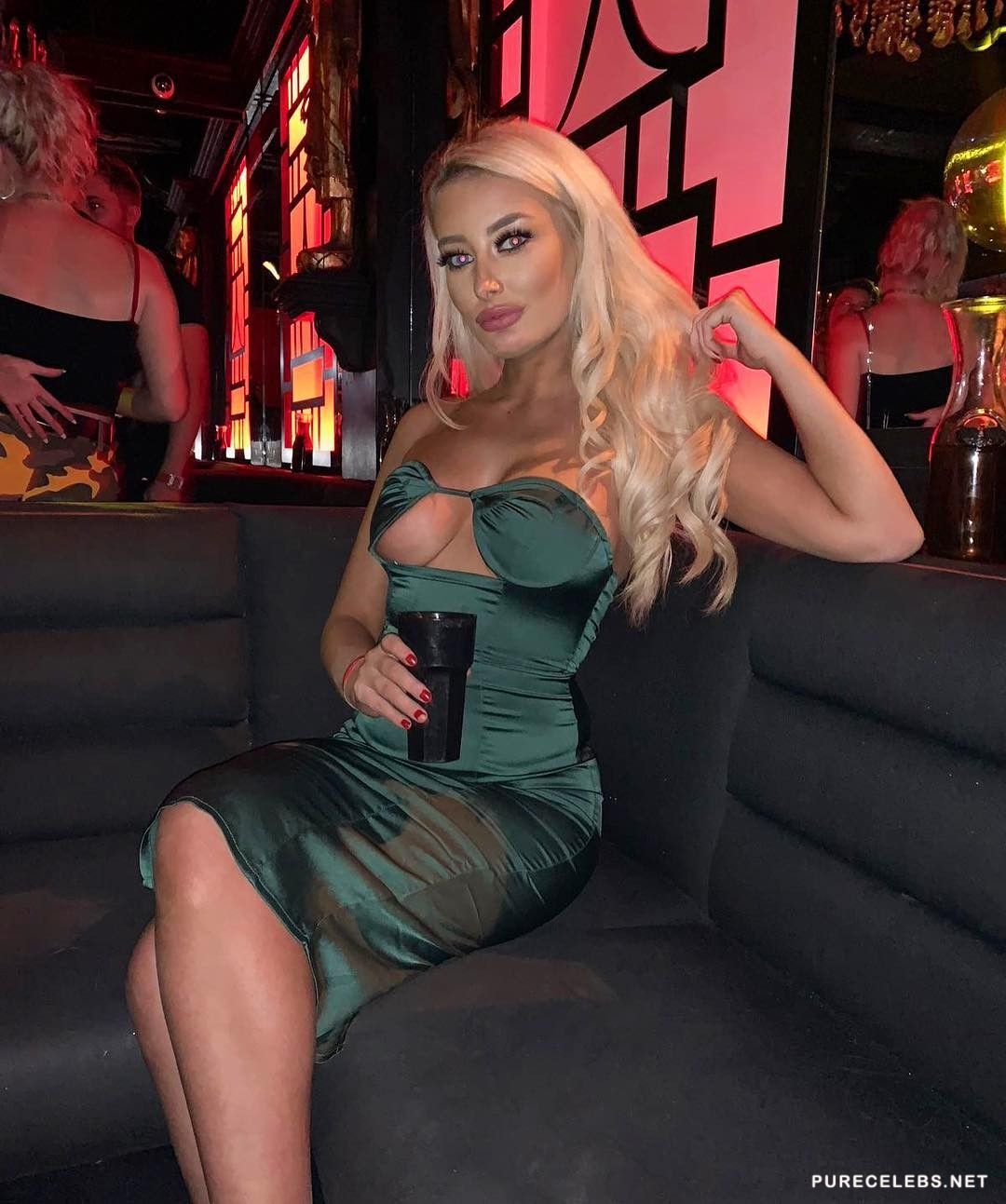 Love Island star Chloe Crowhurst just loves to have all eyes turned on her and does her best to attract the attention of the public. This charming blonde was happy to pose in a pink bikini, showing off her huge juicy boobs. And recently, the paparazzi photographed her at an event in a black dress that was so short that her pink panties were clearly visible from it. Yes, this girl certainly could not go unnoticed!
