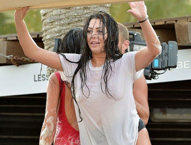 Just like her Jersey Shore colleagues, Geordie Shore star Chloe Ferry isn’t known for being the classiest of babes on TV, or in public. This busty British brunette found herself drunk off her ass and stumbling on paparazzi photos pretty soon after her first drink. From there, it was all downhill as she showed off her upskirt and see-through top while trying to get to and into her car.