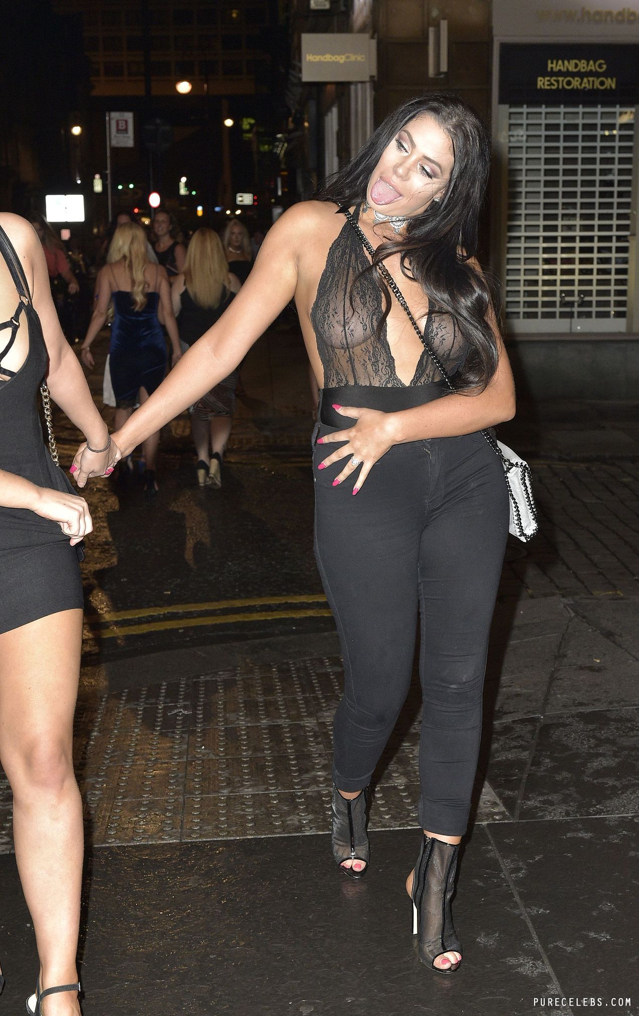Just like her Jersey Shore colleagues, Geordie Shore star Chloe Ferry isn’t known for being the classiest of babes on TV, or in public. This busty British brunette found herself drunk off her ass and stumbling on paparazzi photos pretty soon after her first drink. From there, it was all downhill as she showed off her upskirt and see-through top while trying to get to and into her car.
