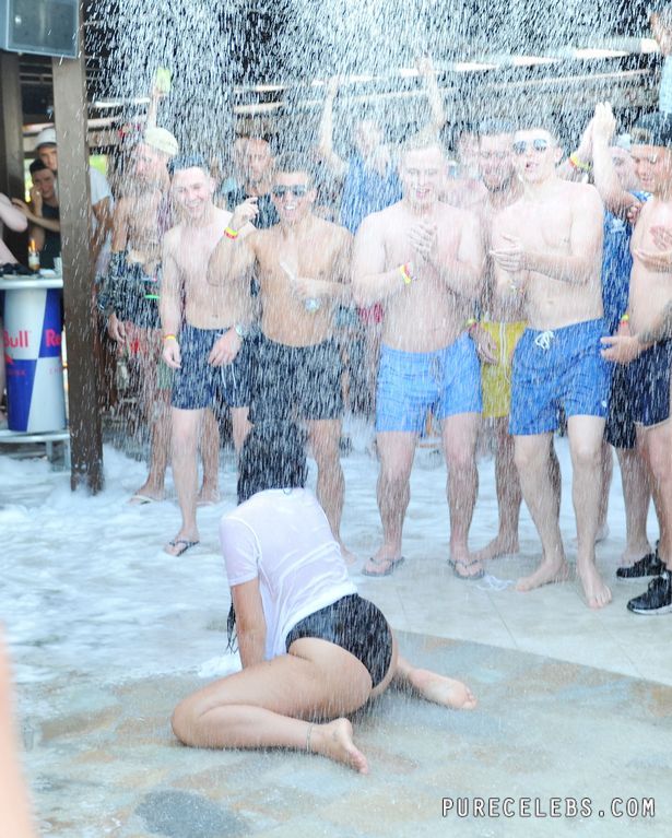 Geprdie Shore’s Chloe Ferry isn’t the classiest babe of the bunch, but you gotta love all the material she gives to the paparazzi. This time she was doing a wet t-shirt show and flaunting her nipples to the public, but that wasn’t enough. Always hungry for more attention, Chloe started shaking her big ass under the shower, and making her boobs bounce around.