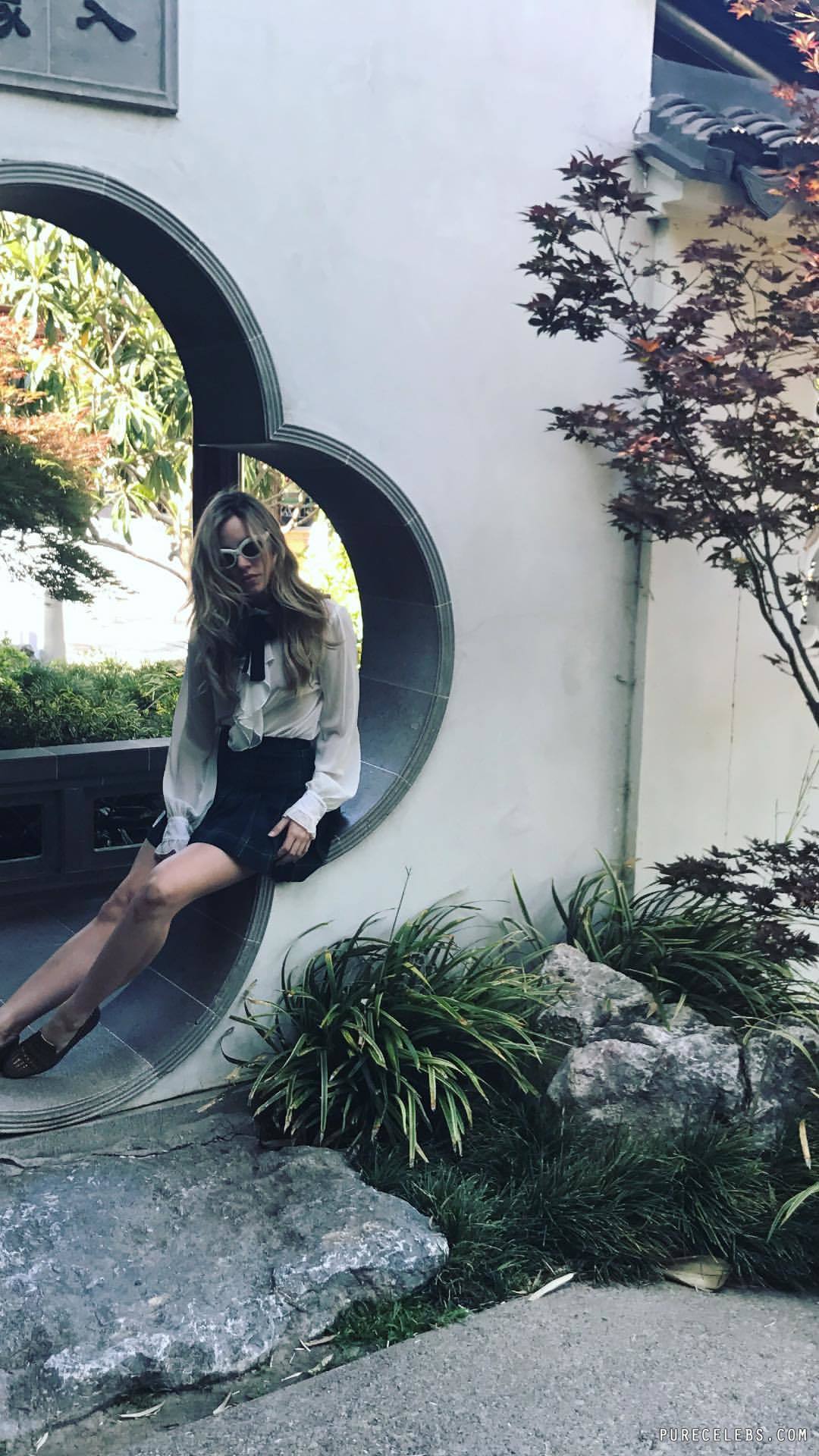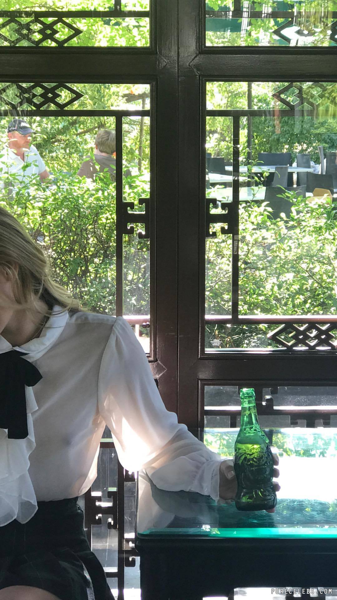 Like many celebrities, the American actress Christa B. Allen is even ready to show off her nude boobs to get new followers on Instagram. So, the beauty posed in black glasses and silver trousers near a brick wall. She was in a fishnet blouse, through which her bare boobies with covered nipples were visible. Also, this celebrity showed off her bare breasts in a white transparent blouse, sitting at a table with a bottle in her hand. Oh, this celebrity is an incredibly hot babe, right?