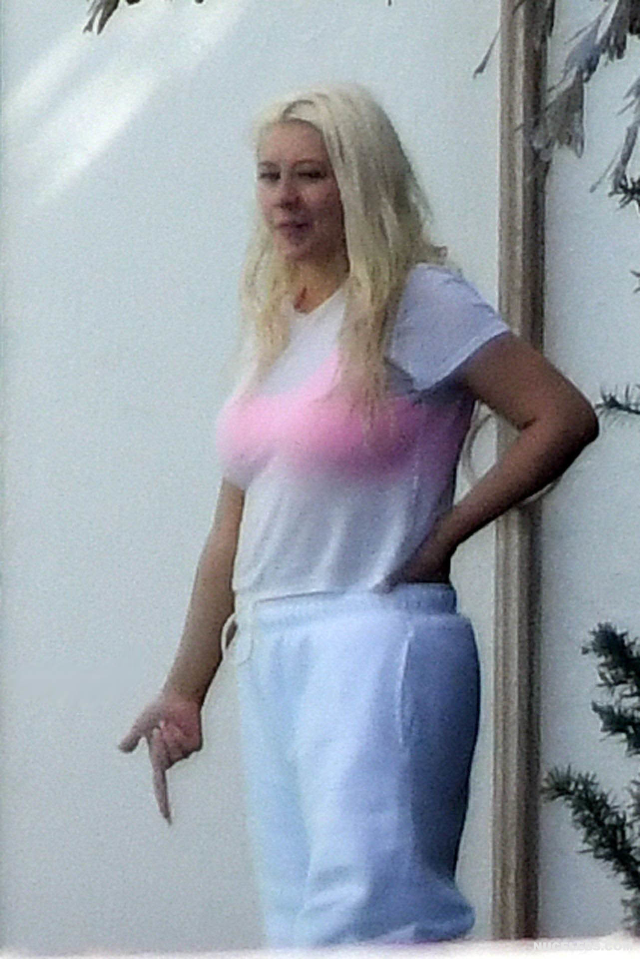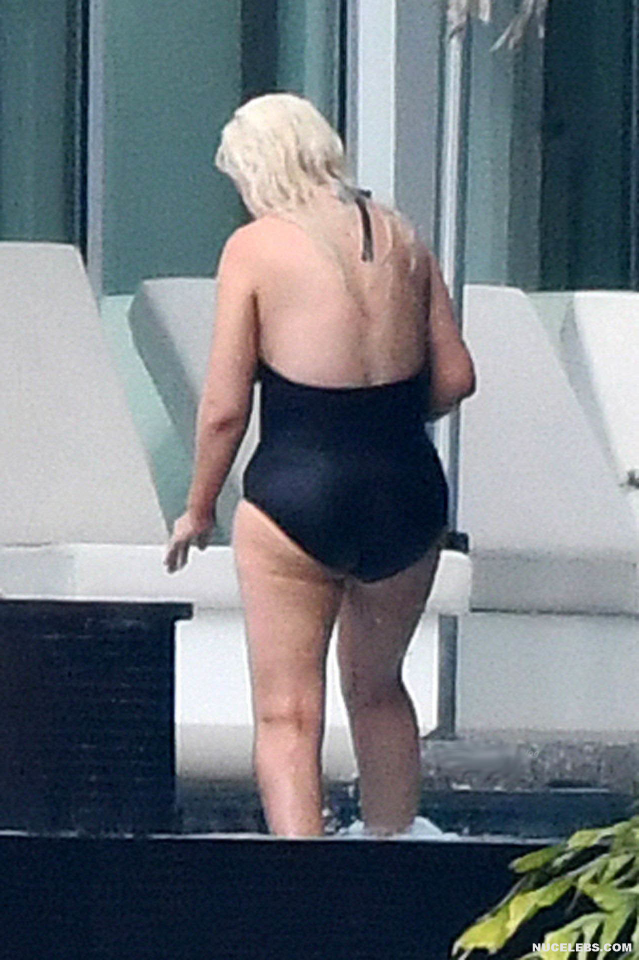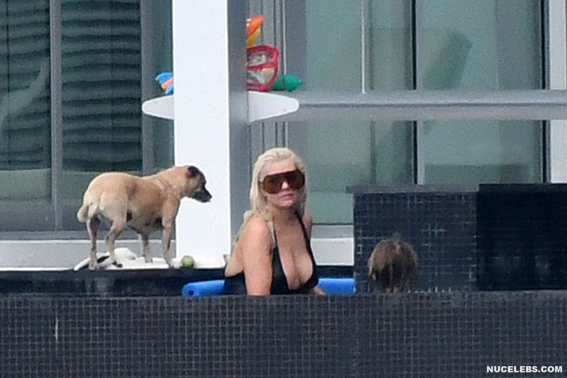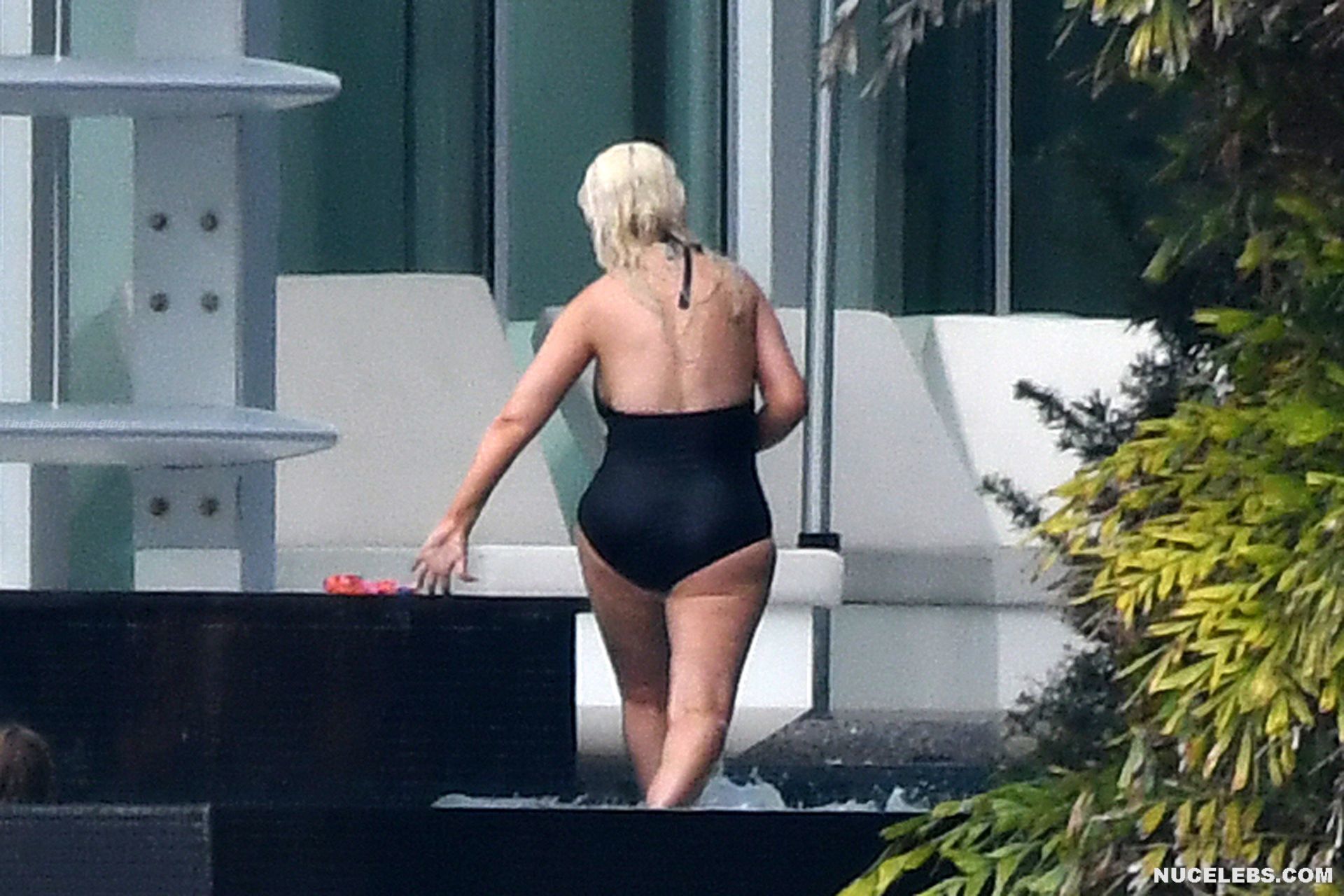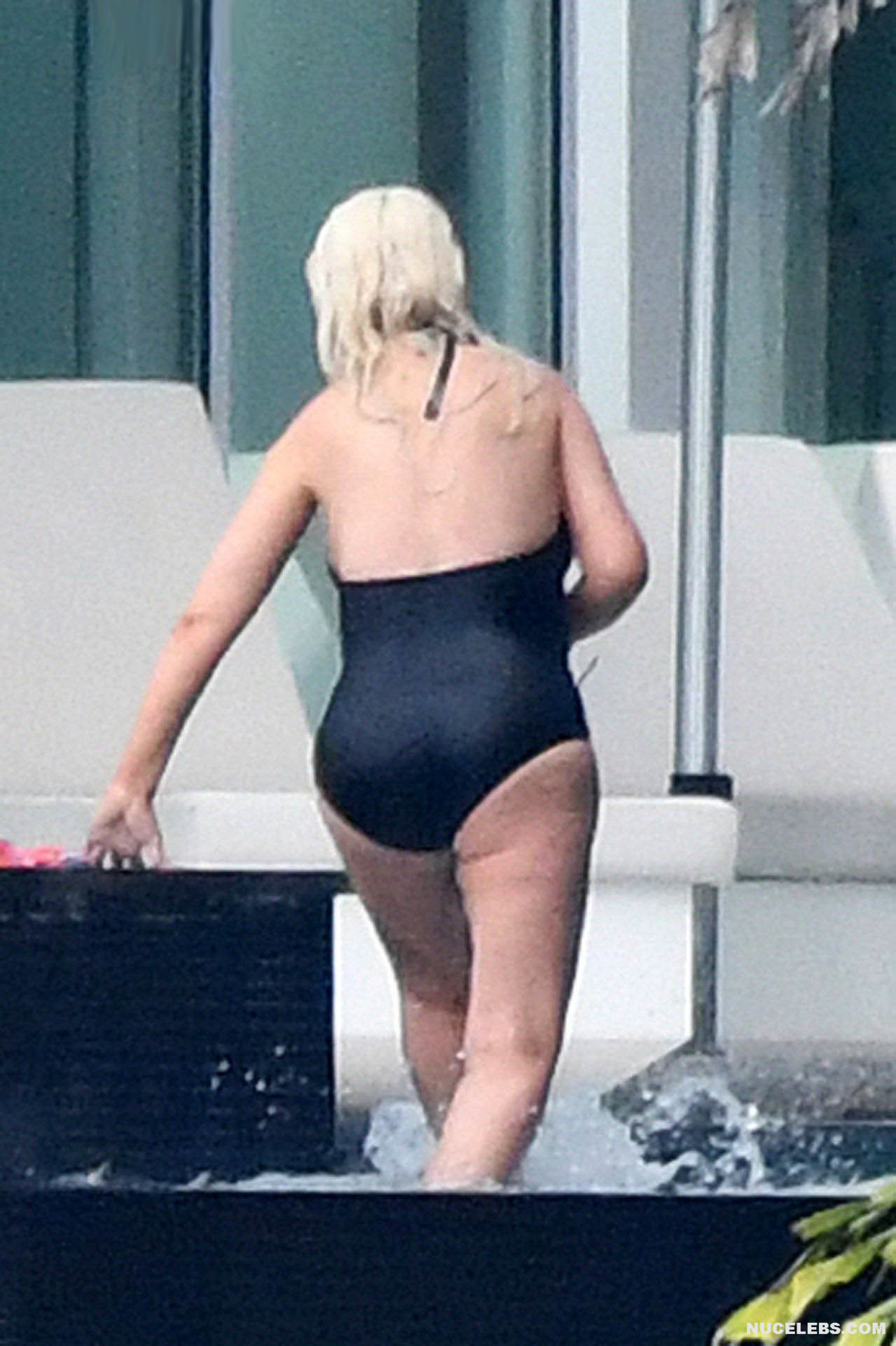 Check out the awesome pics of Christina Aguilera in the pool by the paparazzi! Of course, the paparazzi still hoped to catch Christina Aguilera nude, but her huge tits never slipped out of her tight black swimsuit. Although every time this blonde bent over, her big melons were very close to jumping out. The singer’s big peach ass in a wet swimsuit also looked incredibly sexy, what do you think?