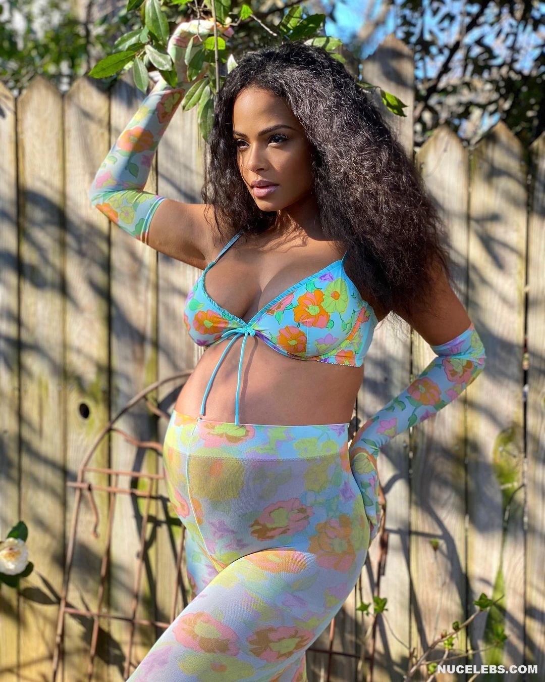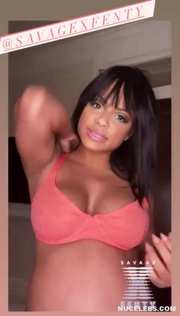 American actress Christina Milian loves being photographed while pregnant. After all, her body during pregnancy has become even more seductive! So, Christina Milian happily posed in purple lingerie, from which part of her nude boobs peeped out. Needless to say, her tits just got huge! By the way, her buttocks also became more appetizing and it was quite difficult for her small panties to cover them. The photo in which the girl poses in a black translucent bodysuit also turned out to be very hot. It seems that if you take a closer look, the Christina Milian nude pussy will be visible through the transparent fabric.