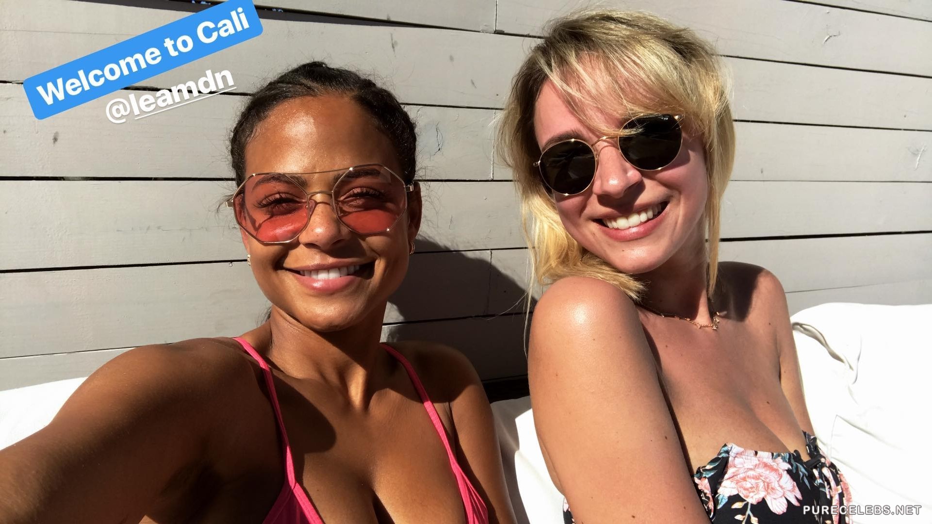 Christina Milian went to the pool with her friends to enjoy sunshine, get tan on her shapely body and she took a lot of pictures herself and her friends to share with fans on social media. They are all dressed in tight bikinis that are accentuating their hot young bodies, long legs and shapely tight asses, and while doing so they caught attention of everyone around them.