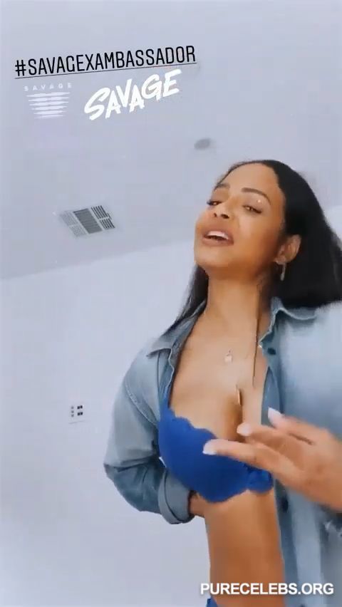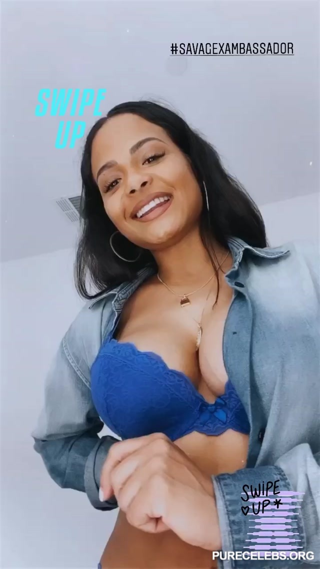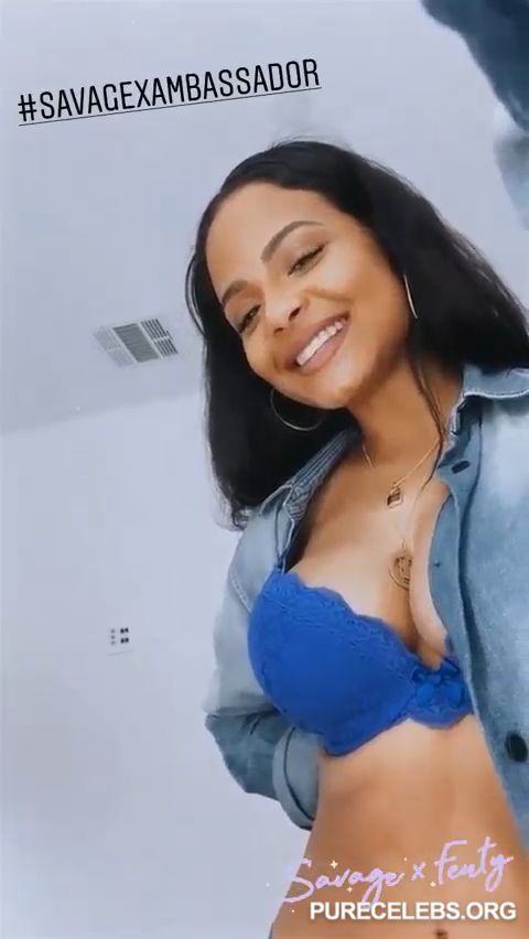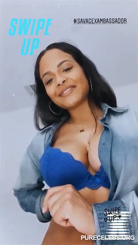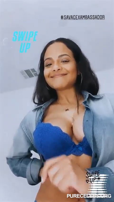 American singer Christina Milian decided to pamper her fans with a hot almost nude selfie. The celebrity did not hesitate to unbutton her shirt and jeans and show off her blue underwear. Agree that her lace panties looked very exciting from jeans. But the big nude tits of Christina Milian seemed ready to jump out of the small bra at any time. I don’t know how her fans felt, but her photos really excited me.