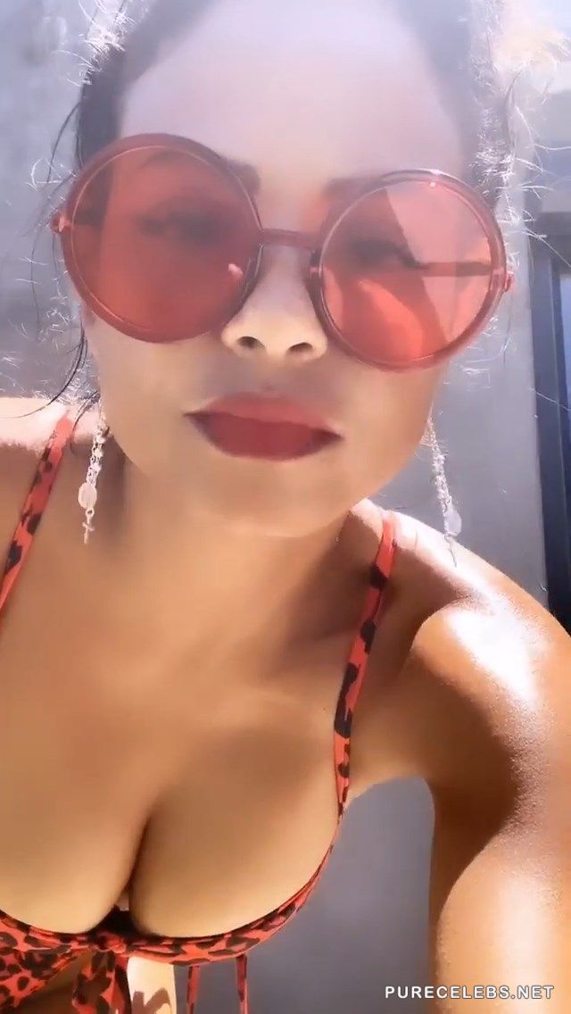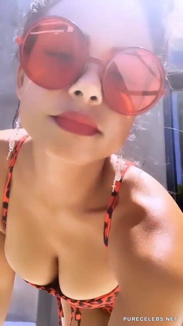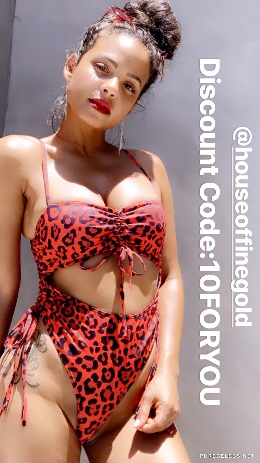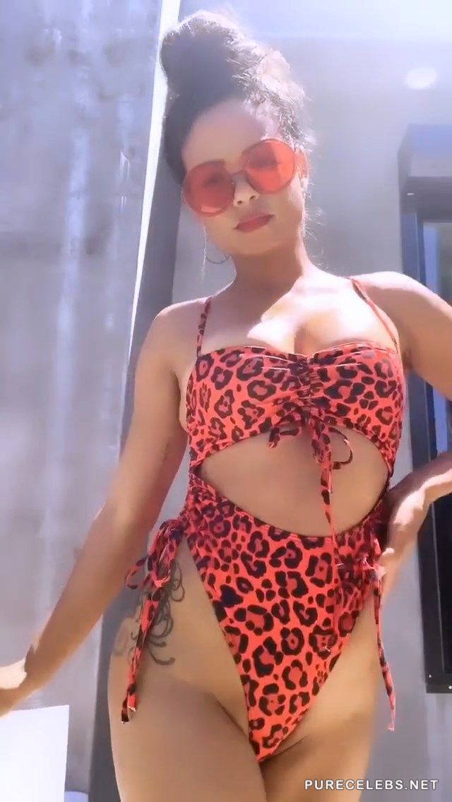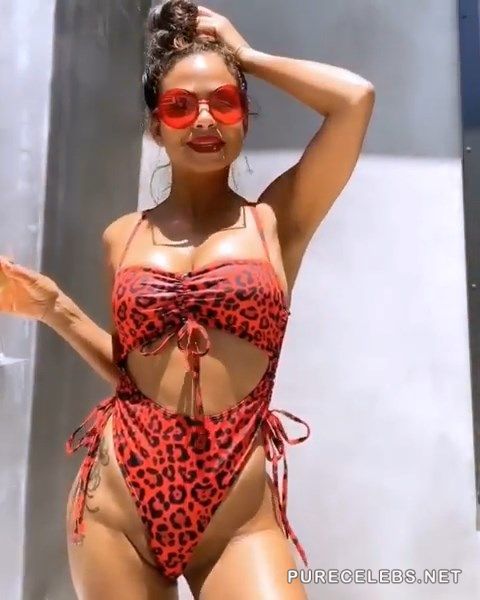 American actress Christina Milian loves to be in the spotlight and therefore she makes provocative selfies and videos with pleasure. For example, not so long ago, the star shared her video in a bright orange swimsuit with a print. Her boobs looked just wonderful in a narrow swimsuit, but most of all you will be amazed with her gorgeous ass, as well as pussy sponges, which almost jumped out of her tight panties.
