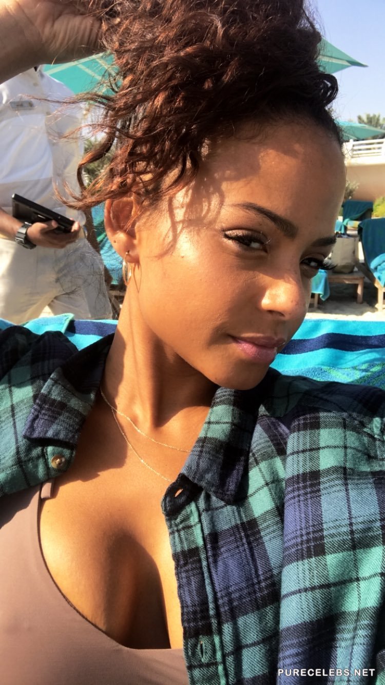 It’s no secret that Christina Milian is one hot babe who loves to flaunt her attractive body on social media. While on holiday, she snapped some provocative selfies of herself in a brown bikini that perfectly complements her chocolaty skin tone. Sexy Christina smiled for the camera with her perky nipples peeking through her tight bathing suit. In the short video she dishes out the detail of her vacation plans.